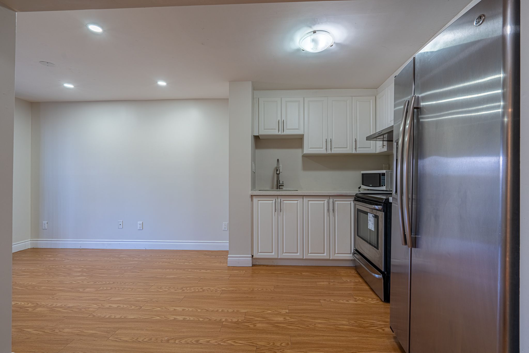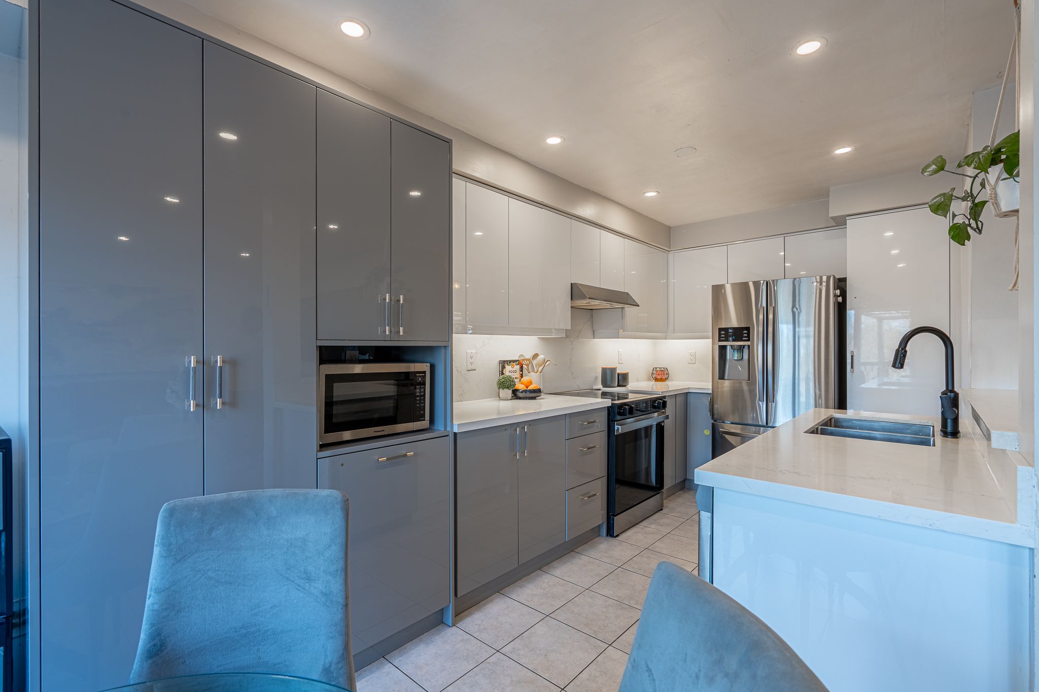• Modern kitchen featuring quartz countertops and stainless steel appliances.