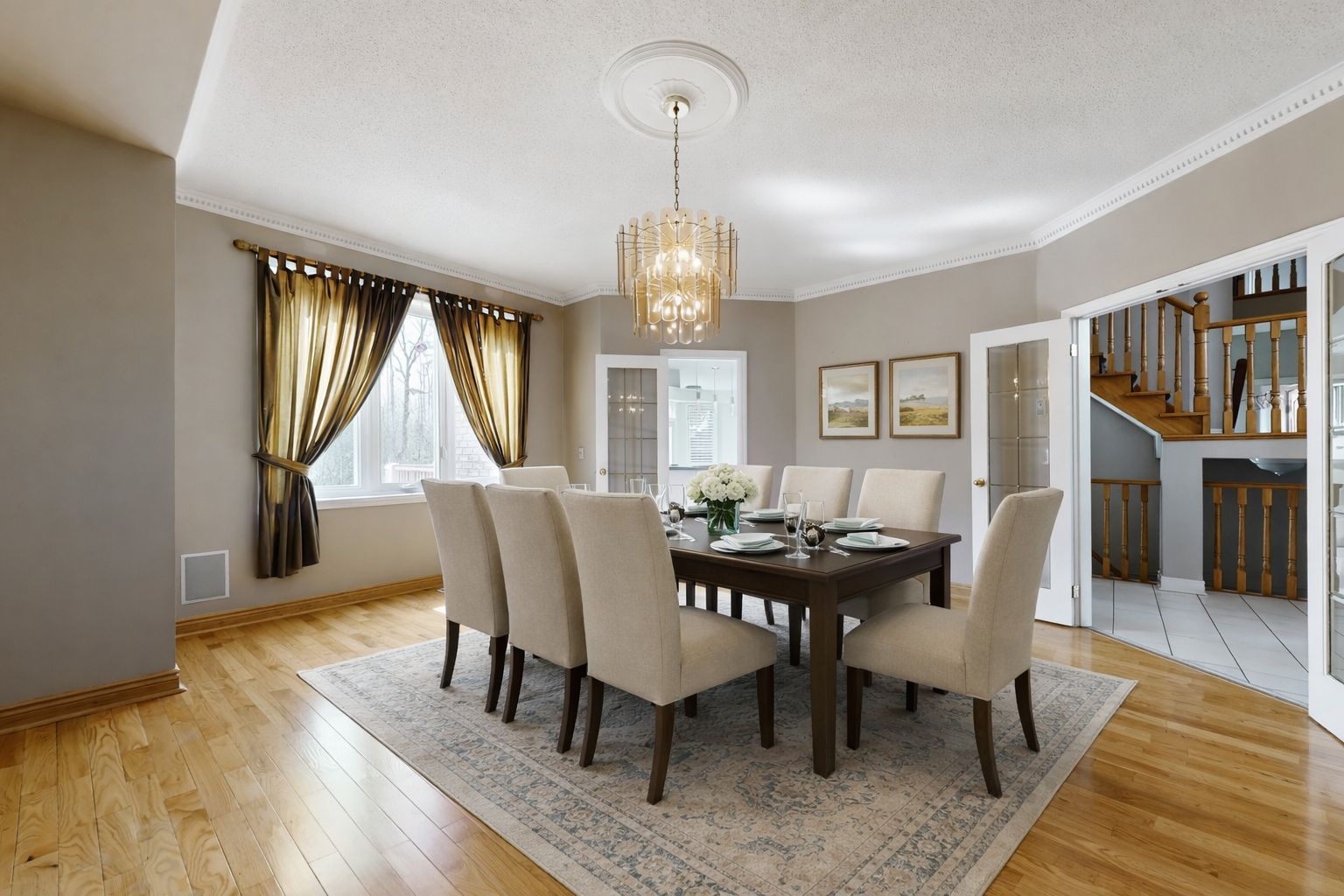 Luxury living in prestigious highbush! Stunning home offering nearly 4,000 sq ft above grade plus a fully finished walkout basement, nestled on a quiet cul-de-sac with exceptional privacy. Situated on one of the largest pie-shaped ravine lots on the street, this property backs onto nature, providing a serene and private setting. Enjoy resort-style outdoor living with a large in-ground salt water pool and hot tub (2020), perfect for entertaining. Grand entry opens to a dramatic two-storey foyer. The main level features a formal living/sitting room, spacious dining room, and a huge family room with beautiful views of the ravine + multiple fireplaces! The chef's dream kitchen boasts a massive centre island, stone countertops, and built-in appliances. Main floor private office. The second floor offers 4 generously sized bedrooms, including a luxurious primary retreat with dual closets and a spa-inspired ensuite. The finished walkout basement includes a 3-piece bath, games room, gym, and direct access to the pool area. A custom wine cellar adds the perfect touch for entertaining. Additional features include a large trex deck for durability and low maintenance, and updated vinyl windows. Ideally located close to amenities, rouge park, top-rated schools, and with easy access to highways 401 & 407. Updates: pool heater (2022), pool pump (2025). Some photos virtually staged