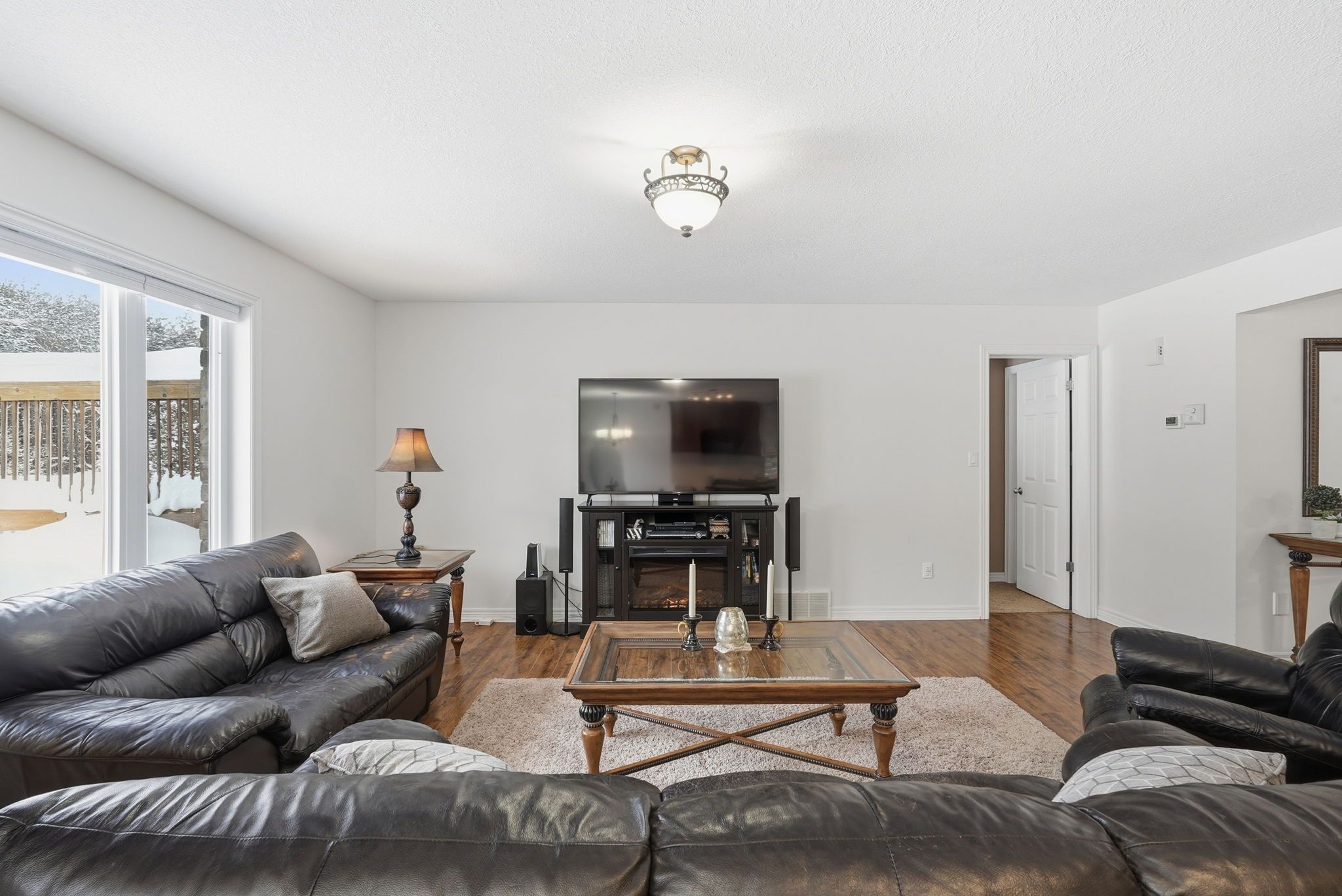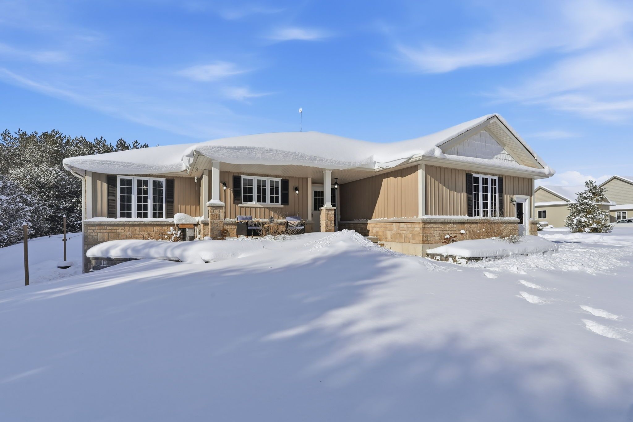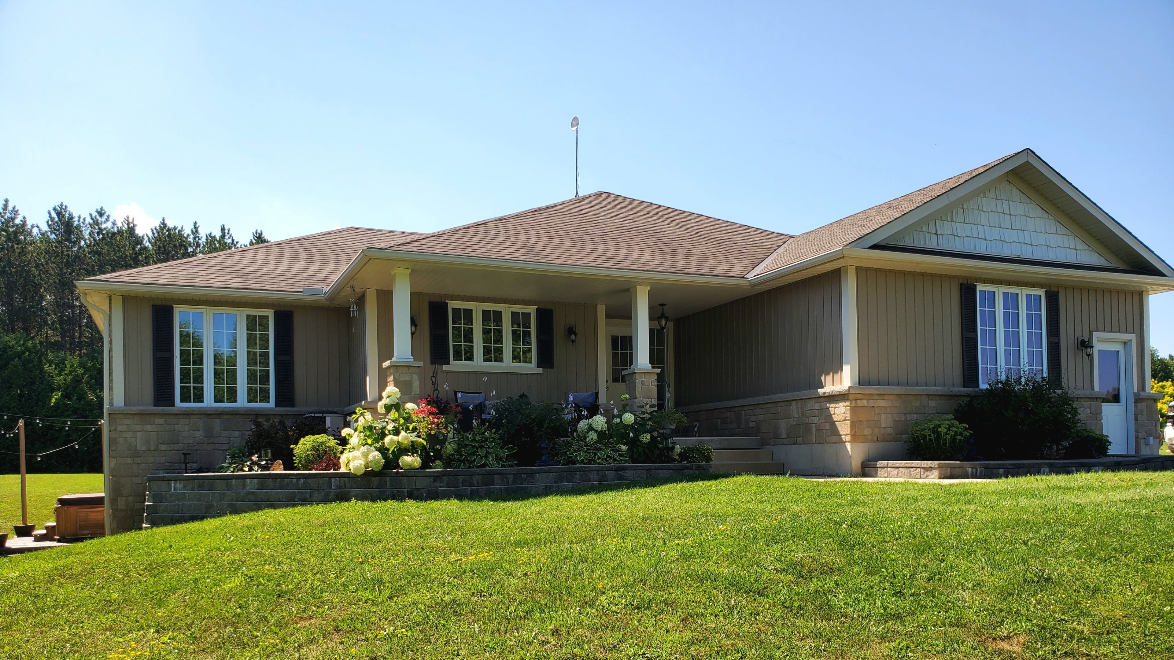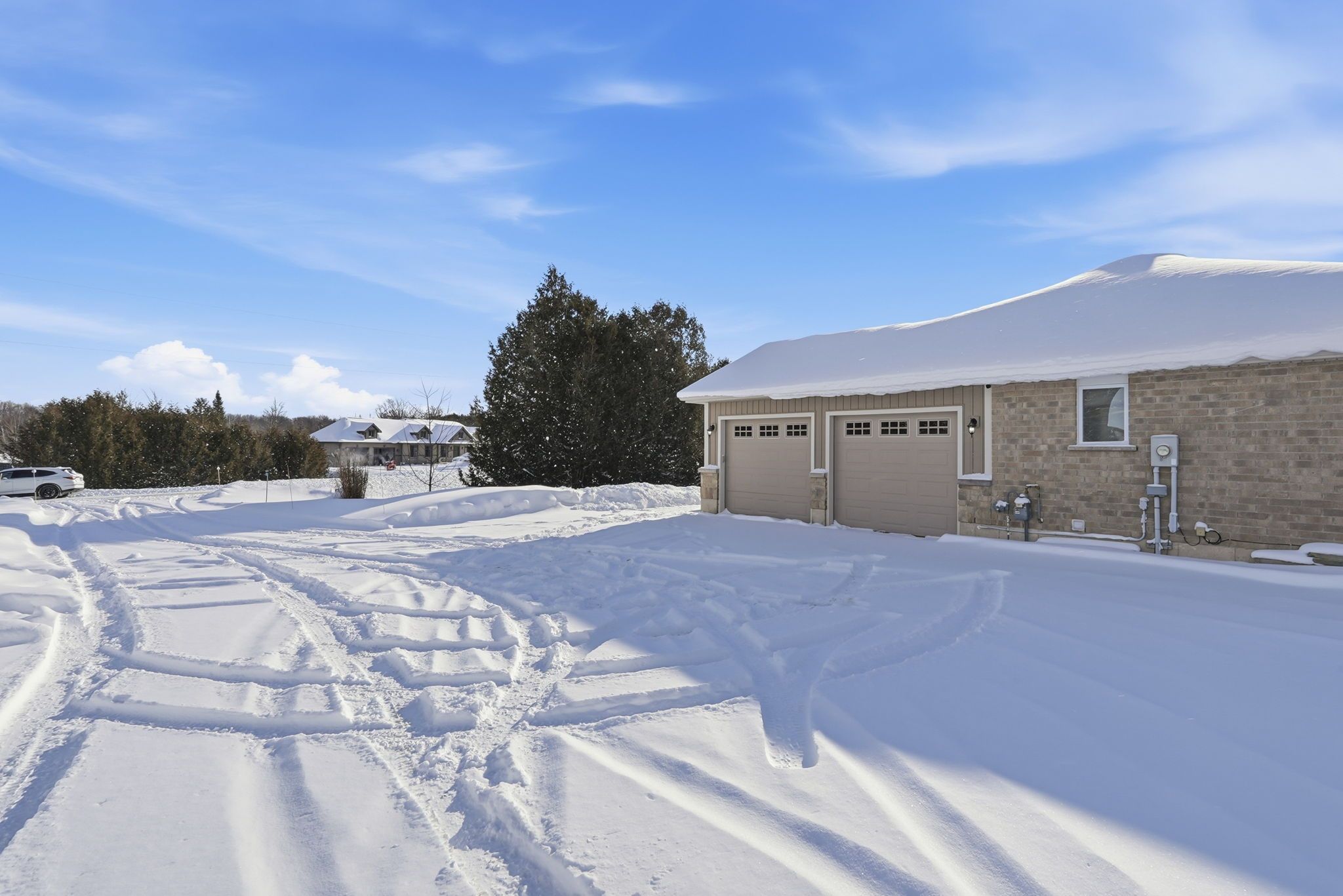 Enjoy space and privacy on this picturesque 1. 5-acre lot, offering a versatile layout with two kitchens and two living areas-ideal for multigenerational living. Located in a quiet country subdivision in west grey, this home is on a paved road in between hanover and durham. As you pull into the driveway, you'll immediately notice the landscaped exterior, stone accents, and welcoming walkway leading to the front entrance. The bright and inviting foyer with a tiled floor sets the tone for the home. The main living room and kitchen feature engineered hardwood flooring and an open-concept layout, ideal for everyday living and entertaining. The kitchen offers an abundance of cabinetry, a large island, ceramic tile backsplash, and sliding doors that lead to a spacious wooden deck-perfect for enjoying the peaceful country setting. The main floor continues to impress with a spacious primary bedroom complete with a walk-in closet and a 3-piece ensuite featuring a tiled shower. Two additional bedrooms provide ample space for family or guests, complemented by a 4-piece bathroom and a convenient main-floor laundry room. The fully finished walk-out lower level expands the living space and is ideally suited for an in-law suite or extended family living. This level features a second, oversized kitchen with built-in appliances, a massive family room warmed by a natural gas fireplace, and sliding doors to the stamped concrete patio and salt water hot tub. Two additional bedrooms and a 3-piece bathroom complete this level. Additional features include an attached two-car garage that is insulated and heated, complete with an additional 60-amp electrical panel. The home is heated with natural gas, adding efficiency and year-round comfort. This property blends peaceful country living with easy access to nearby amenities-a rare opportunity to own a spacious, well-appointed home designed for today's multigenerational lifestyle.