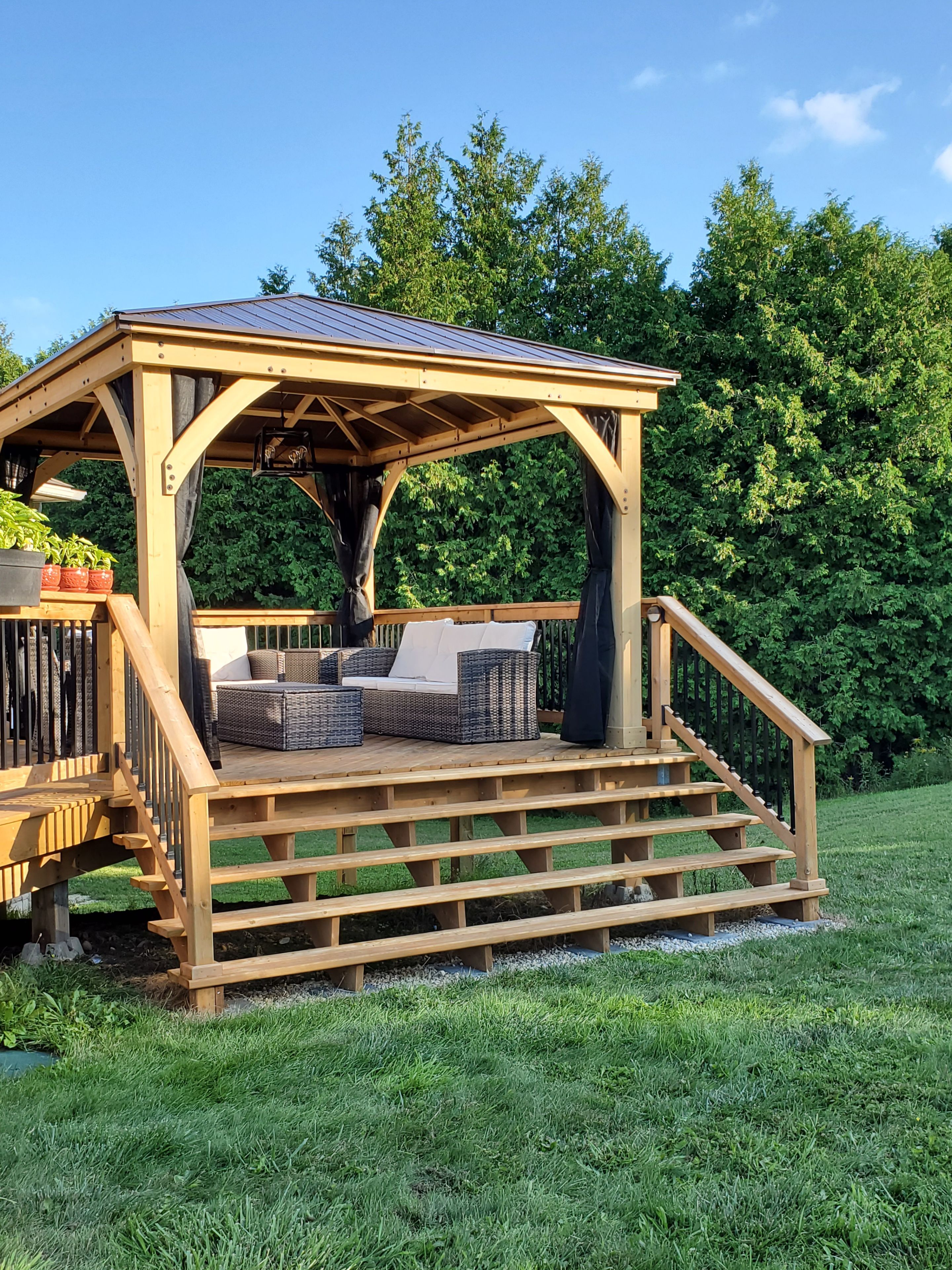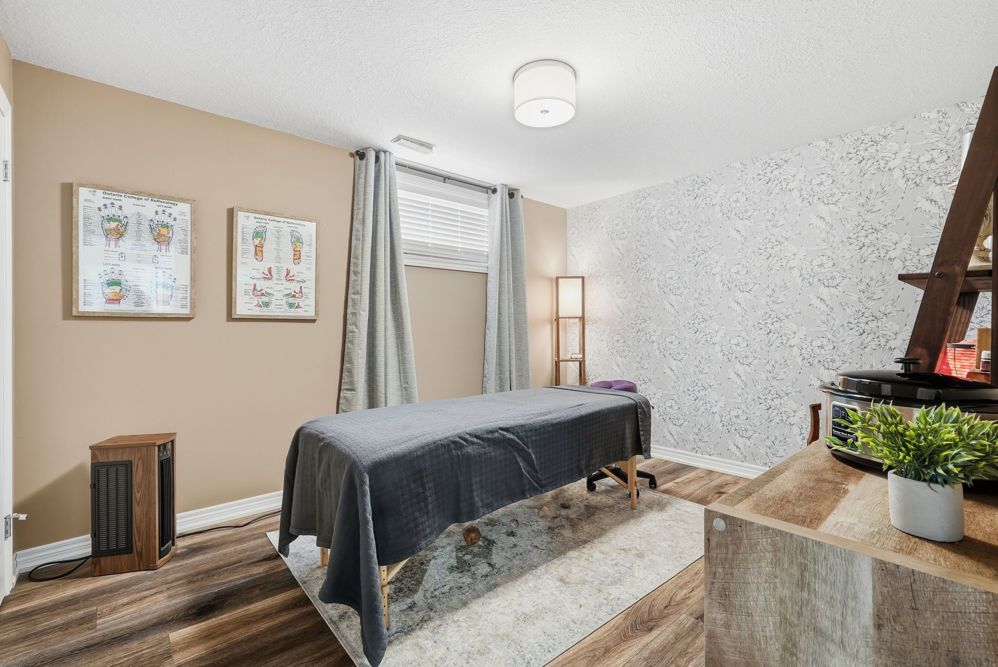 • Finished lower level with family room, fireplace, and hot tub access.