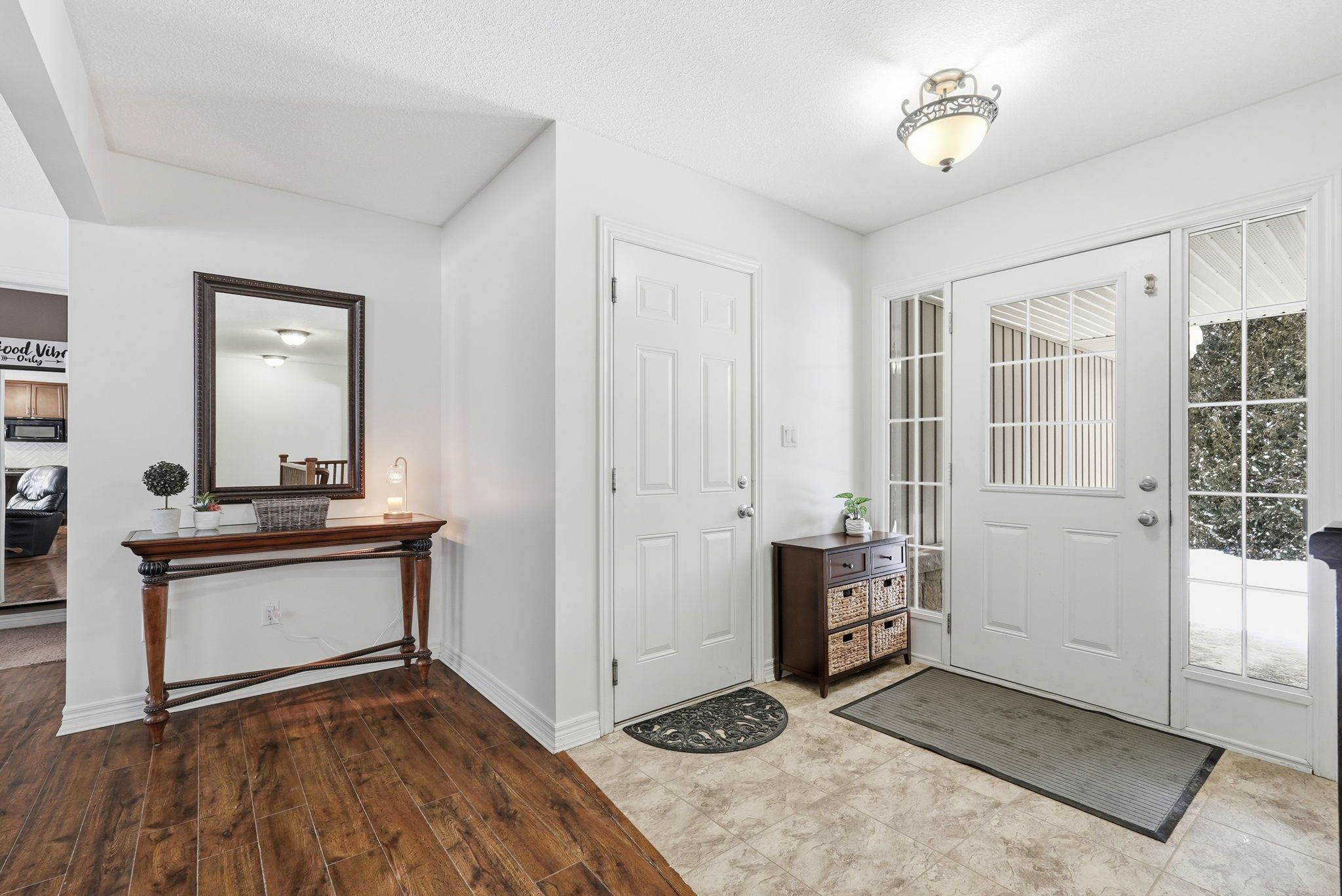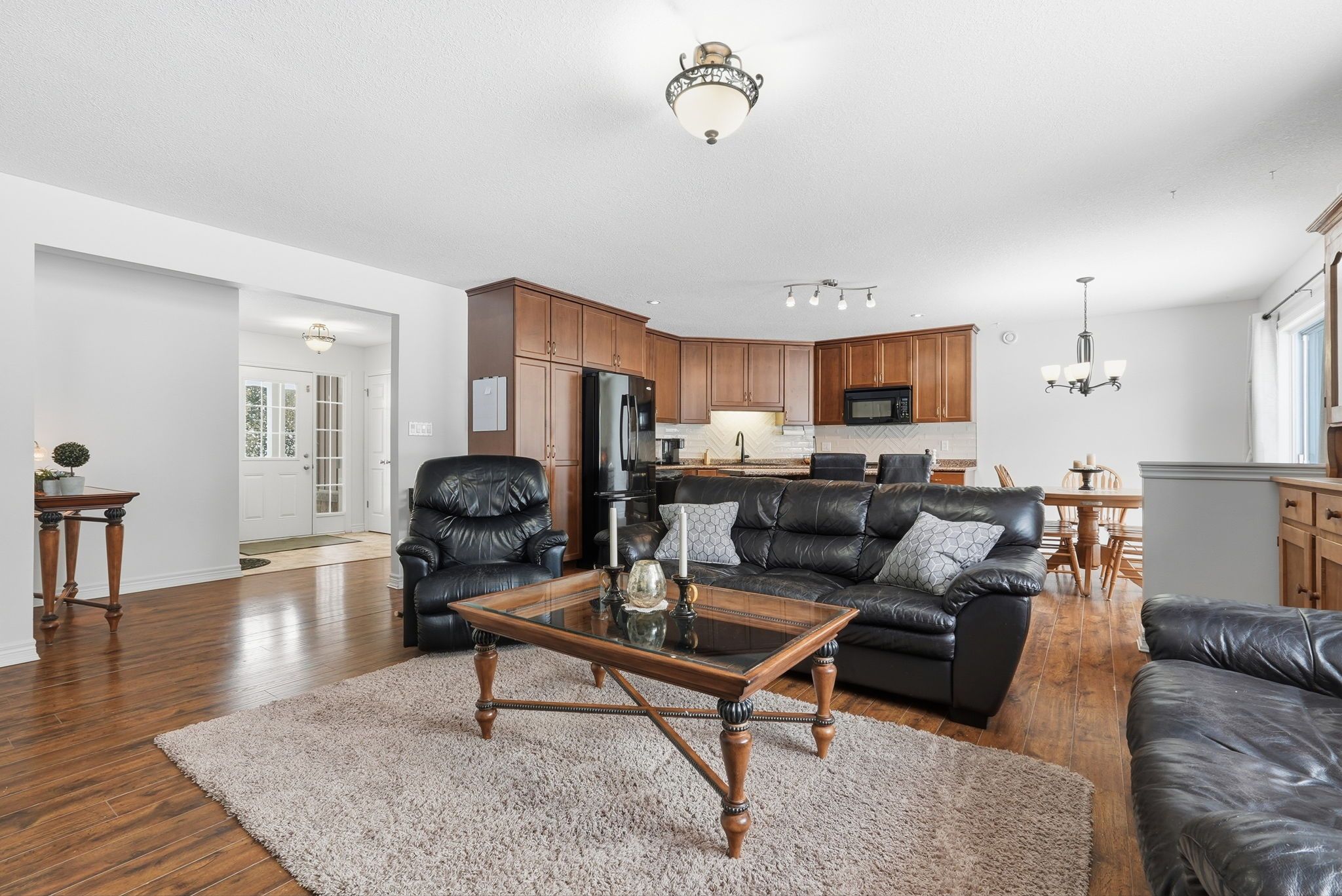• Bright foyer and open-concept main floor with hardwood flooring.