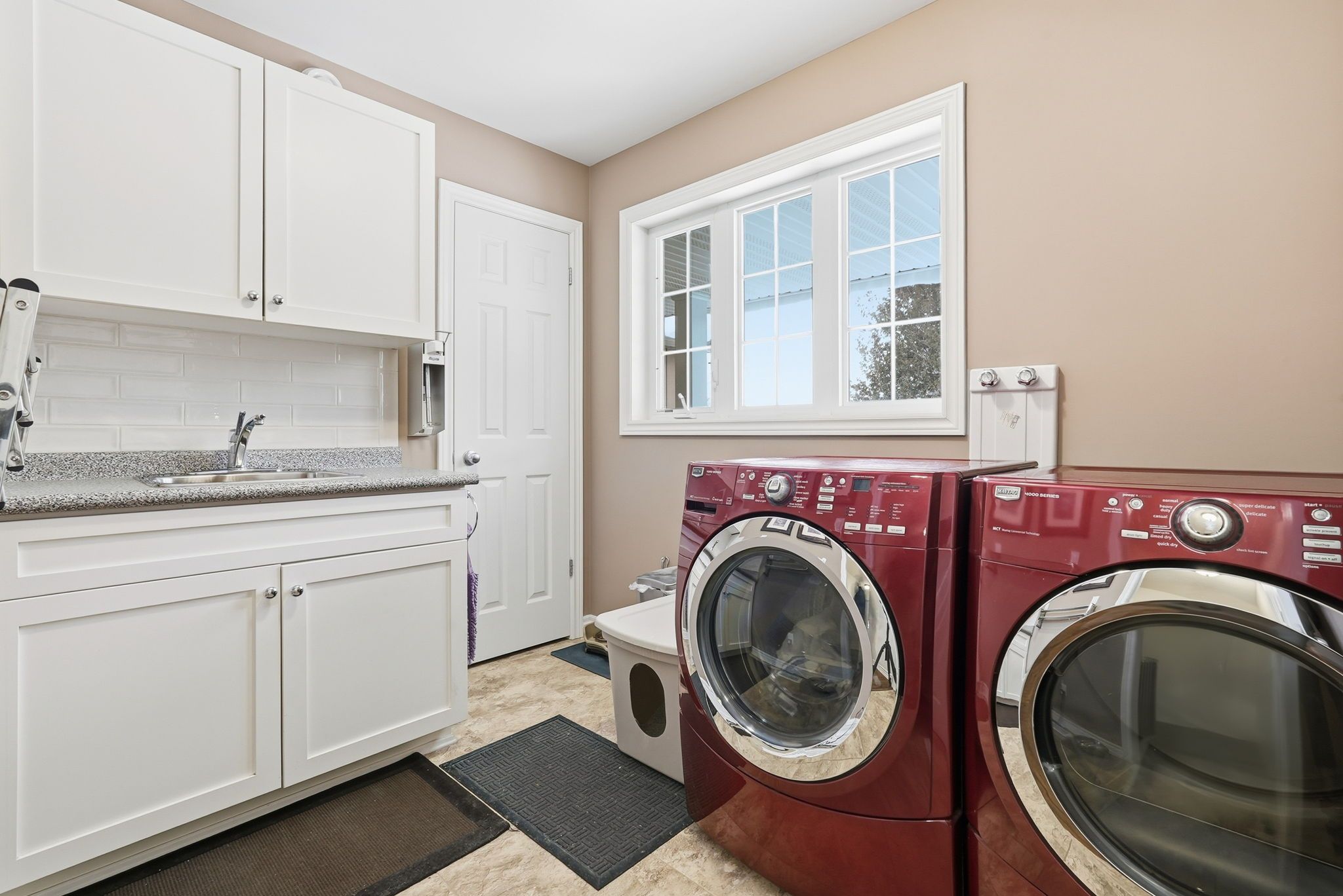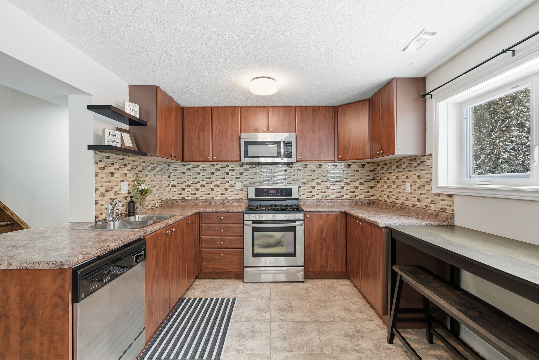 • Heated two-car garage and efficient natural gas heating throughout.