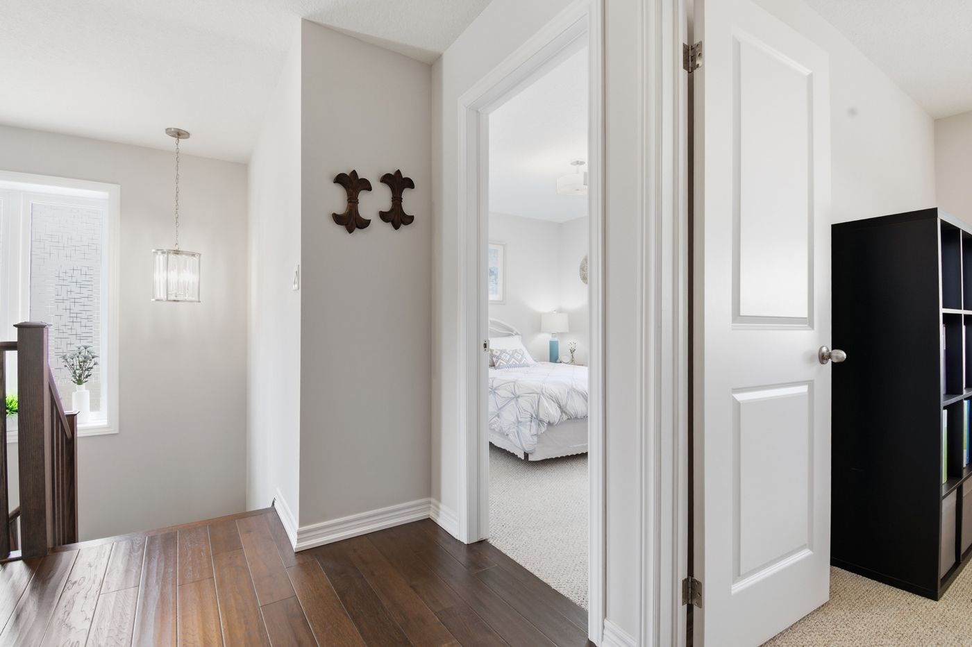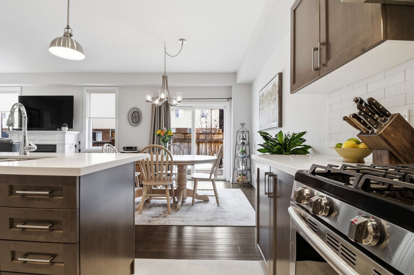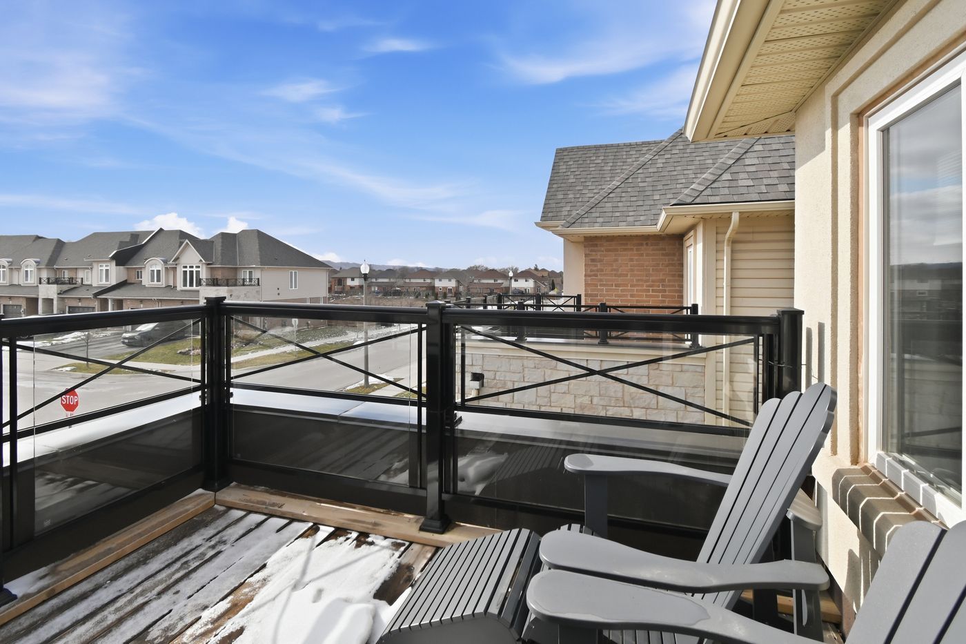 I am pleased to present this stylish, freehold executive two-storey townhouse located in the "foothills of winona". Built in 2019 by dicenzo homes, this property offers high-quality finishes and a thoughtful design throughout. The exterior features significant curb appeal with an exposed aggregate double driveway and a stone pathway leading to a covered entrance. Inside, the foyer is finished with polished porcelain tile that extends into the powder room and the kitchen. The kitchen is well-appointed with ceasarstone countertops, a textured subway tile backsplash, and a breakfast bar overlooking the dining and living areas. The living room includes hardwood flooring and a napoleon gas fireplace. The dining area provides access to a fully fenced rear yard, which features a custom stone patio, a gas bbq hookup, and established perennial gardens. The second level includes three bedrooms and a conveniently located laundry room. The primary suite offers a walk-in closet, a three-piece ensuite with a walk-in shower, and direct access to a private south-facing balcony. The main 4 pc bath is also on this level. The unfinished basement offers an opportunity for customization. Ideally situated just off the qew, this home is five minutes from the lake and close to major retail centers. Commuters will benefit from proximity to the go train stations in both grimsby and centennial. Please let me know if you would like to schedule a viewing or require further information regarding this exceptional property.