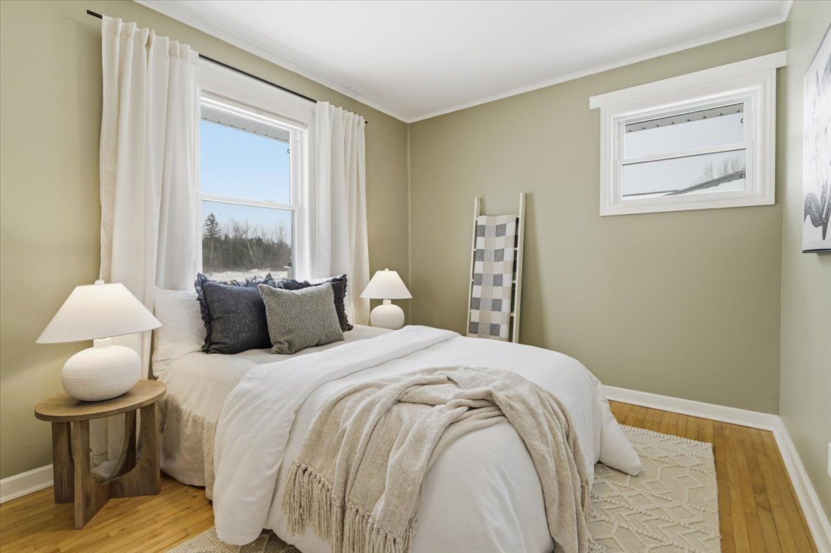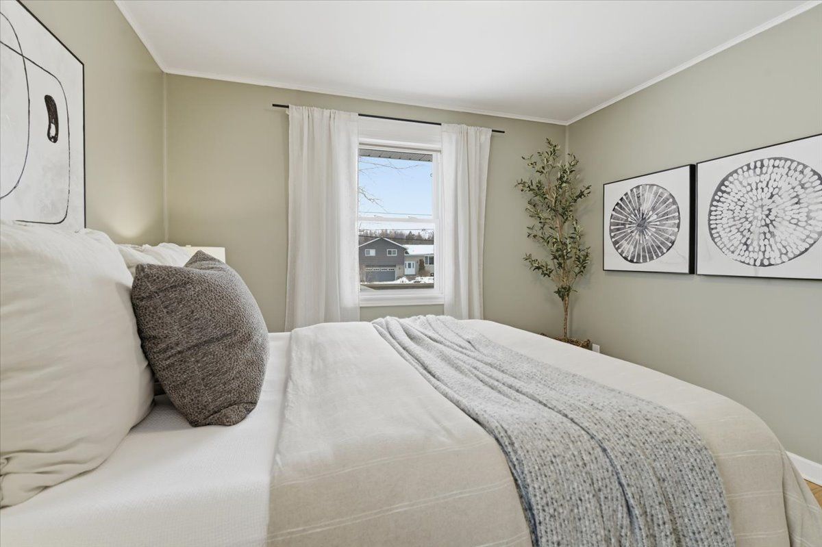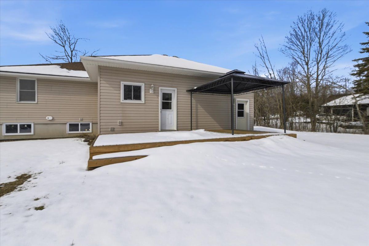 Charming 2+1 bedroom home set on a generous in town lot with no rear neighbours and a treed backdrop. Located on a quiet street steps from in town amenities and within walking distance to the waterfront with a boat launch at the end of the street. Bright and inviting with large windows that bring in natural light, the home offers comfortable everyday living with a functional layout and welcoming main living space. The original home was built in 1950 and relocated to this property in 2009 where it was placed on a new poured concrete foundation with updated walls plumbing and wiring. Includes an attached deep garage with room for a vehicle along with tools or extra storage. Hardwood flooring runs through the living room and main floor bedrooms. The finished basement features 10 ft ceilings and includes a spacious family room or rec room with an electric fireplace, a large additional bedroom with walk in closet and a 3 piece ensuite, along with laundry and ample storage throughout the home.