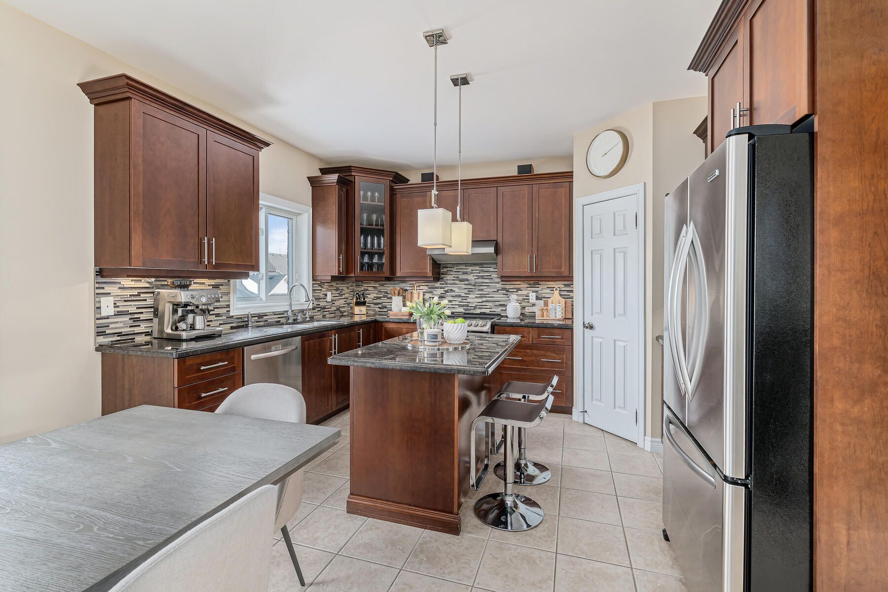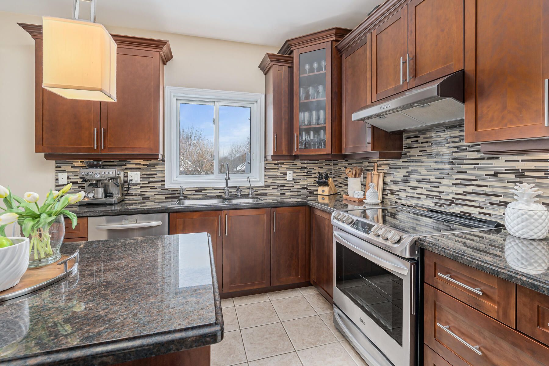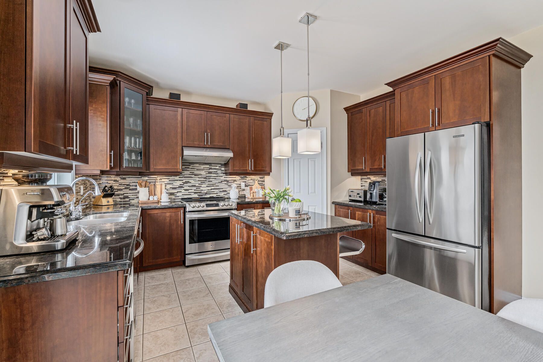 • Stunning kitchen with granite counters, stainless steel appliances, and pantry.