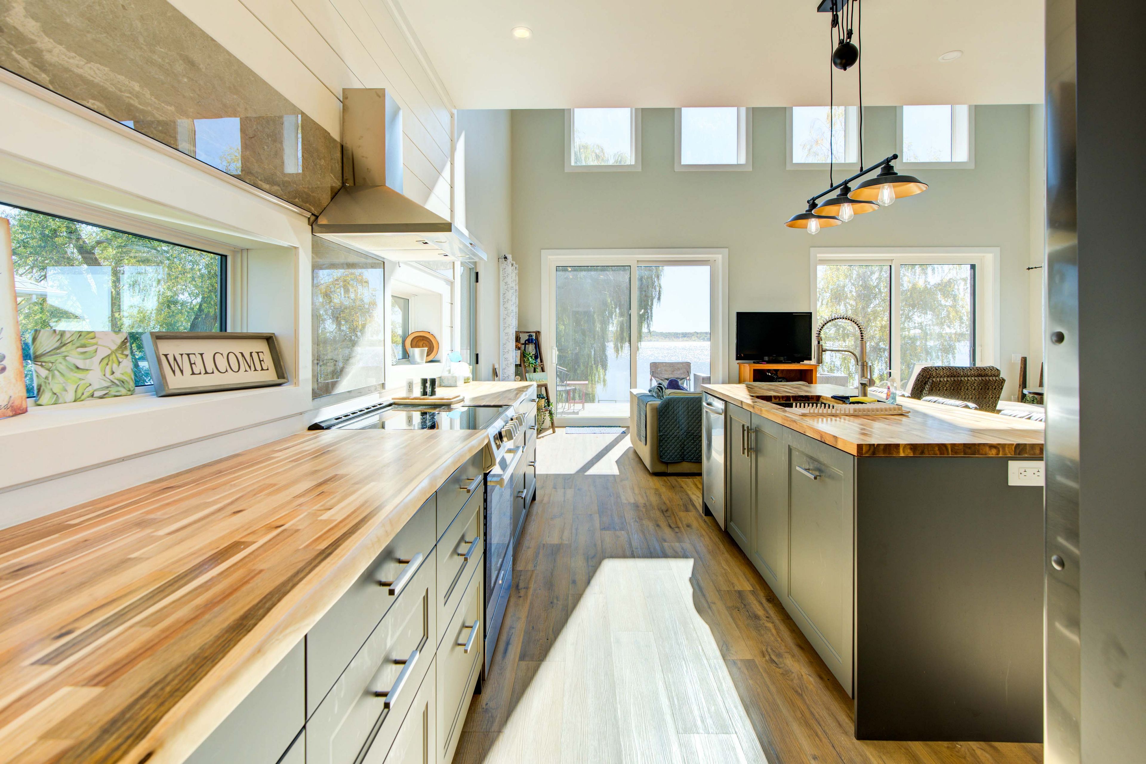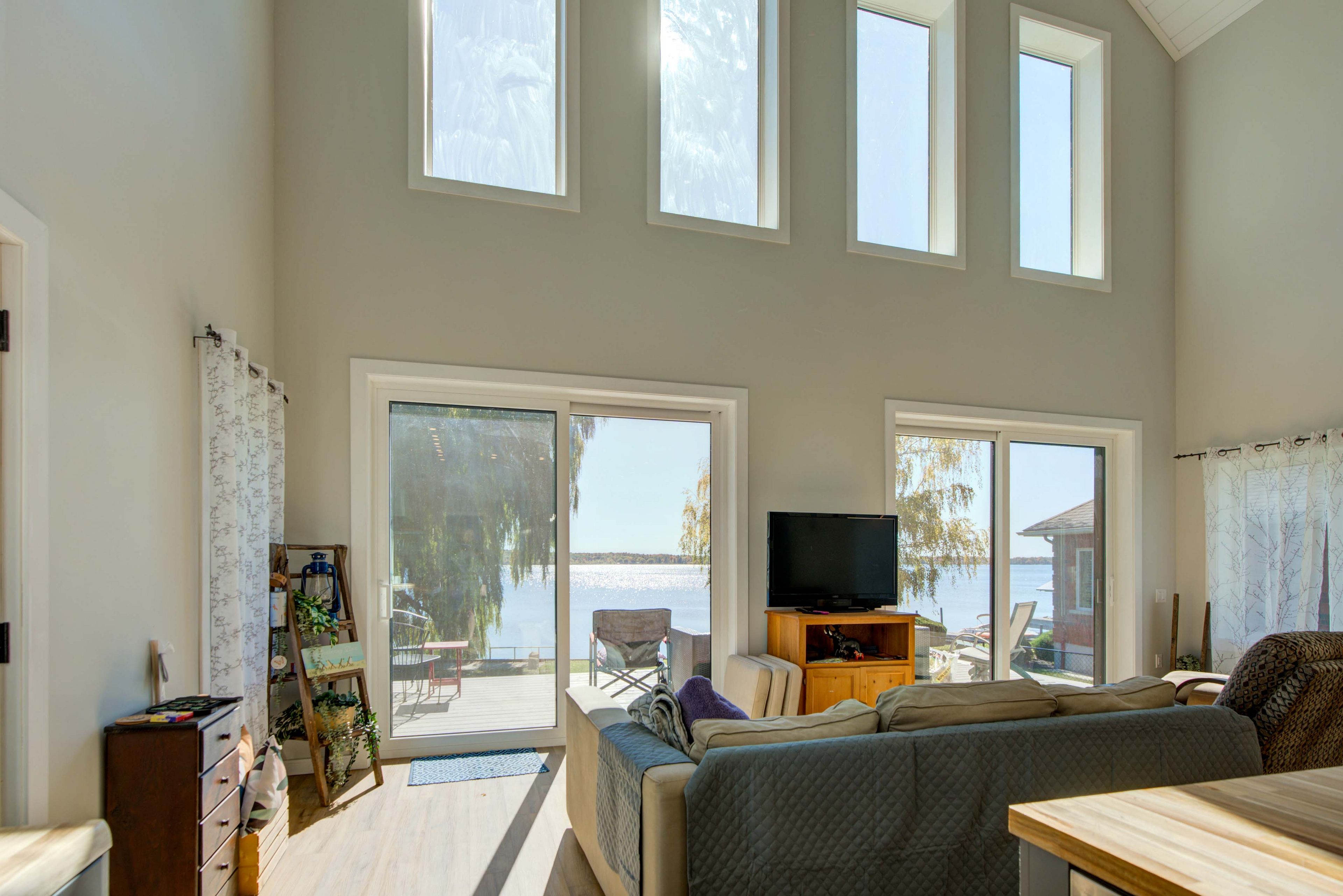 • Open-concept main floor with large windows showcasing beautiful water views.
