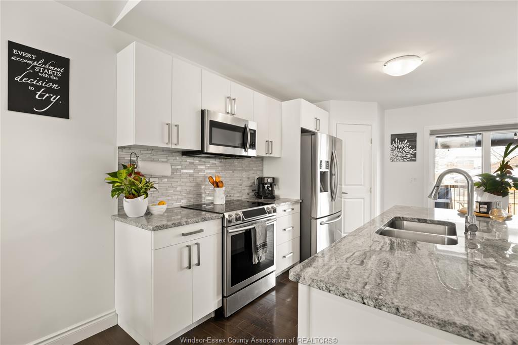 Welcome to this 2017-built raised ranch in highly sought-after east windsor, just minutes from the wfcu centre, new costco, ganatchio trail, shopping, parks, and within the coveted david suzuki public school district. This well-designed home features 3+1 bedrooms and 3 full bathrooms, including a primary suite with walk-in closet and private ensuite. Large windows fill the home with natural light, enhancing the spacious layout. The lower level is built for entertaining with a wet bar, fireplace, and generous movie and games area. The kitchen offers stainless steel appliances, an eat-at island, walk-in pantry, and full granite countertops. Enjoy the upper deck with metal gazebo and natural gas bbq line, overlooking a large concrete patio and fully fenced yard. Two-car attached garage, no rental equipment, and true turnkey living.