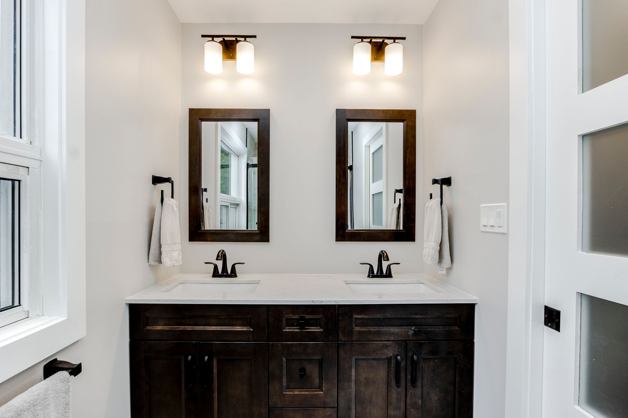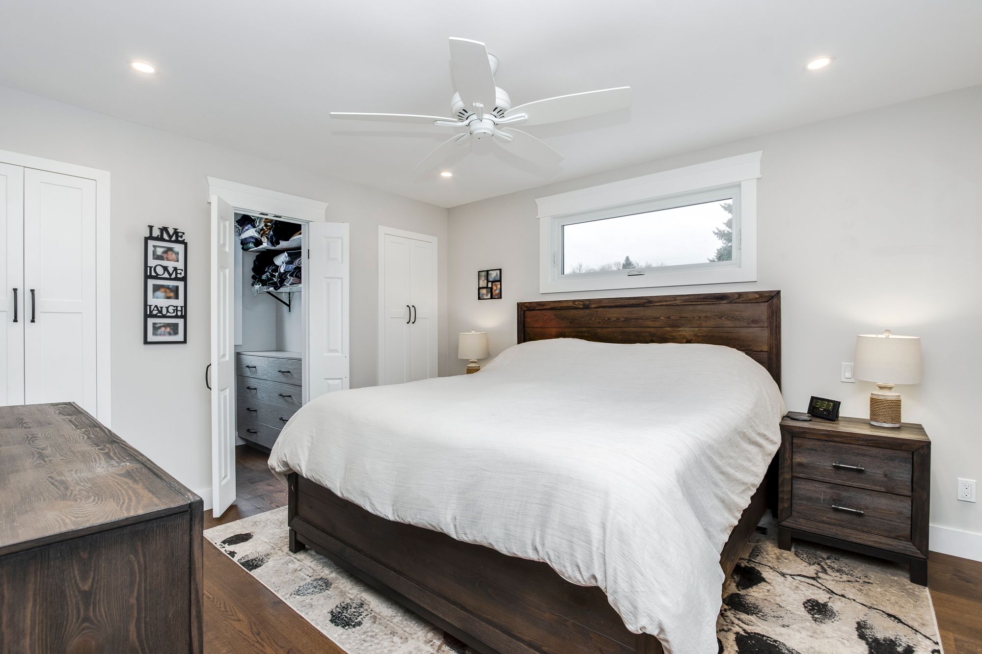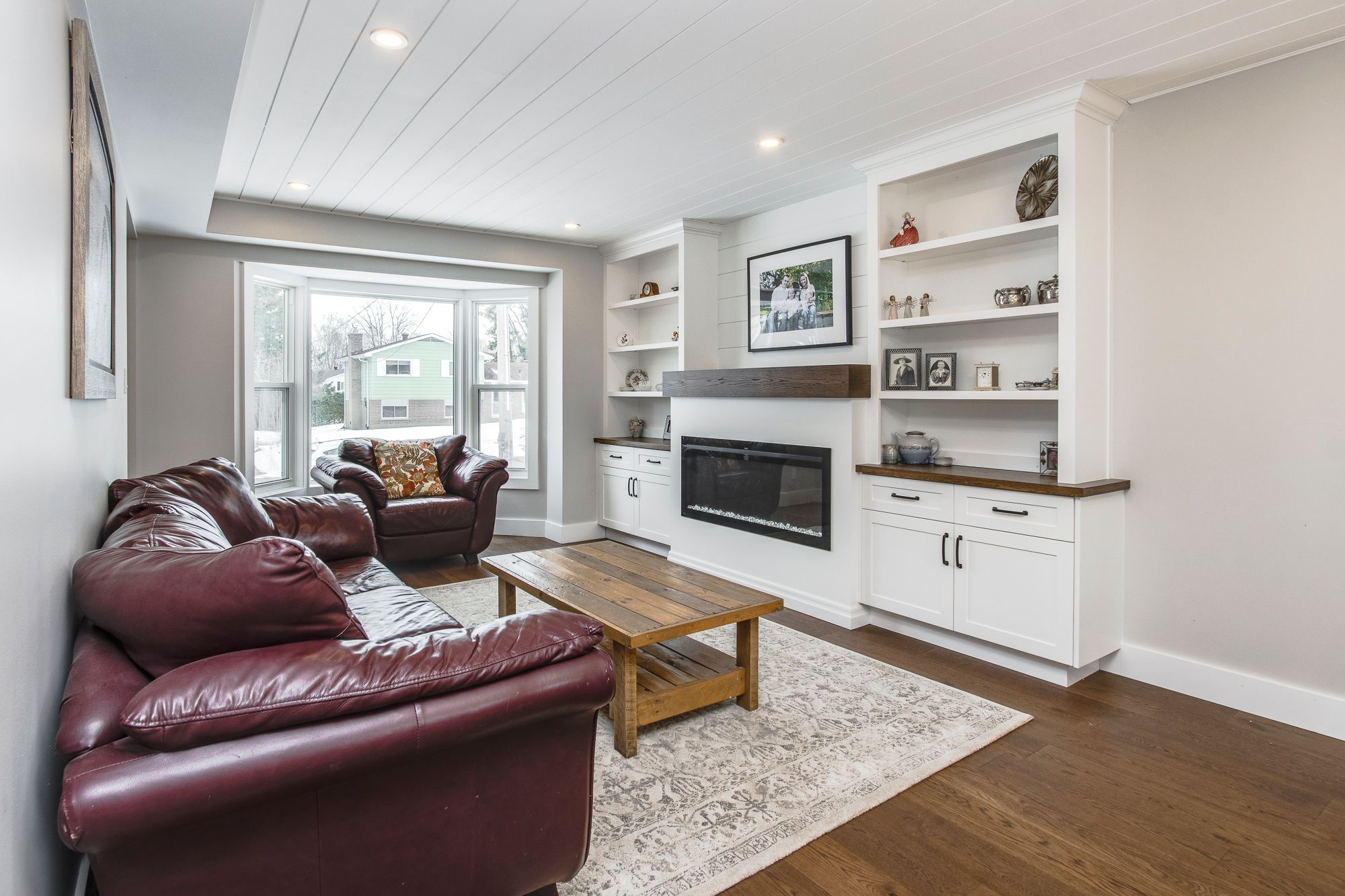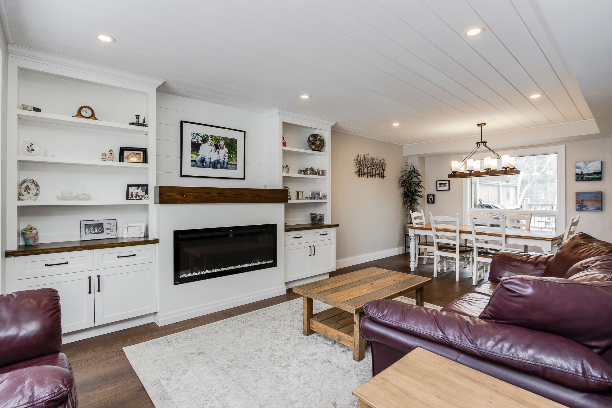 • Bright living spaces with a gas fireplace and flexible rooms for guests.