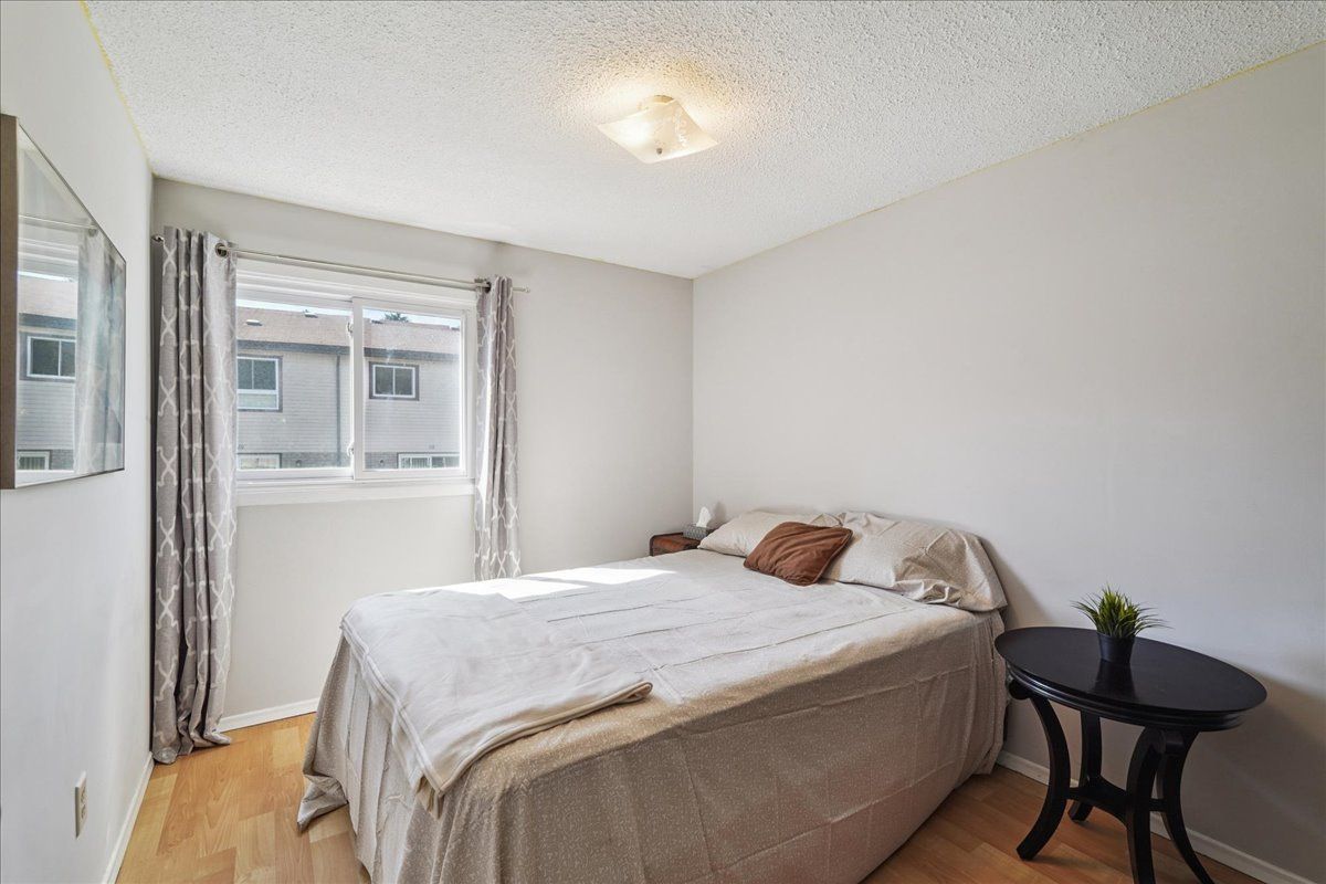 Prime location! This well-maintained condo townhome offers exceptional value, making it an ideal choice for both first-time buyers and downsizers. It ensures a low-maintenance lifestyle with advantageous low fees that specifically cover water usage, grass cutting, and all common element maintenance. The interior features a spacious and functional layout with multiple rooms, providing the perfect living space for a growing family. The main floor showcases a stunning, renovated kitchen equipped with elegant quartz countertops and a full suite of updated stainless steel appliances. Enjoy unparalleled convenience with private direct backyard access, which provides a handy shortcut to woodside square mall and immediate visitor parking access. Located in a prime sandhurst community, steps from the mall and excellent schools, this property is truly move-in ready.