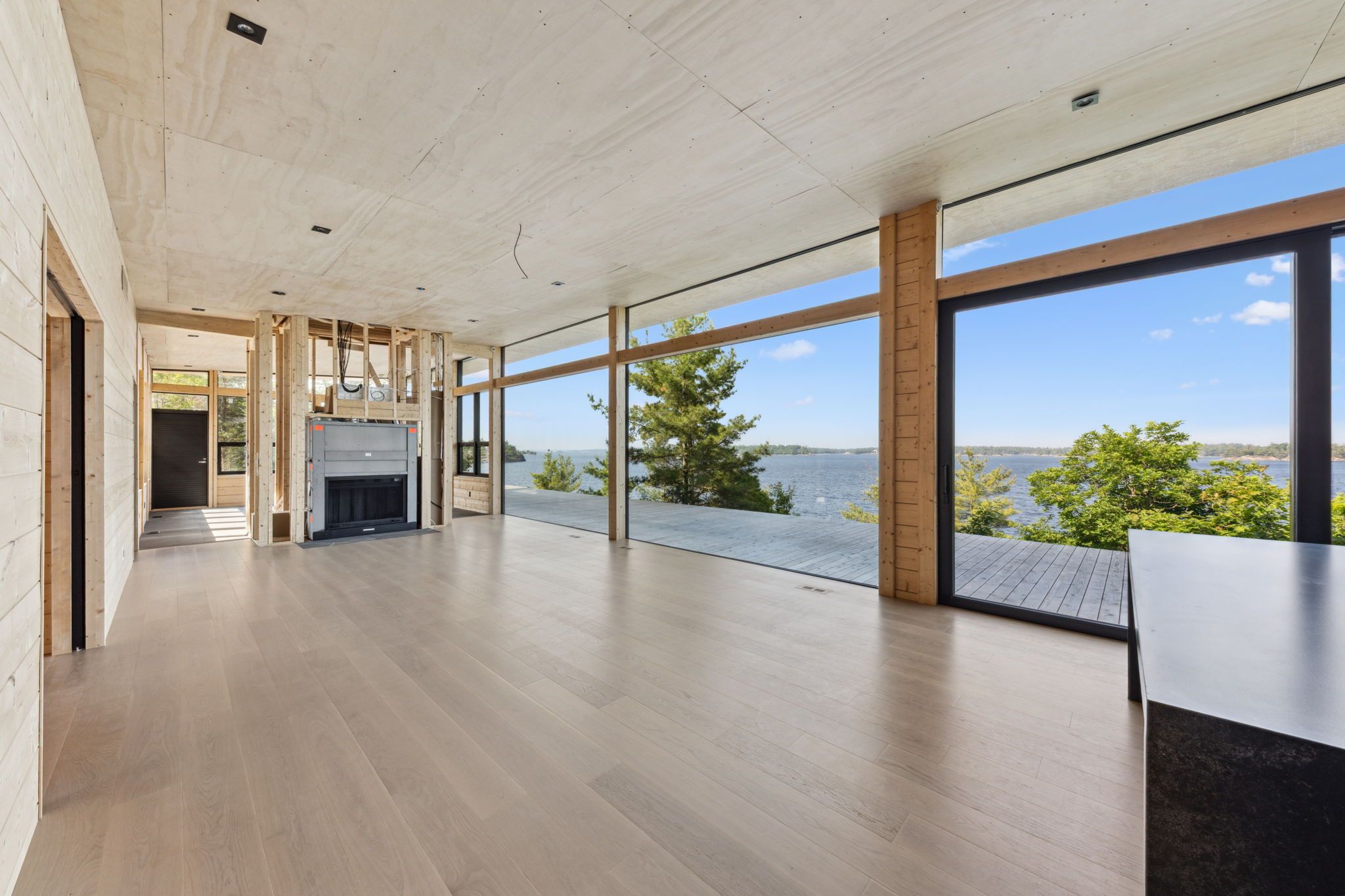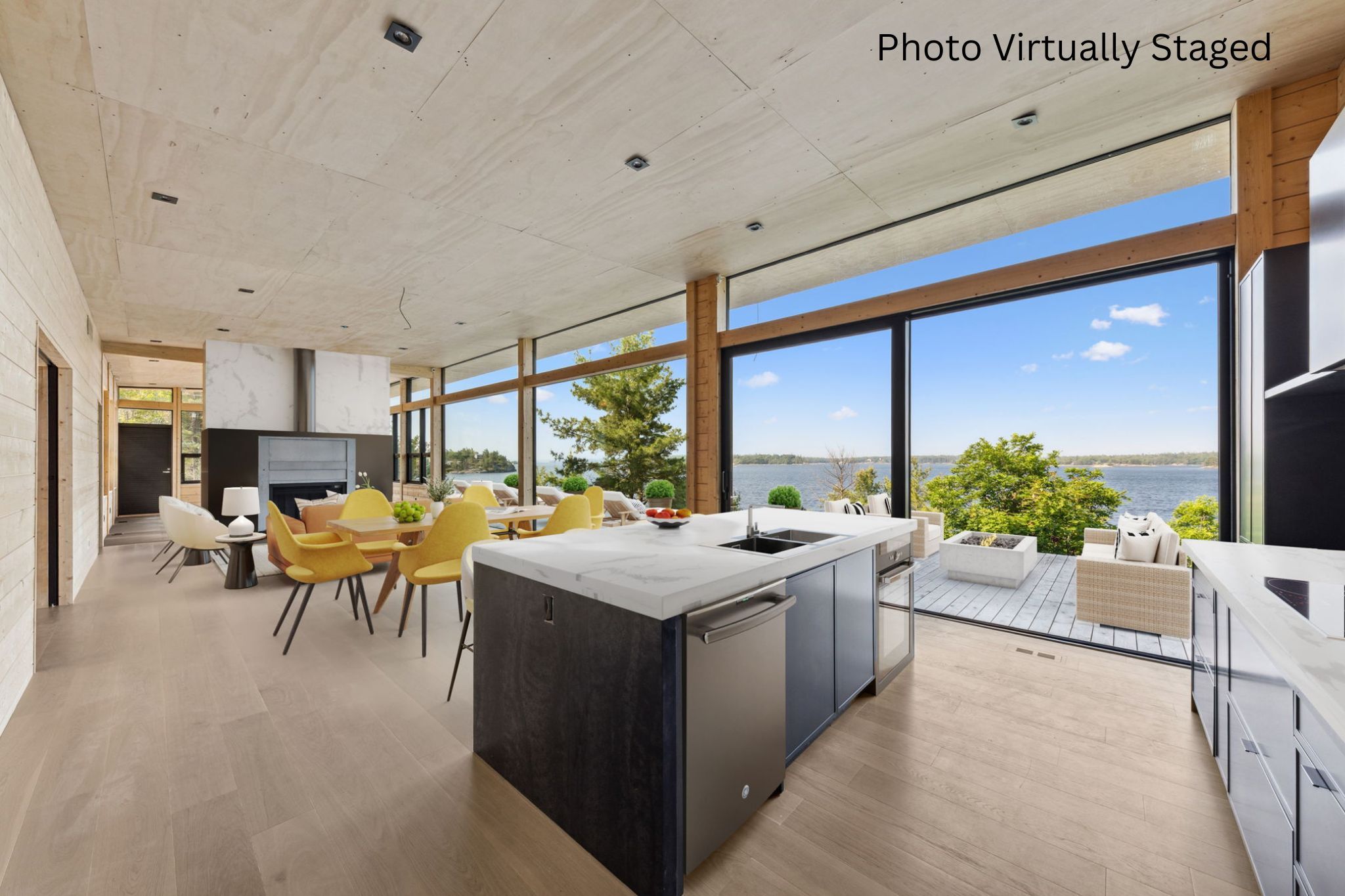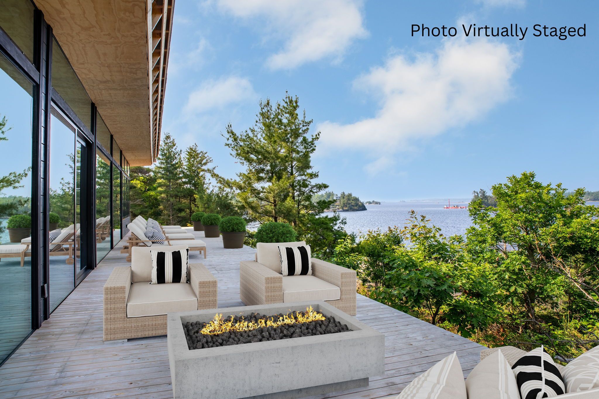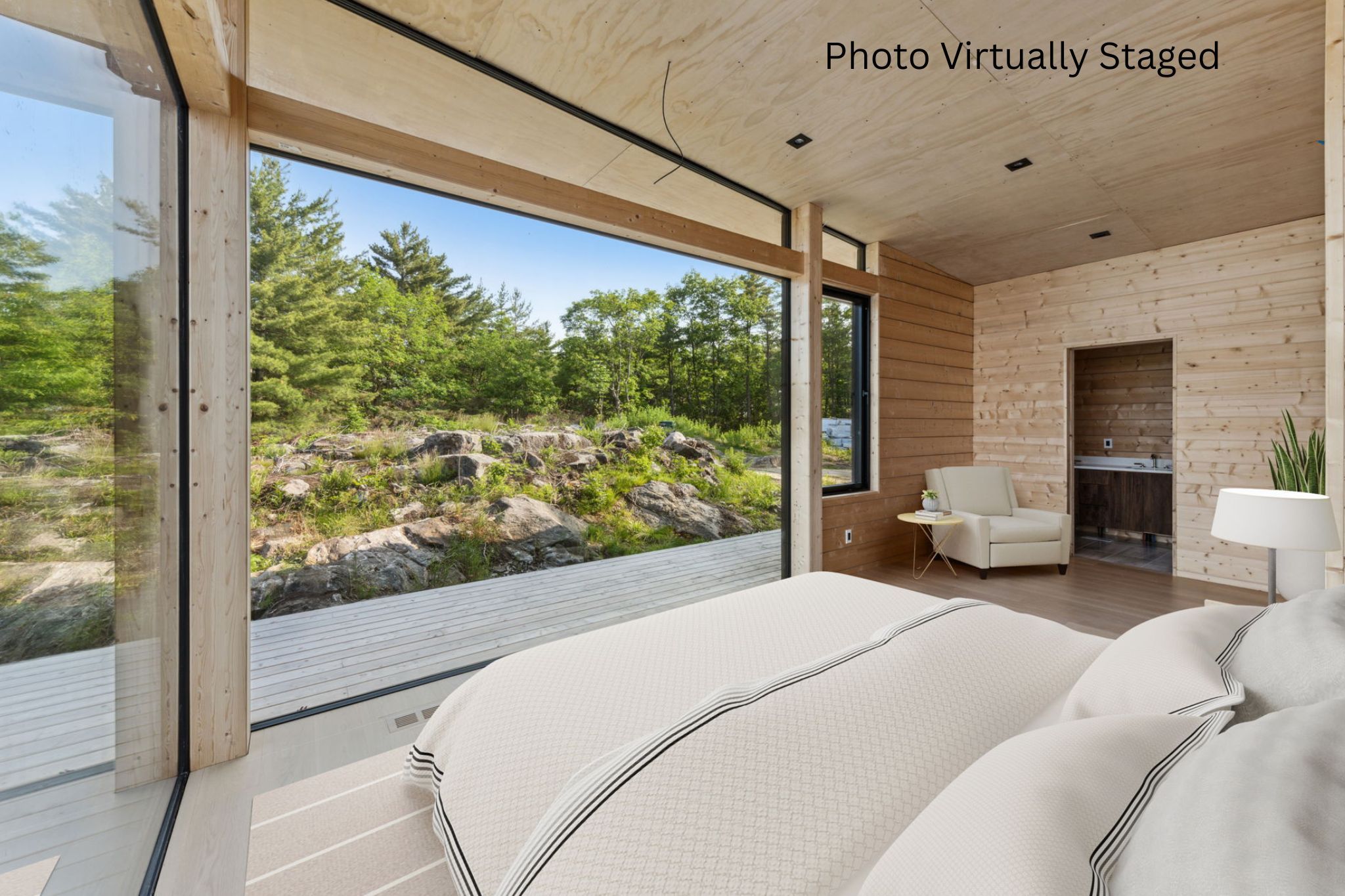 An architectural standout in one of georgian bays most coveted enclaves, this brand-new scandinavian-style cottage presents a rare opportunity to complete a high-end build without the pressures of starting from scratch. Built using precision european log construction, the home blends minimalist form with enduring natural materials. Clean lines, warm textures, and expansive volumes create a seamless connection to the surrounding wilderness. An expansive deck wraps around the entire building, while floor-to-ceiling triple-pane european windows frame approximately 940 feet of private, deepwater shoreline across 8. 48 acres. With sunset-facing western exposure on a secluded point of land, the property offers panoramic views and complete privacy from all vantage points. Inside, the layout reflects modern luxury living. Natural materials, including stone, marble, caesarstone, and wood, enhance the aesthetic throughout. The custom kitchen and walk-in pantry are designed for functionality and beauty, while century-grade canadian white oak flooring provides warmth and durability. In-floor heating in the muskoka room and main floor bathrooms supports year-round comfort, and two luxurious valcourt frontenac fireplaces offer character and ambiance. The icf-insulated lower level was designed to accommodate a future spa-like bathroom, media room with walkout potential, and gym, office, or additional bedroom. This fully winterized, four-season home features a standing seam steel roof, automated backup generator, spray foam insulation, heat pump with propane furnace backup, & central air conditioning. It is also pre-wired for smart home automation, electric blinds, security, and networking. A robust engineered dock anchored on a 30-inch steel pipe foundation completes the offering. This property is for a buyer who understands the legacy and who shares a love of georgian bay, who values thoughtful design, and who is ready to carry this special place forward. Some photos virtually staged.