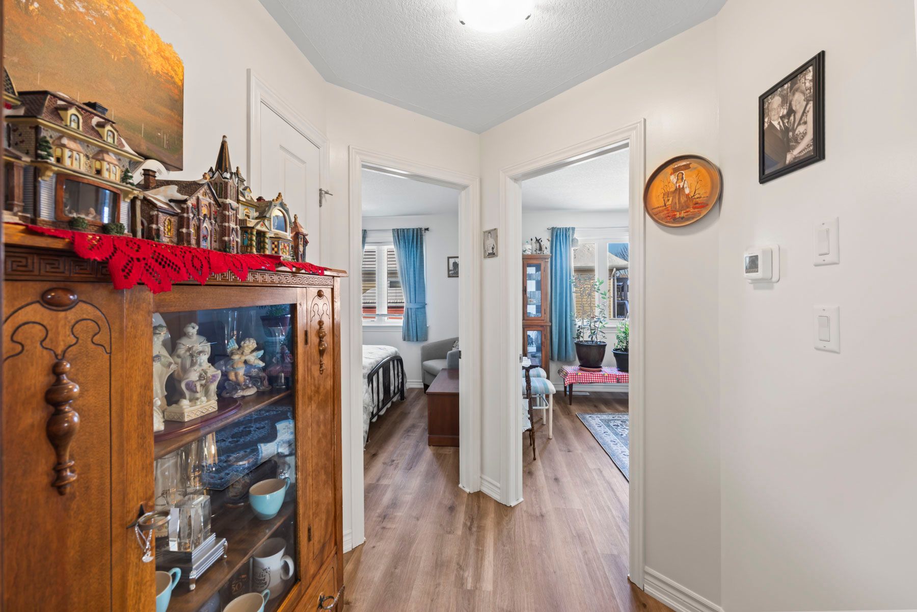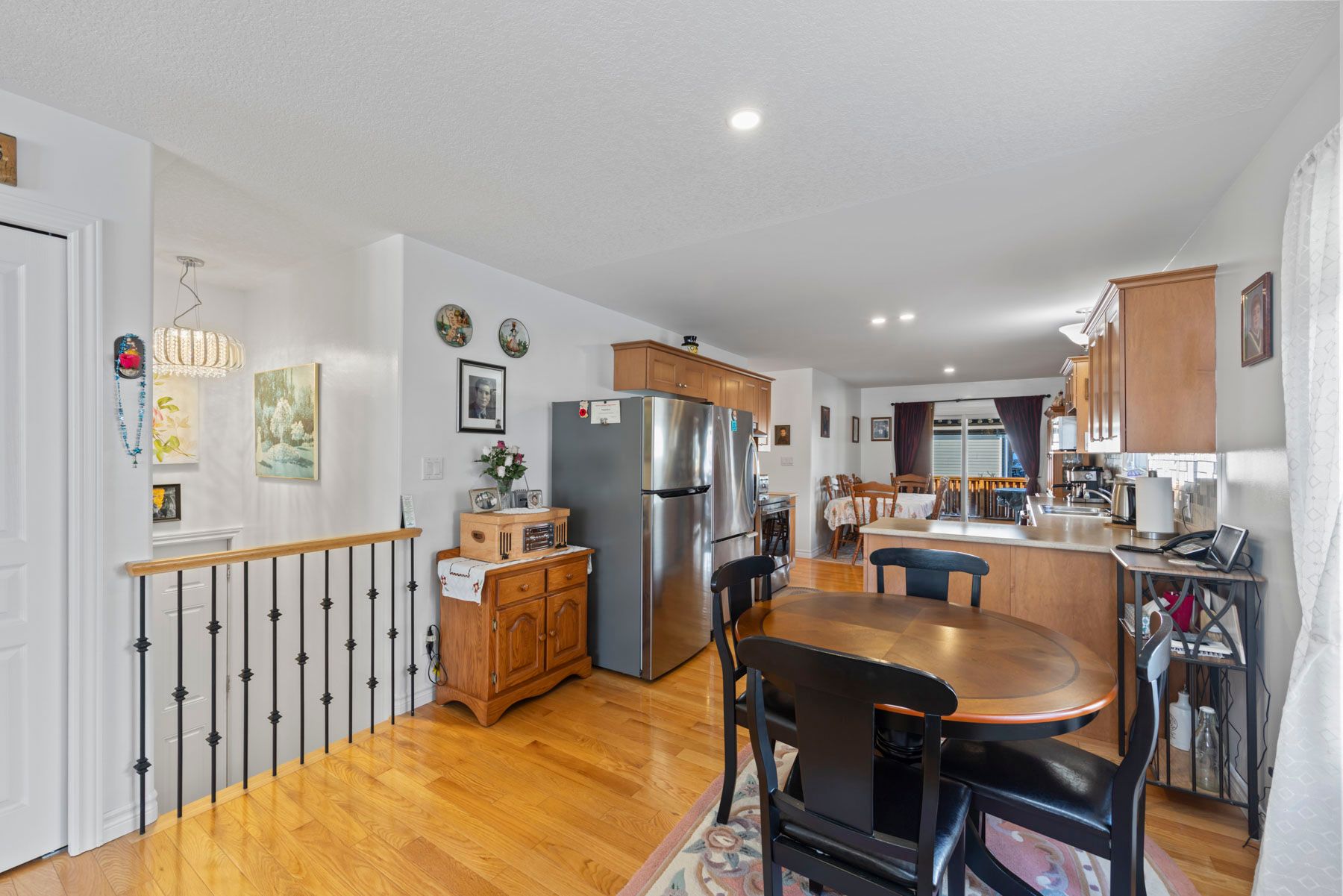 Welcome to this well-located and versatile 3+2 bedroom, 3 full bathroom bungalow, perfectly positioned in a sought-after king's landing neighbourhood within walking distance to amenities, schools, parks, and public transit. Offering a flexible layout and excellent use of space, this home is ideal for families, multi-generational living, or those seeking added income potential. The main level features a bright open-concept great room combining the living, dining, and kitchen areas-an inviting space for everyday living and entertaining. The spacious primary suite offers a full ensuite and walk-in closet, providing a private and comfortable retreat, while additional bedrooms and a full bath complete the main floor. Downstairs, the fully finished lower level significantly expands your living space, featuring two additional bedrooms, a large rec room, and a third full bathroom. With wiring already in place for a second stove and convenient side access from the garage, this level offers excellent potential for an in-law suite or accessory apartment-perfect for extended family or possible income generation (subject to approvals). Recent updates add peace of mind, including a newly finished basement, central air installed last year, and a roof replaced approximately three years ago. The attached 1. 5-car garage features ample storage and a high ceiling, ideal for additional gear, tools, or workshop space. Step outside to enjoy the new covered rear deck, overlooking a fully fenced backyard complete with a storage shed and established gardens-perfect for relaxing or entertaining. The home also benefits from side views of the retention pond and adjacent green space, along with direct access to a nearby park, adding to the appeal for families and outdoor enthusiasts. A rare opportunity in a prime midtown location, this home delivers space, flexibility, and convenience in one complete package.