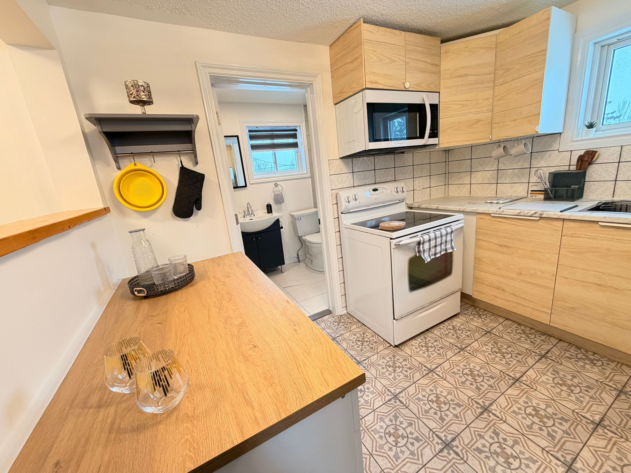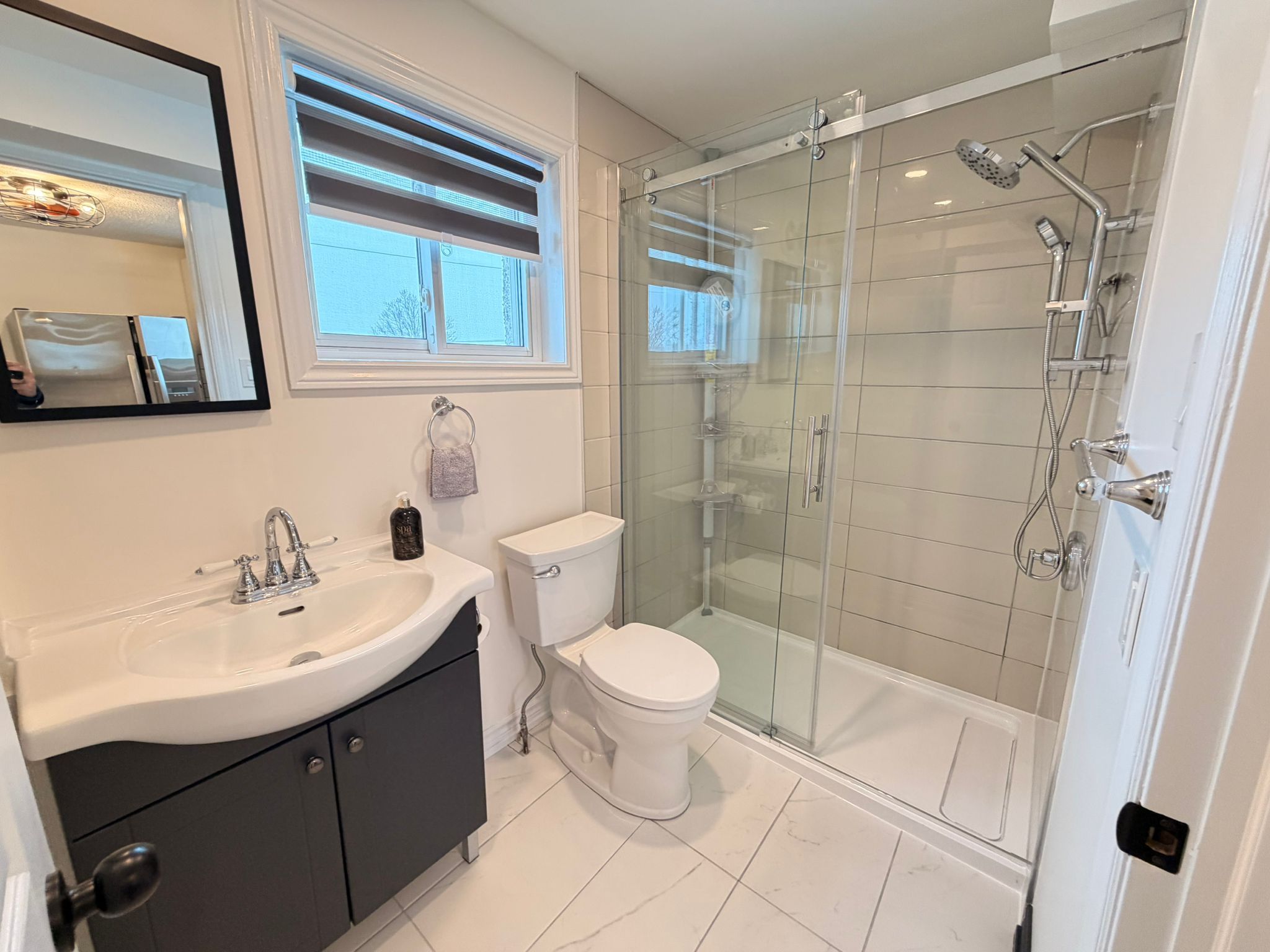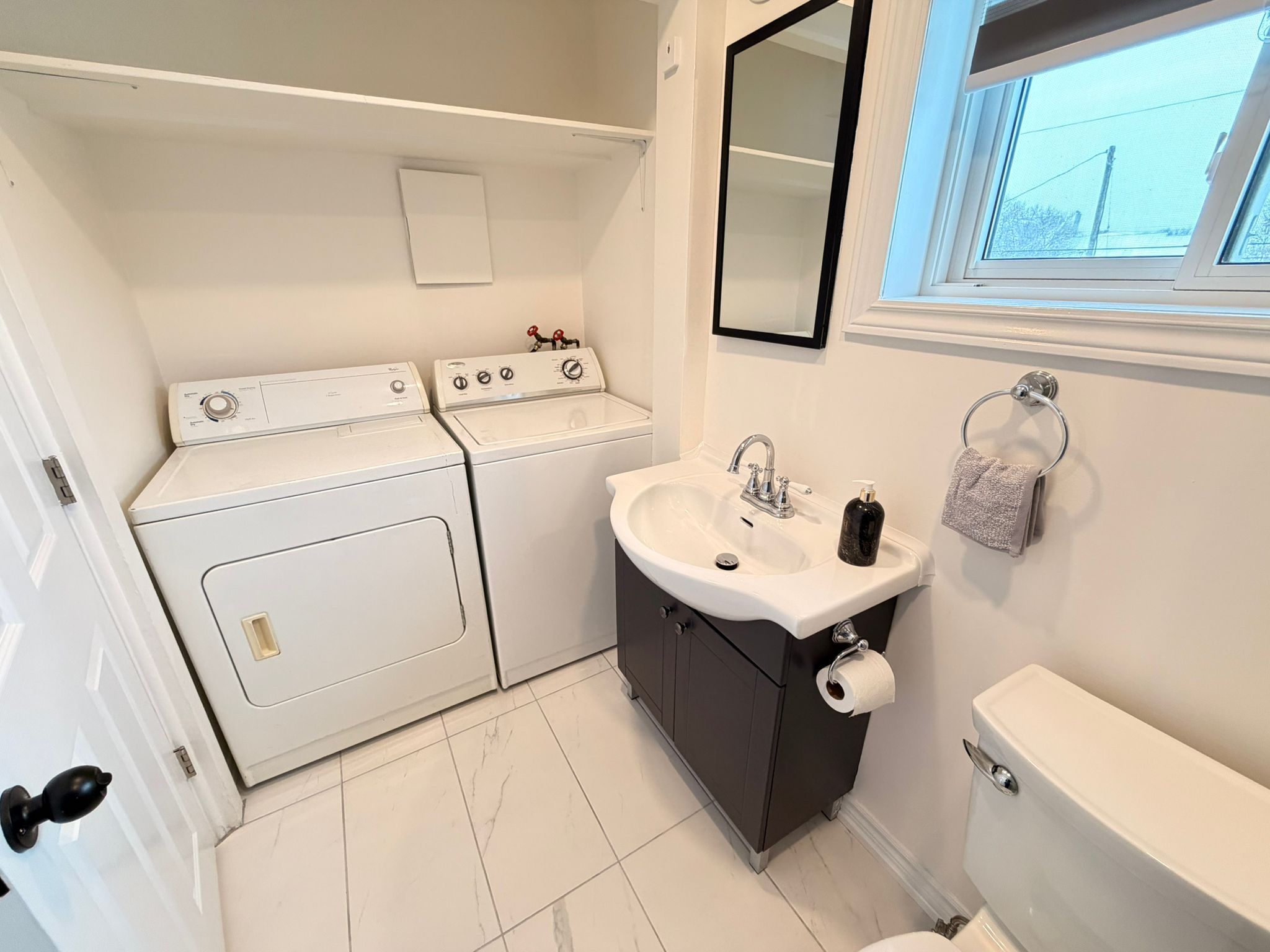 Bright and recently renovated upper-level apartment ideally located in the heart of orleans. This carpet-free unit features two well-sized bedrooms and a modern three-piece bathroom. The functional kitchen is equipped with a refrigerator, stove, microwave with hood fan, and extended counter space. Enjoy the convenience of in-unit laundry and one designated parking space on the left side of the driveway. Additional driveway parking is available for $75/month. Tenants also have access to a large, fully fenced backyard. Situated on a quiet street just steps from place d'orléans shopping centre, transit, schools, parks, and a wide range of amenities.