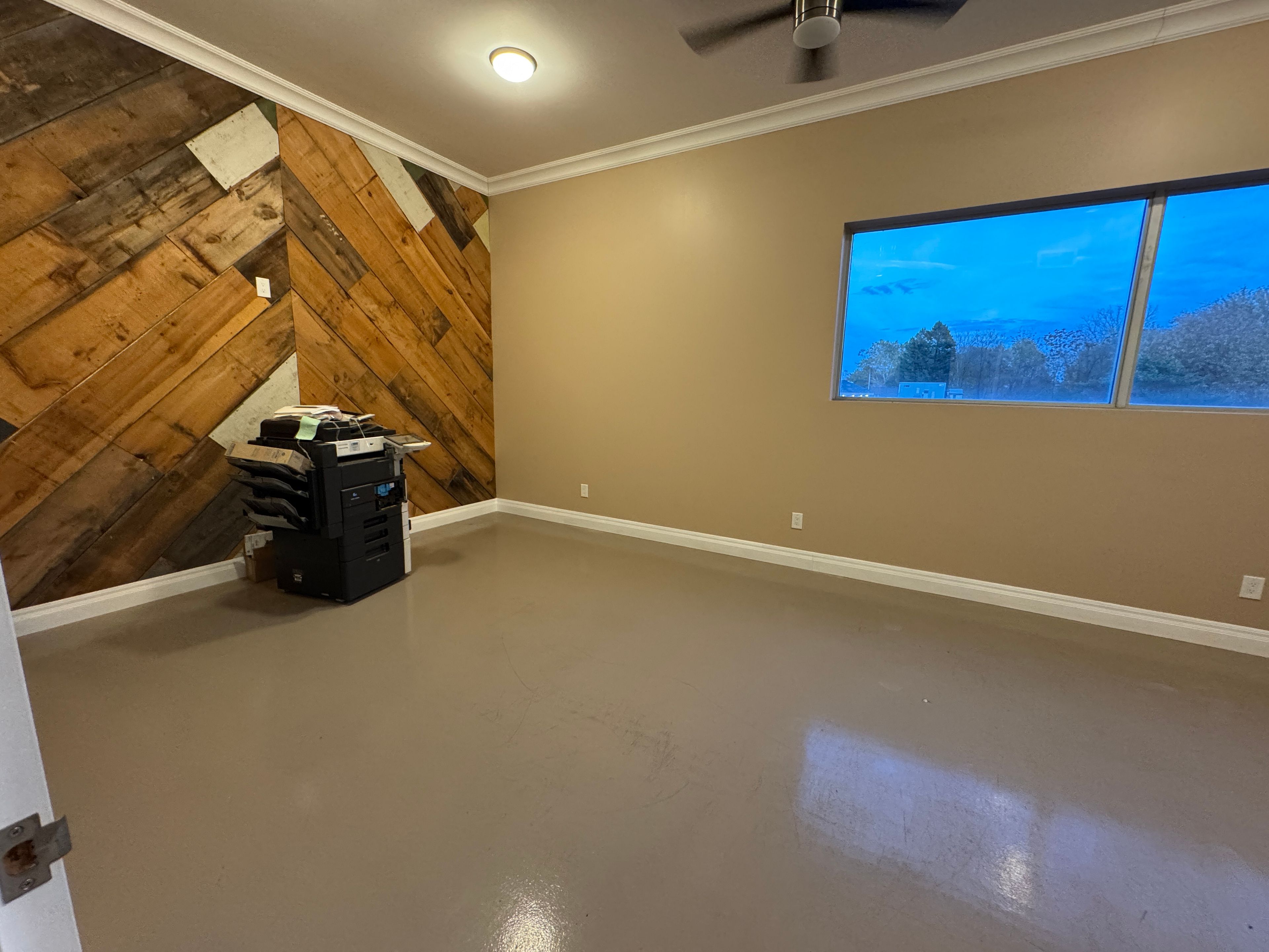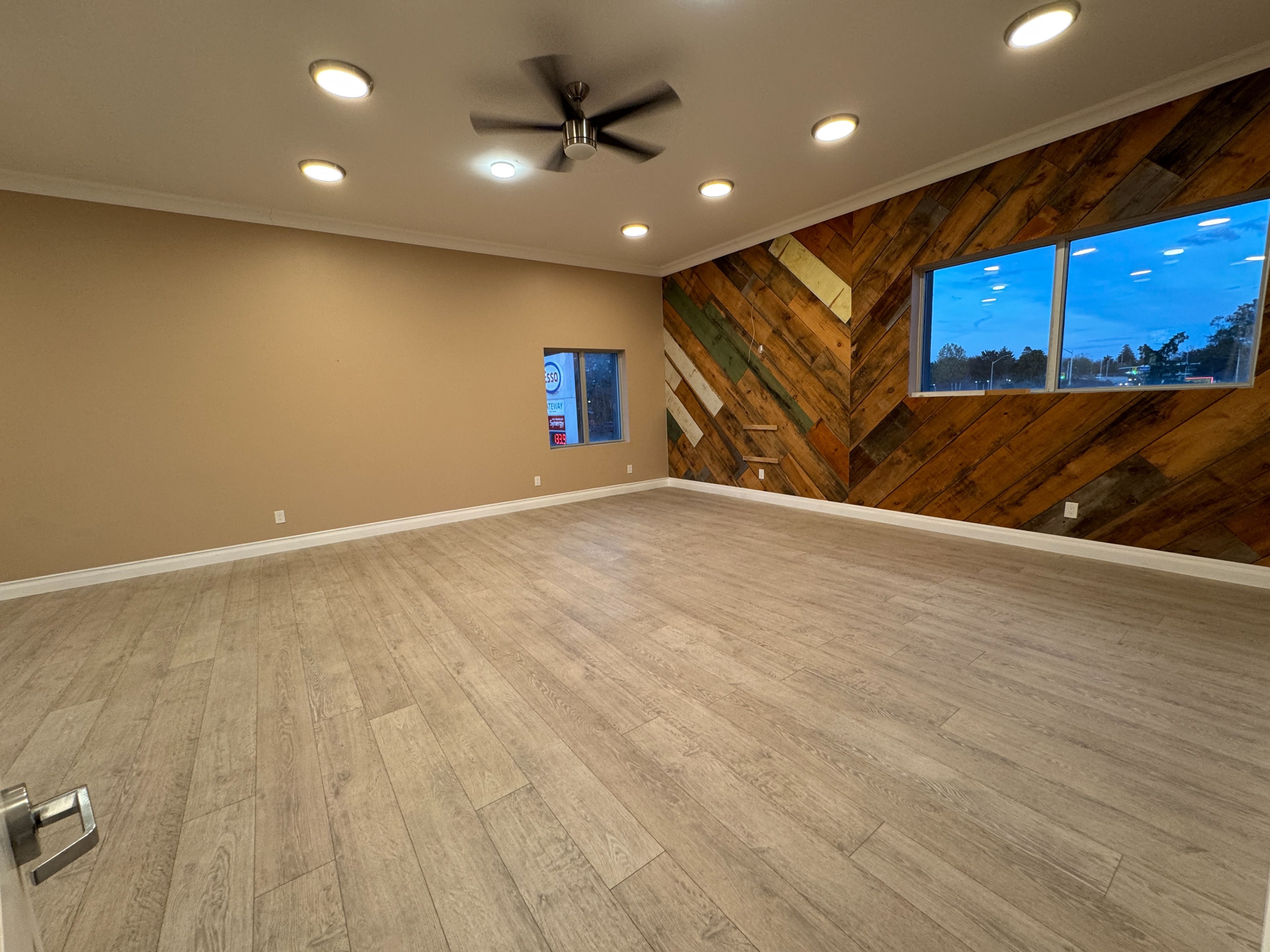 • Huge windows and 12-foot ceilings create a bright, professional atmosphere.