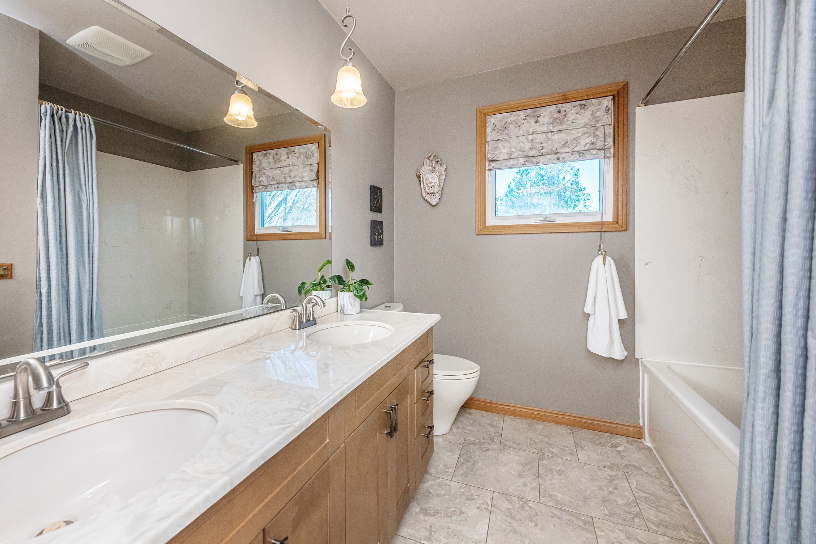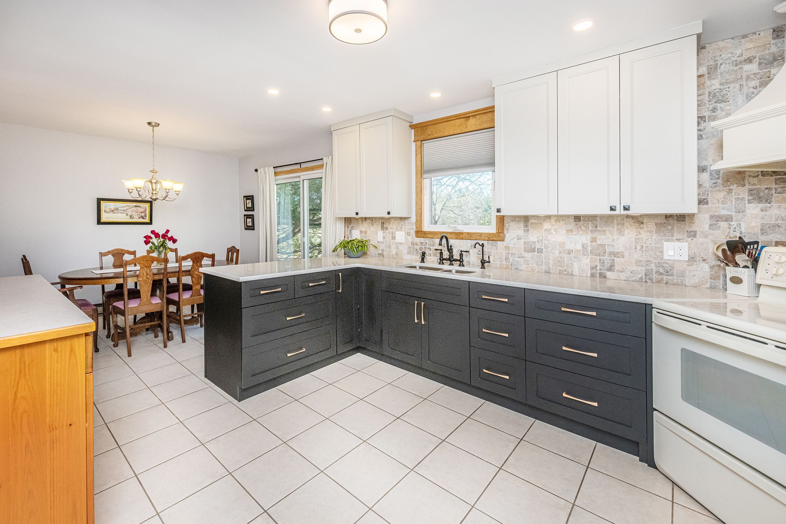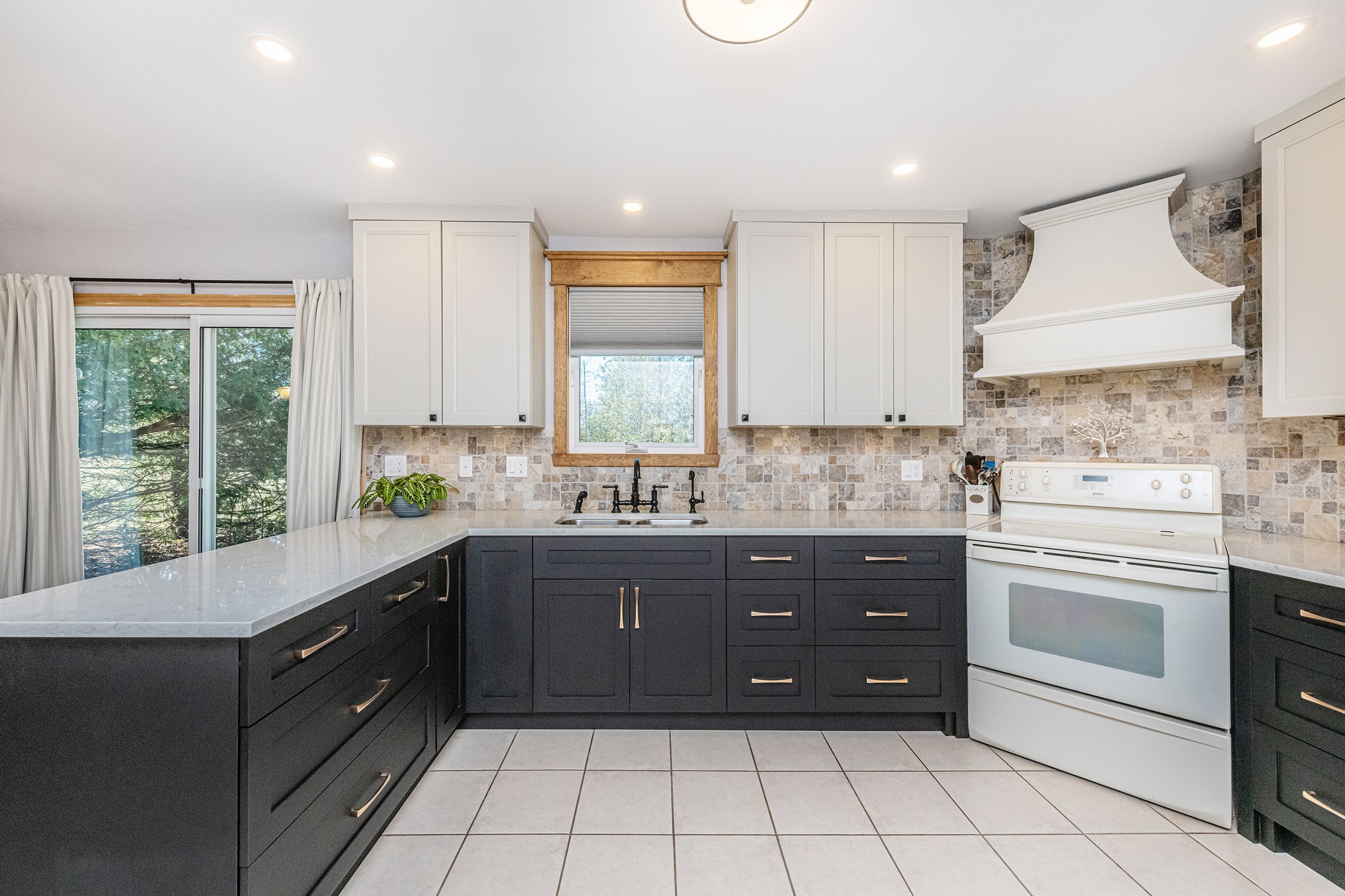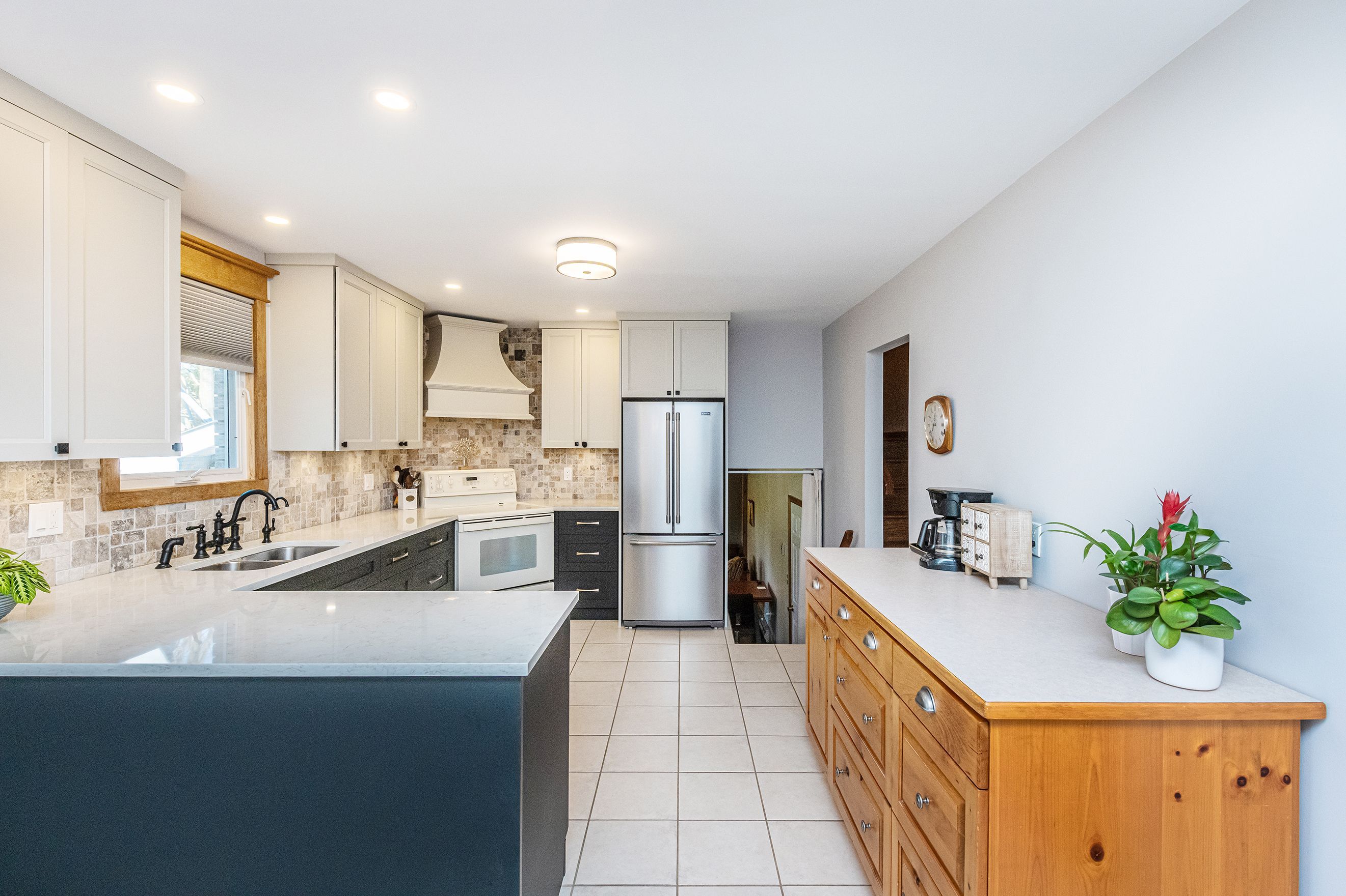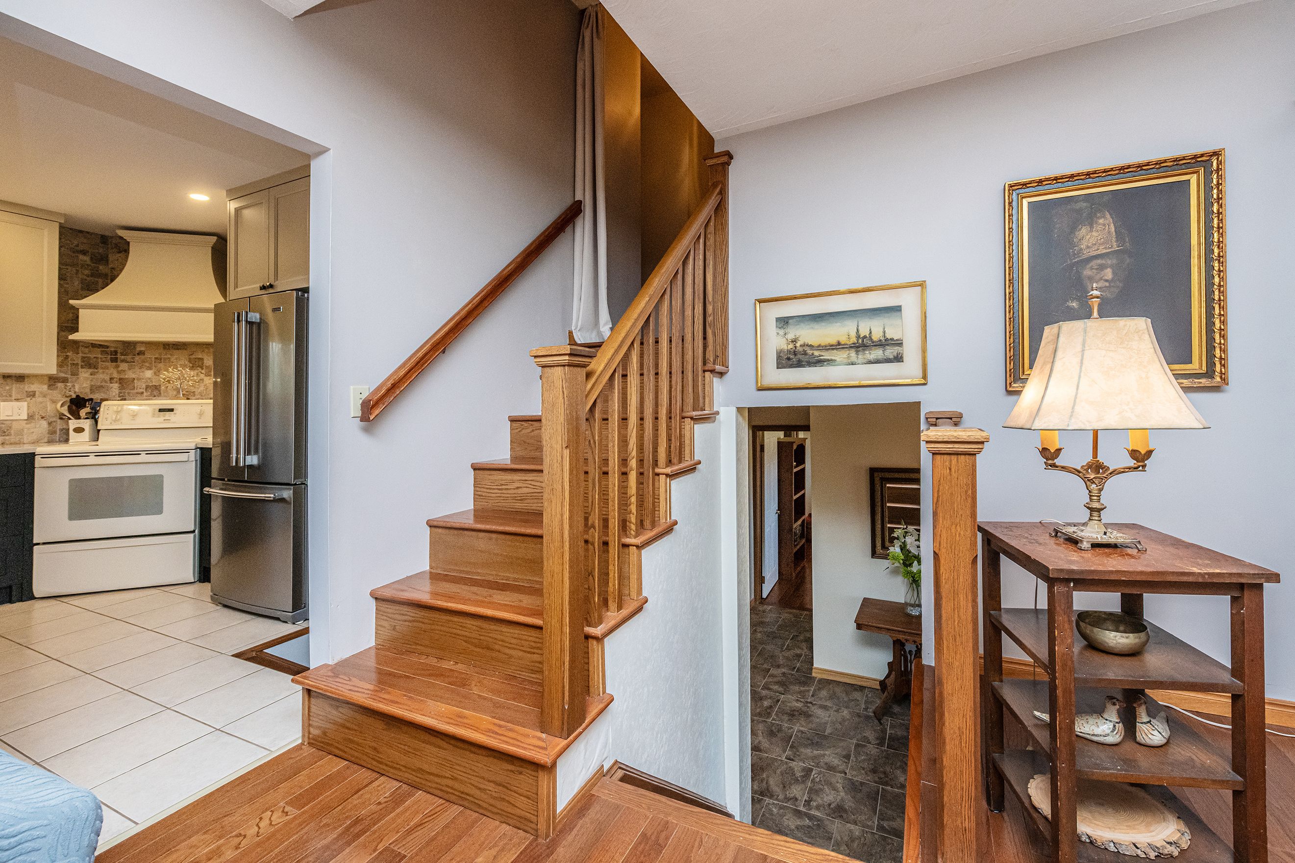 • Custom kitchen and renovated upper bathroom with hardwood floors throughout.