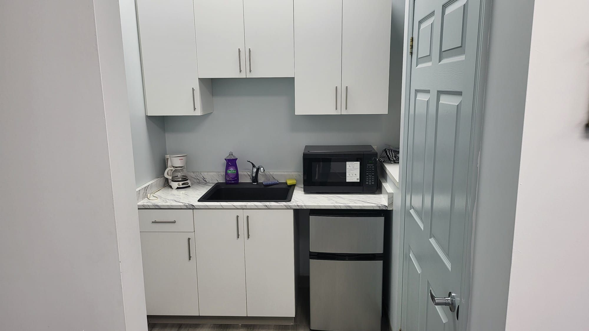 • Includes 4 private offices, storage, kitchenette, and bullpen area.