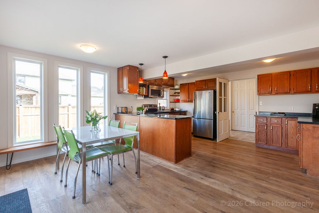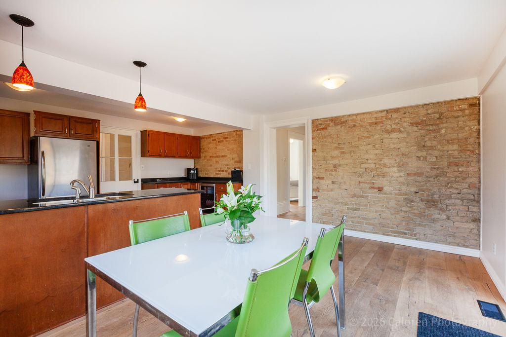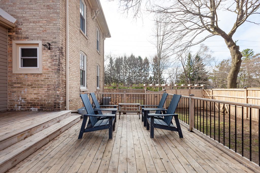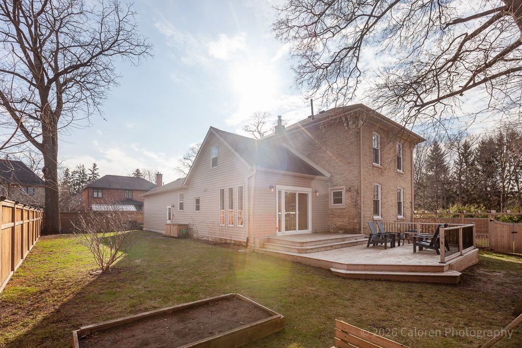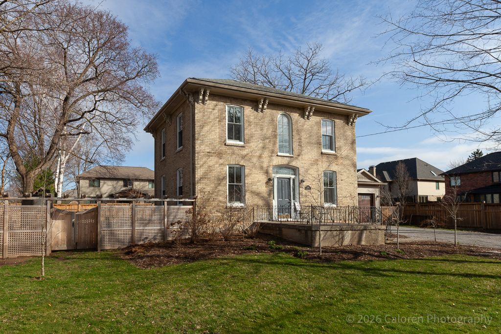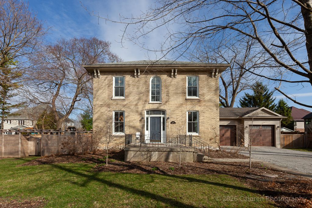 This exceptional late-1800s residence seamlessly blends historic character with thoughtful modern updates. Impeccably maintained inside and out, the home offers timeless charm coupled with everyday functionality. Featuring three bedrooms and two full bathrooms, the inviting interior showcases exquisite details throughout. A welcoming front foyer with leaded stained glass accents opens to a beautifully restored staircase boasting a handcrafted newel post and railing. Heated floors in the mudroom add comfort and convenience, while distressed plank flooring flows throughout, creating a calm, cohesive aesthetic. The living room features a custom-built wall unit with shelving and drawers, combining style and practicality. High ceilings, wide baseboards, and neutral tones accentuate the home's light-filled spaces. The kitchen and dining area highlight beautiful exposed brick walls, granite countertops, a convenient coffee bar with bar fridge, and access to a spacious multi-level deck-perfect for entertaining or quiet evenings outdoors. Upstairs, three bright bedrooms include remote-controlled blinds and a versatile bonus room ideal for a home office, play area, or cozy snug. Custom double-hung replacement windows replicate the original design, providing energy efficiency without sacrificing charm. Distinctive light fixtures complete the interior's refined ambiance. Outdoors, the fully fenced yard features a new fence with pergola-style gate and landscaped grounds designed for relaxation and gatherings. Rare for a home of this era, the oversized double garage offers exceptional storage and parking. Ideally located near hyde park and the oxford shopping district, with remark and starbucks moments away, the property is steps from the golf course, thames river trails, and local sports fields-an outstanding combination of heritage, comfort, and convenience.