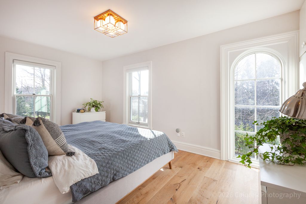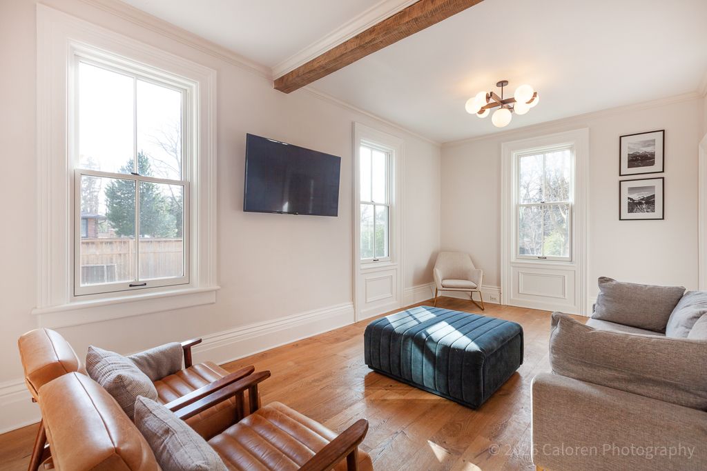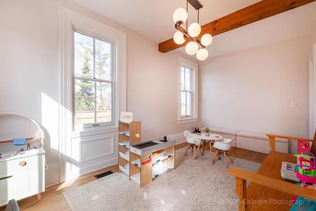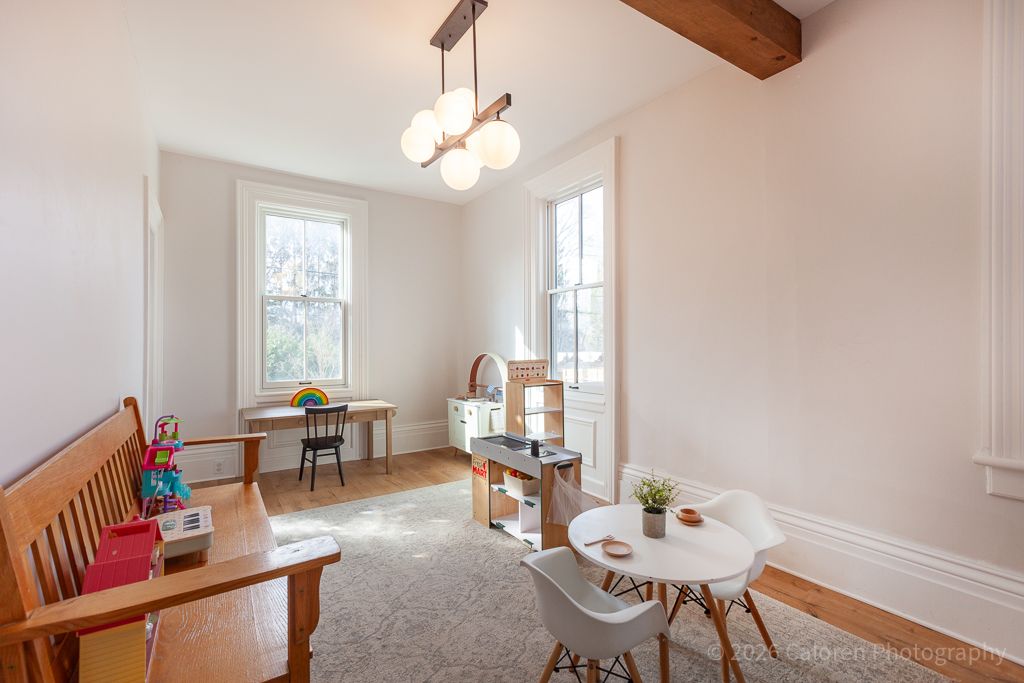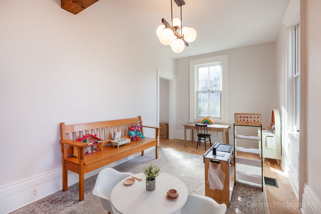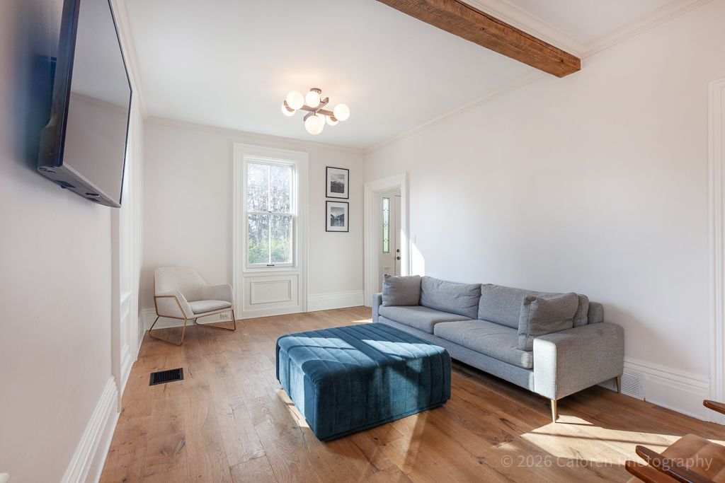 This exceptional late-1800s residence seamlessly blends historic character with thoughtful modern updates. Impeccably maintained inside and out, the home offers timeless charm coupled with everyday functionality. Featuring three bedrooms and two full bathrooms, the inviting interior showcases exquisite details throughout. A welcoming front foyer with leaded stained glass accents opens to a beautifully restored staircase boasting a handcrafted newel post and railing. Heated floors in the mudroom add comfort and convenience, while distressed plank flooring flows throughout, creating a calm, cohesive aesthetic. The living room features a custom-built wall unit with shelving and drawers, combining style and practicality. High ceilings, wide baseboards, and neutral tones accentuate the home's light-filled spaces. The kitchen and dining area highlight beautiful exposed brick walls, granite countertops, a convenient coffee bar with bar fridge, and access to a spacious multi-level deck-perfect for entertaining or quiet evenings outdoors. Upstairs, three bright bedrooms include remote-controlled blinds and a versatile bonus room ideal for a home office, play area, or cozy snug. Custom double-hung replacement windows replicate the original design, providing energy efficiency without sacrificing charm. Distinctive light fixtures complete the interior's refined ambiance. Outdoors, the fully fenced yard features a new fence with pergola-style gate and landscaped grounds designed for relaxation and gatherings. Rare for a home of this era, the oversized double garage offers exceptional storage and parking. Ideally located near hyde park and the oxford shopping district, with remark and starbucks moments away, the property is steps from the golf course, thames river trails, and local sports fields-an outstanding combination of heritage, comfort, and convenience.
