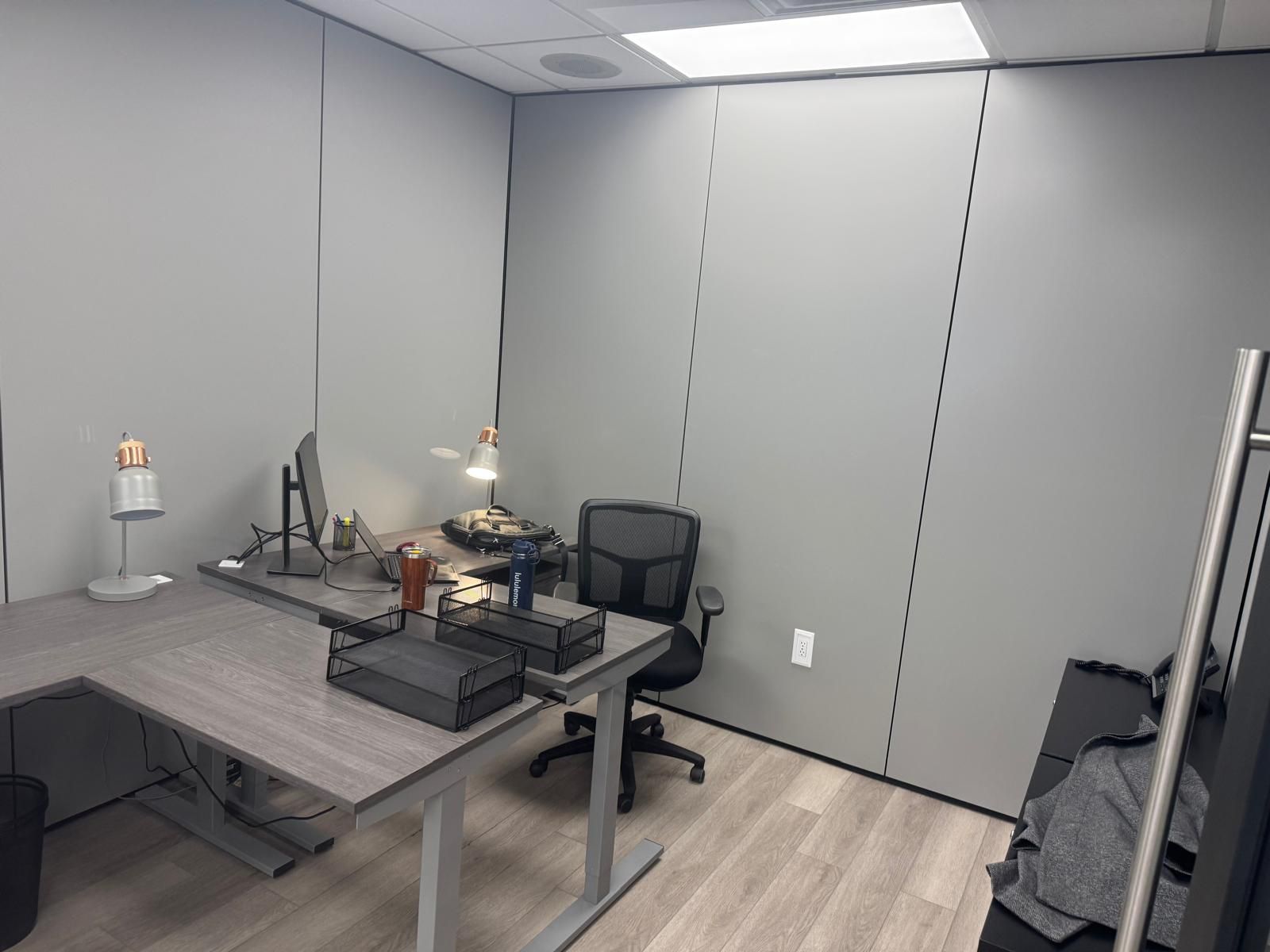 Executive interior office available in a well-maintained, state-of-the-art building. This private, fully furnished workspace offers a quiet and professional environment ideal for focused productivity and client meetings. Rent includes high-speed internet, ensuring seamless day-to-day operations. Tenants enjoy access to shared amenities such as a boardroom and kitchenette, providing added convenience for meetings and daily use. A fully equipped gym, sauna, and on-site barbershop are available for an additional fee, enhancing the building's exceptional offerings. The property features elevator access and is designed with accessibility in mind, ensuring ease of entry for all tenants and visitors. With ample parking and convenient access to public transit, this office is ideal for professionals seeking comfort, convenience, and functionality.