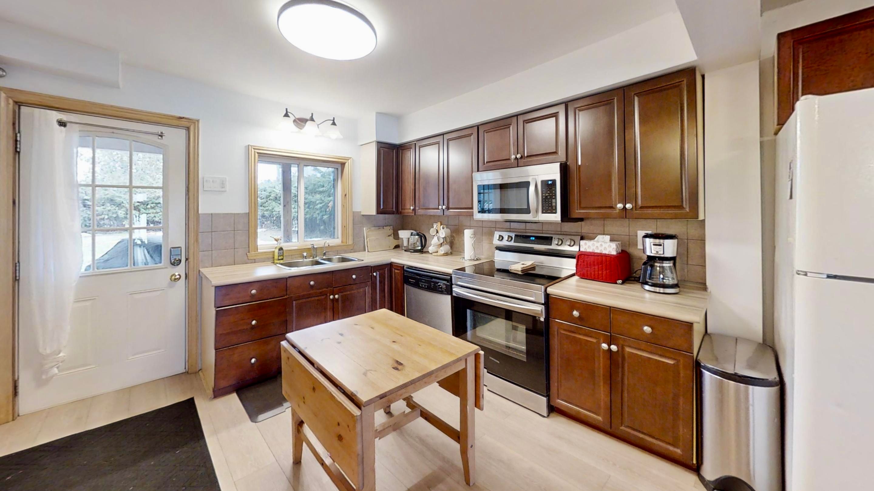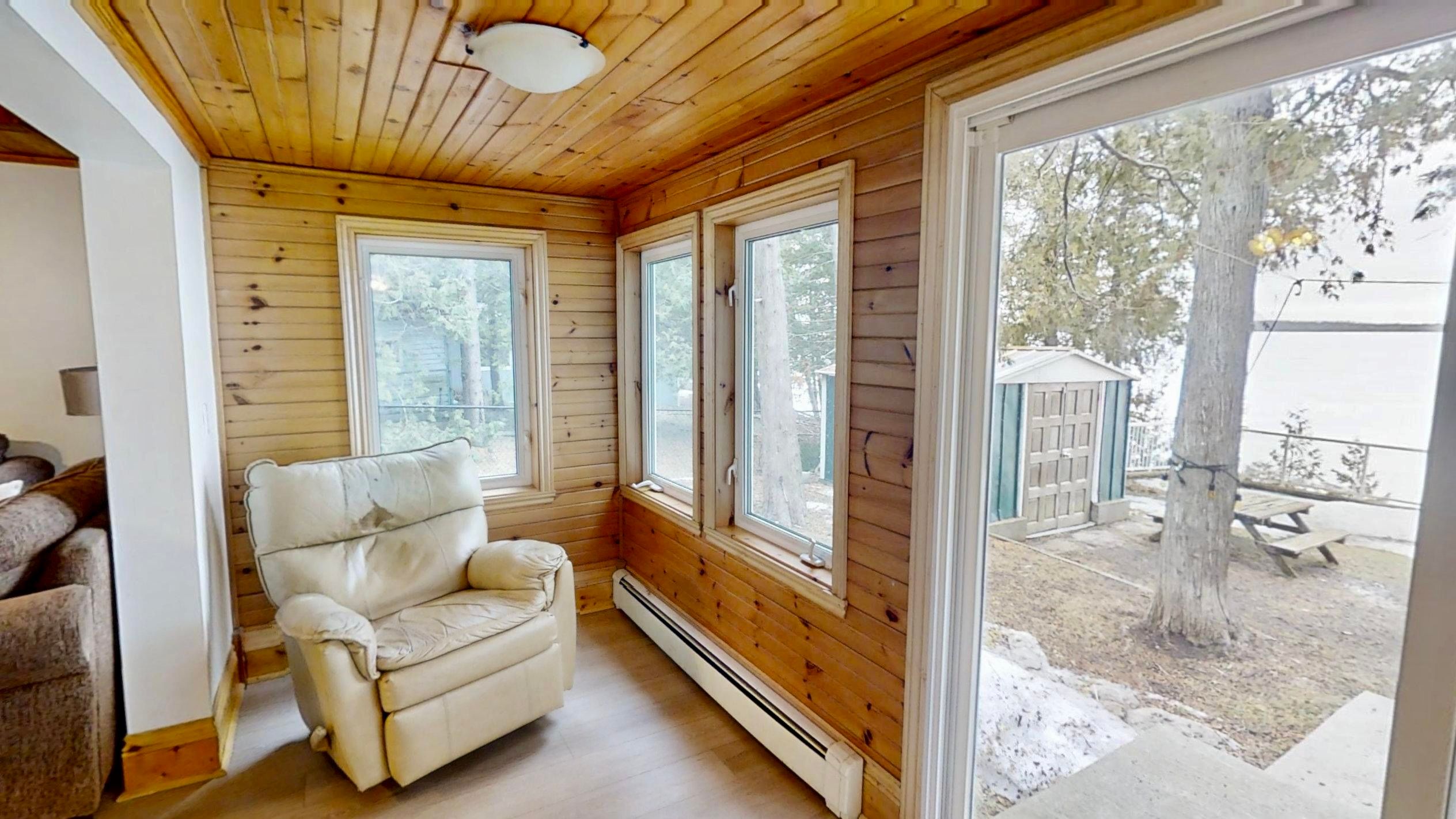 Welcome to 1136 sylvan glan road. A gorgeous 4-season lakefront home on lake dalrymple in the peaceful community of brechin, perfect for year-round living or a family getaway. This home features 2 main-floor bedrooms a full bathroom, along with a convenient 2-piece powder room and 2 additional bedrooms upstairs. The open-concept kitchen, dining, and family room is bright and inviting, featuring hardwood and laminate flooring, built-in shelving, and a cozy wood stove. Step into the sunroom addition and enjoy direct water views and breathtaking sunsets, or head outside to your private floating dock with direct access, perfect for boating or relaxing by the water. The lot is level and partially treed, with a fenced backyard offering privacy and security for family fun (the trampoline and old paddle boat can remain if desired). Recent upgrades include laminate flooring (2 years ago), an electric tankless boiler with radiators (2023), newer stacking laundry, and updated electrical panels, including a generator-ready panel. The roof (asphalt shingles) was replaced in 2012, and the property includes a drilled well, water softener, a peroxide system, and a ro drinking water system. Residents also enjoy access to a private park featuring a sandy beach, volleyball court, boat launch, playground, and gated entry, available for an annual fee of $10. Located on a quiet, dead-end street, you're just minutes from hwy 12, brechin amenities, golf, and casino rama, combining peaceful lakeside living with convenience. This home is move-in ready, with furniture negotiable if you prefer a turnkey purchase. Don't miss your chance to own a slice of lakefront paradise with all the comforts of a modern family home!