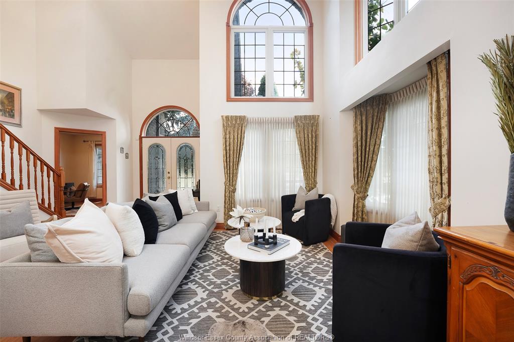 • Welcoming main floor with tall ceilings and large windows for natural light.