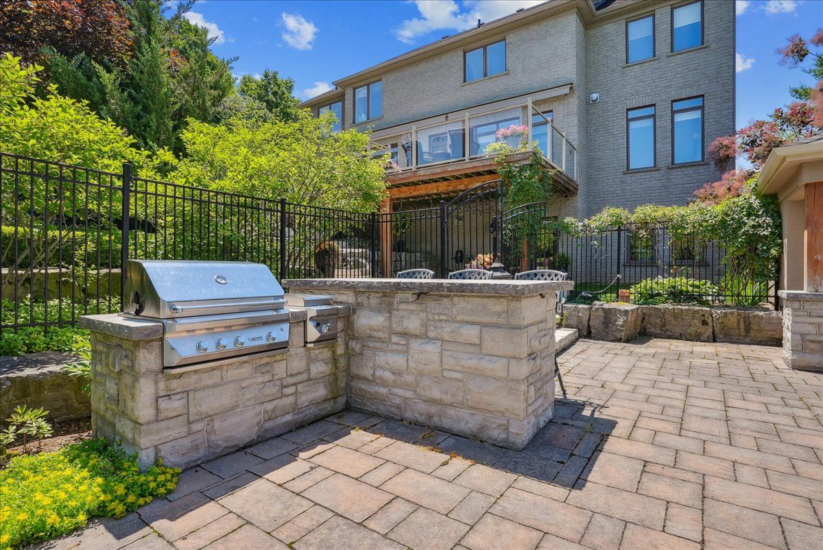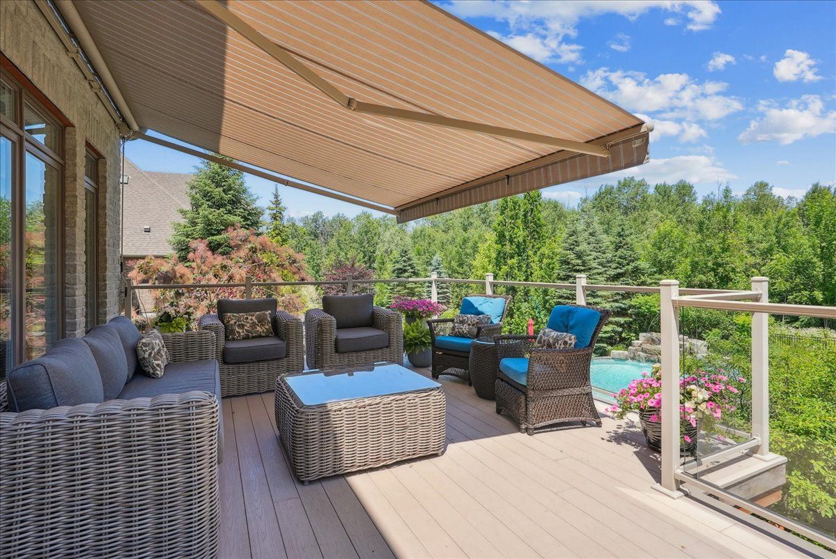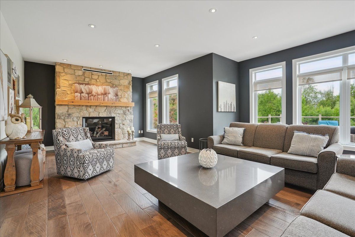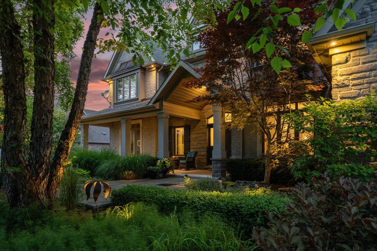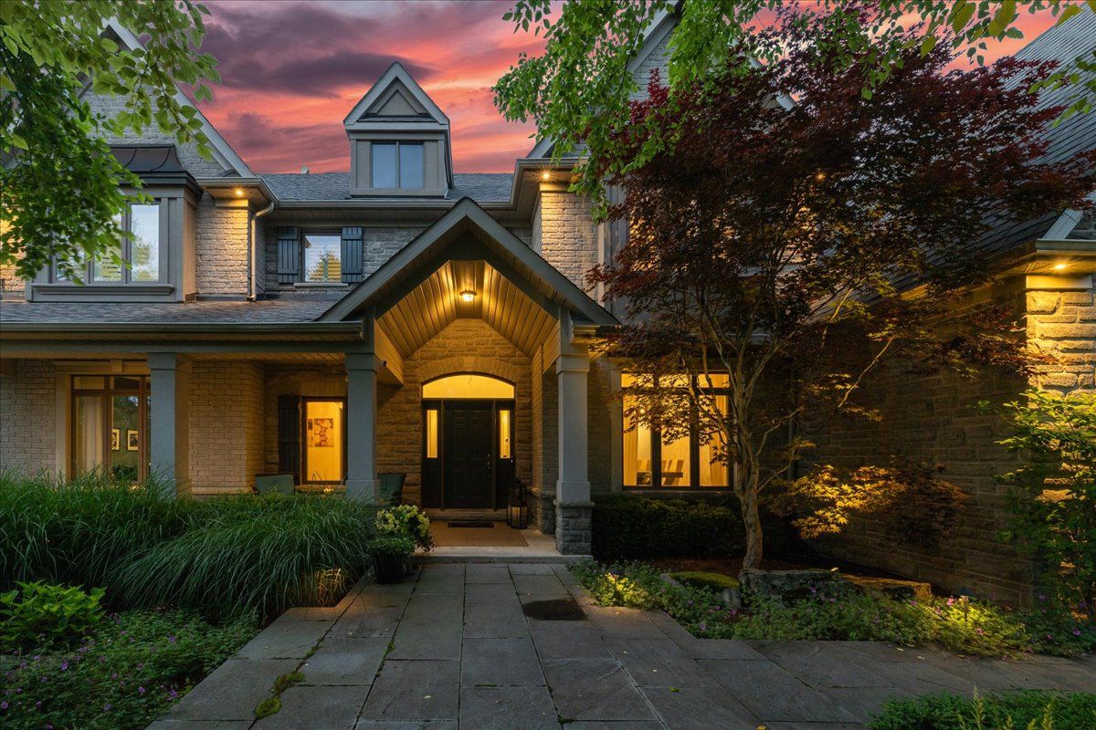Beautifully designed executive home offering over 5,700 sq ft of finished living space on a quiet court, with exceptional privacy and stunning treed views. The spacious main floor features an entertainers gourmet kitchen with full fridge and freezer, 48-inch range, hidden coffee bar, and an oversized island with seating for six+. The kitchen opens to the eat-in area and living room with hand picked stone fireplace, plus a formal dining room that seats 16+. Main-floor laundry and a convenient three-car garage with large driveway parking for approximately 8 cars. Upstairs you'll find five generous bedrooms and three full baths, including a luxurious primary suite with oversized ensuite, two walk-in closets, and a private exercise room. A second bedroom with its own ensuite is perfect for guests or family. The finished walk-out basement is designed for entertaining, with a full bar, pool table area, dance room, bathroom, and plenty of storage. Step outside to your backyard oasis featuring a sparkling pool with waterfall, diving rock, and fountains. Enjoy both a dedicated pool house and a separate outdoor living room with stone fireplace and cedar shake roof. Host gatherings at the built-in poolside barbecue and bar area, all surrounded by mature trees for ultimate seclusion. Natural gas is at the property rare for country living!