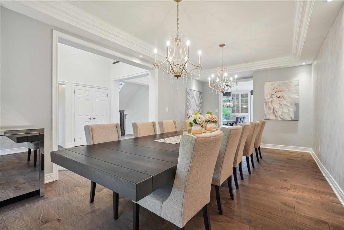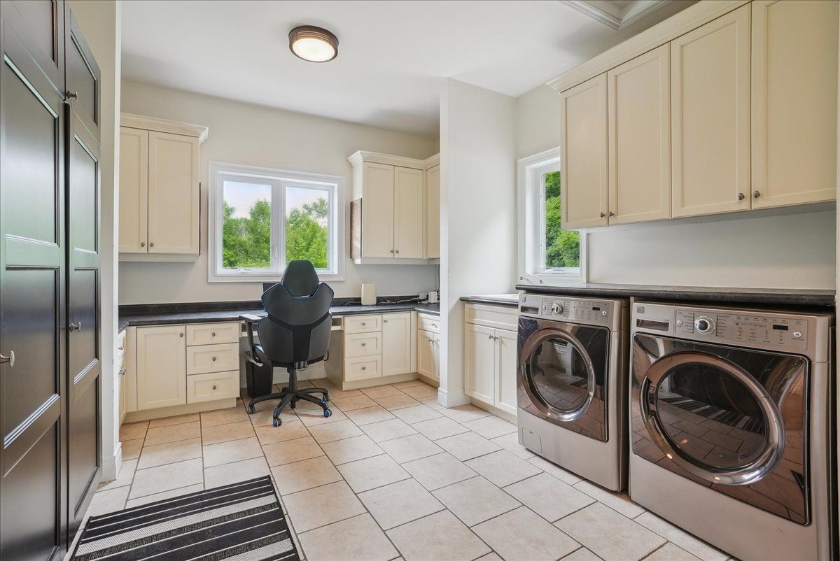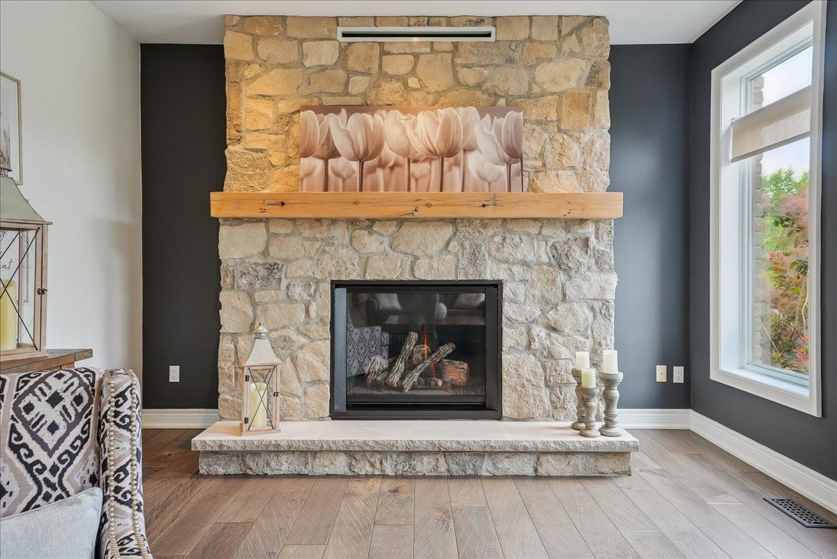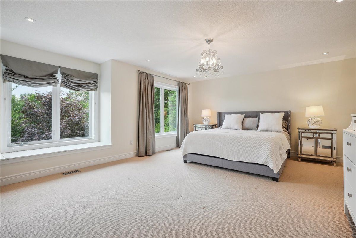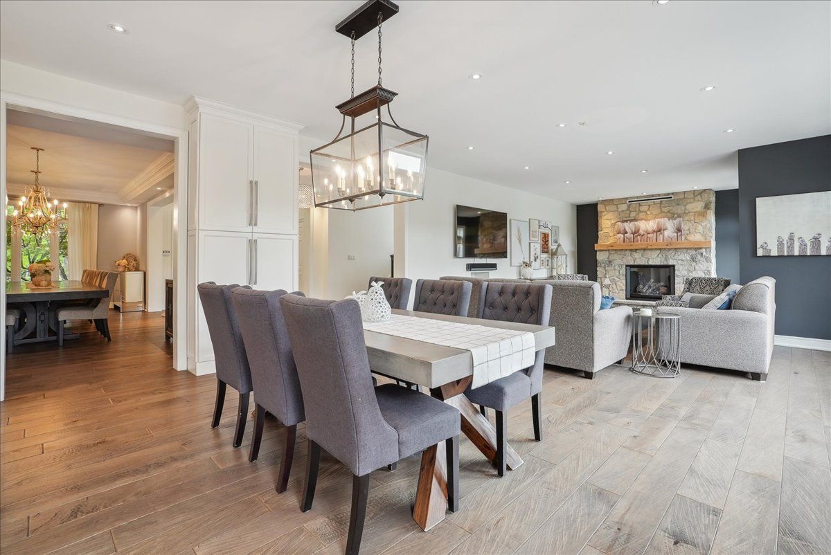 Beautifully designed executive home offering over 5,700 sq ft of finished living space on a quiet court, with exceptional privacy and stunning treed views. The spacious main floor features an entertainers gourmet kitchen with full fridge and freezer, 48-inch range, hidden coffee bar, and an oversized island with seating for six+. The kitchen opens to the eat-in area and living room with hand picked stone fireplace, plus a formal dining room that seats 16+. Main-floor laundry and a convenient three-car garage with large driveway parking for approximately 8 cars. Upstairs you'll find five generous bedrooms and three full baths, including a luxurious primary suite with oversized ensuite, two walk-in closets, and a private exercise room. A second bedroom with its own ensuite is perfect for guests or family. The finished walk-out basement is designed for entertaining, with a full bar, pool table area, dance room, bathroom, and plenty of storage. Step outside to your backyard oasis featuring a sparkling pool with waterfall, diving rock, and fountains. Enjoy both a dedicated pool house and a separate outdoor living room with stone fireplace and cedar shake roof. Host gatherings at the built-in poolside barbecue and bar area, all surrounded by mature trees for ultimate seclusion. Natural gas is at the property rare for country living!