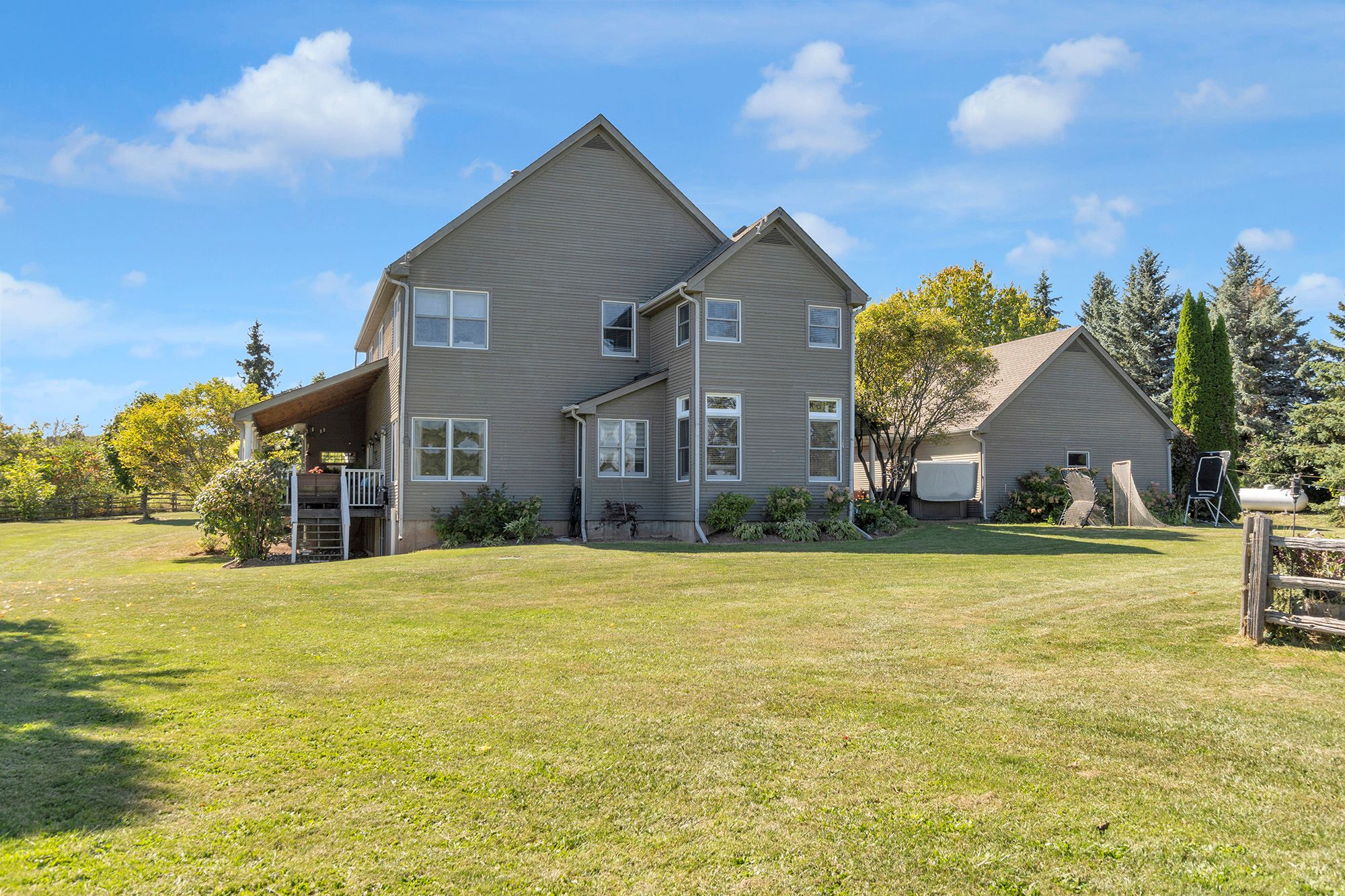 Turnkey country living & work opportunity on 46. 4 acreswelcome to a rare property blending rural charm, modern comfort, and endless potential on 46. 4 acres of rolling hills with sweeping country views minutes from golf, skiing, and hiking trails. This exceptional offering features a beautifully maintained and renovated 6-bedroom, 5-bathroom country home with over 4,500 sq ft above grade, plus a partially finished basement with separate entrance, totaling over 6,000 sq ft. Custom finishes, unique trim, and thoughtful design add character and timeless charm. Highlights include: main floor primary suite with private walkout to a covered porch, grand living room with soaring ceilings and fieldstone fireplace fully renovated kitchen with open-concept design and outdoor walkout private study/office, perfect for remote work spacious mudroom with washer/dryer, dog shower, and pantry. Upper level with 4 bedrooms, guest suite, home office/hobby room, and 2 bathrooms. Basement with rec room, gym, full bathroom, and workshop, adaptable as a separate apartment. Vegetable garden with cedar fencing, raised beds, and storage shed 8-person hot tub, heat pump hvac with propane backup, water softener, and reverse osmosis. High-speed internet (line of sight) and fibre optic at the road. Detached 2-car garage with covered breezeway. Rustic agritourism investment: 8 acres of high-density apple orchard and valley views surround a 6,000 sq ft straw bale building, offering a warm, inviting atmosphere for wood-fired pizzas, country cooking, and community gatherings. Fully equipped with a professional kitchen, cidery equipment, fermentation cellar, cold storage, tractors, and a 2,200 sq ft outdoor shed with forklift... Pls see attachment of detailed property description as well as attached comprehensive list of improvements to the property by year.