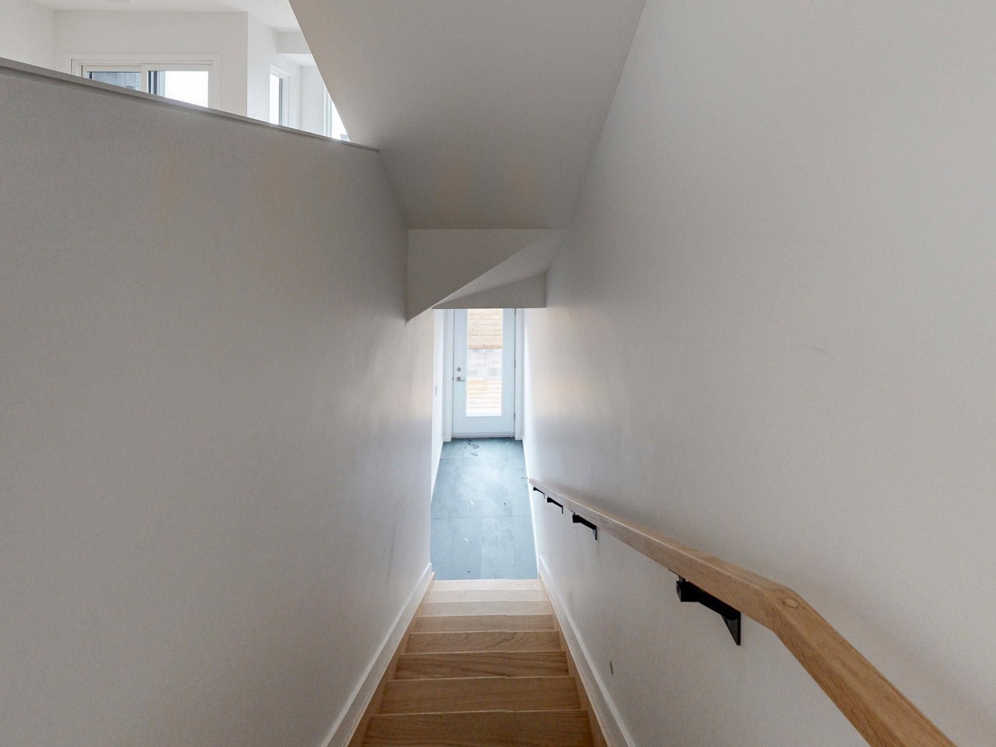 Brand-new penthouse-style living in dovercourt village. This beautifully designed, newly built two-level suite spans the rear of the 2nd and 3rd floors, offering exceptional space, light, and comfort. Featuring two large bedrooms and 1. 5 baths, the open-concept layout centers around an oversized kitchen with stainless-steel appliances, a waterfall quartz countertop, and a generous island perfect for entertaining. Hardwood floors flow throughout, complemented by in-unit laundry, ample storage, and efficient electric heat pumps for year-round comfort. Enjoy two private balconies and an expansive rooftop deck showcasing breathtaking views of downtown toronto's skyline. Quiet and private, yet steps from geary avenue's acclaimed galleries, restaurants, breweries, and cafés-modern luxury in the city's creative corridor.