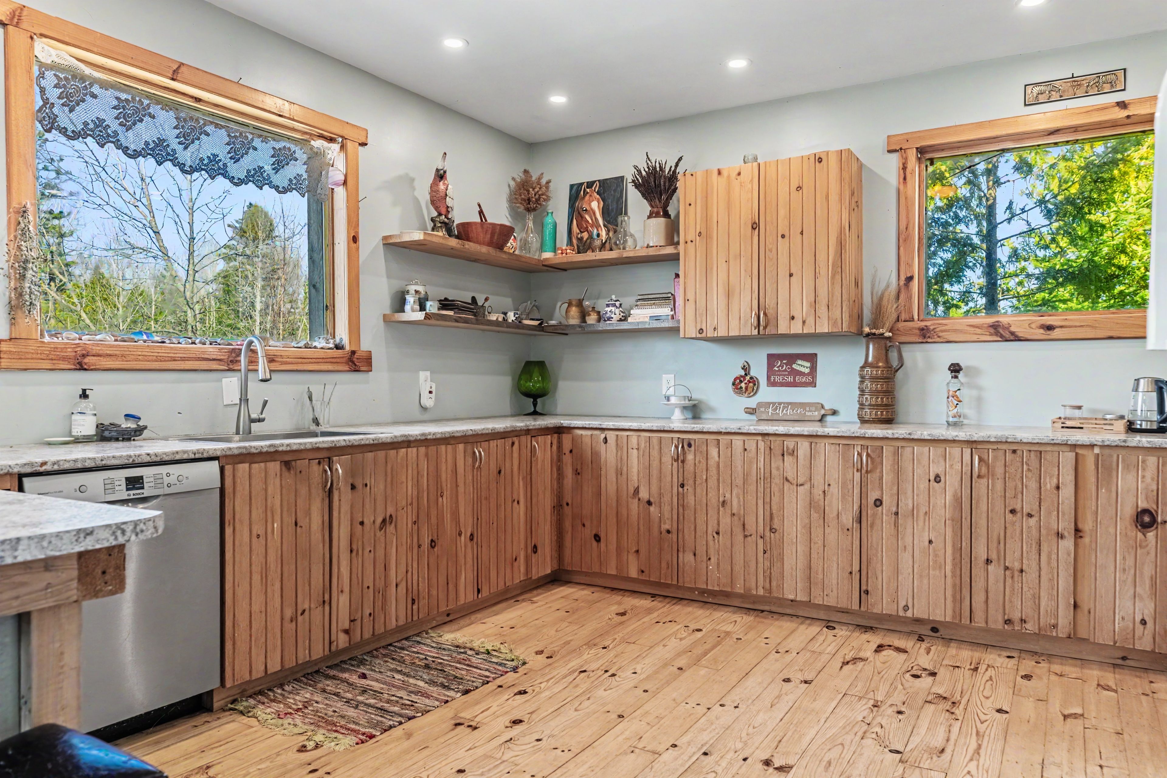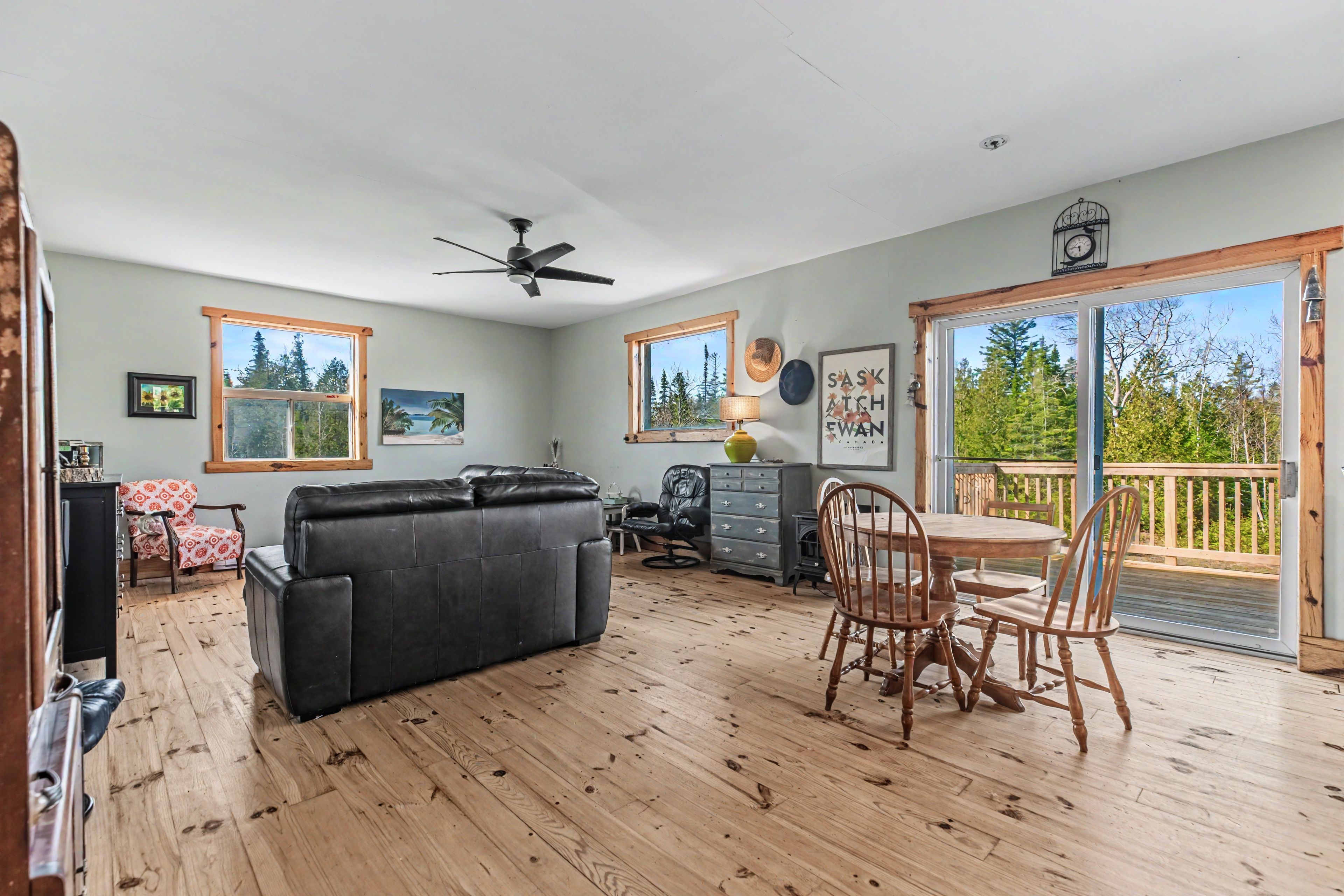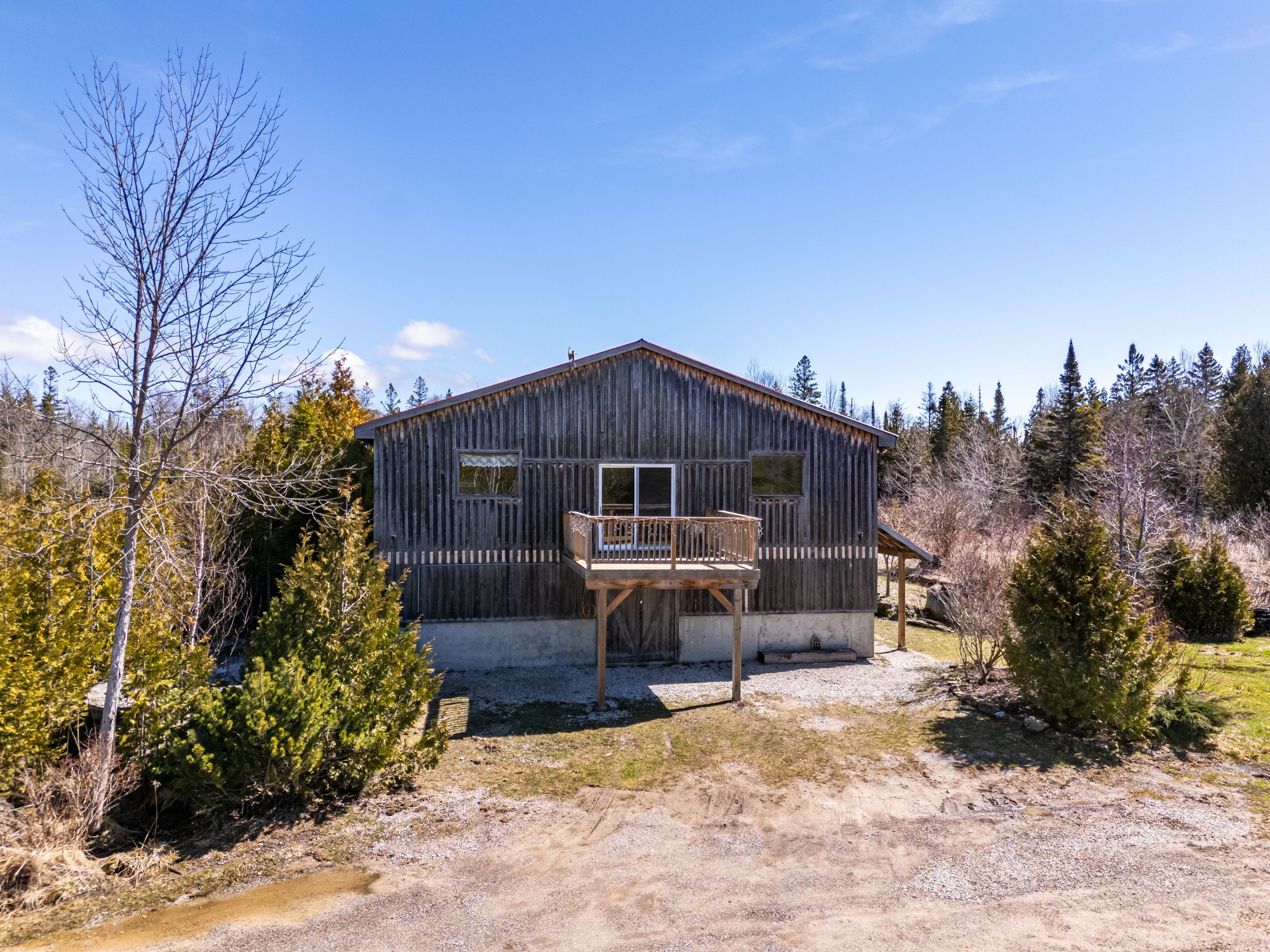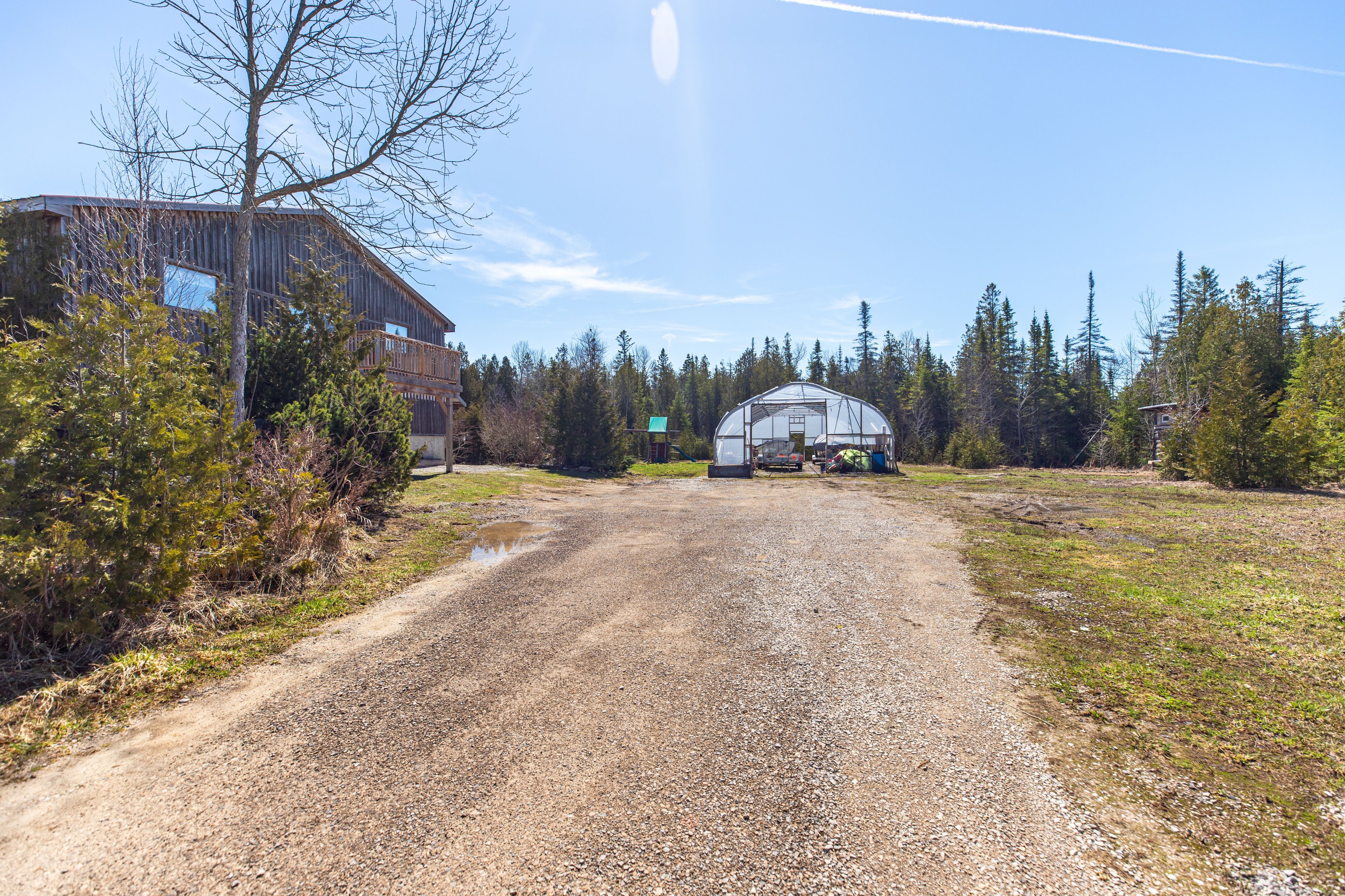 Set on a picturesque 16-acre parcel, this versatile property offers the perfect blend of residential comfort and functional workspace, with public access to the shores of lake huron directly across the road and over 1,200 acres of conservation land with atv trails right at your back door for year-round recreation. Surrounded by nature, the area is known for an abundance of whitetail deer, adding to the property's appeal for outdoor enthusiasts and those seeking a peaceful rural lifestyle. A well-built gravel driveway constructed to road specifications leads to the impressive 40' x 80' (3,200 sq. Ft./floor) two-storey building, featuring a spacious upper-level apartment of approximately 1,600 sq. Ft. Designed for comfortable four-season living, complete with two large bedrooms, a bright kitchen, open-concept living and dining area, 4-piece bathroom, and in-suite laundry. The exterior showcases timeless cedar board and batten siding with a durable red steel roof, complemented by a new 12' x 12' wood deck to take in the peaceful surroundings. The lower-level shop is equally well-equipped with a 10' x 12' insulated steel door, 2-piece bathroom, and robust 400-amp electrical service with a transfer switch for generator backup. A 24' x 54' greenhouse frame adds further potential, making this an exceptional opportunity for those seeking space, privacy, and endless possibilities for work and play.