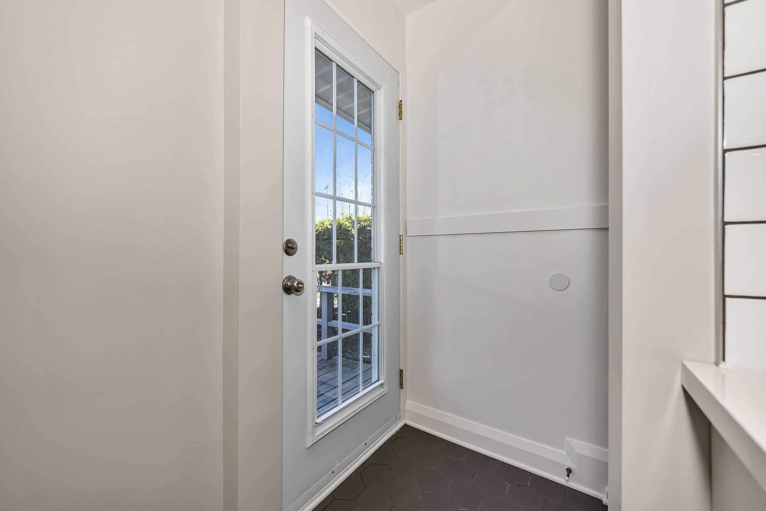 • Private backyard with wooded lot, offering seclusion and tranquility.