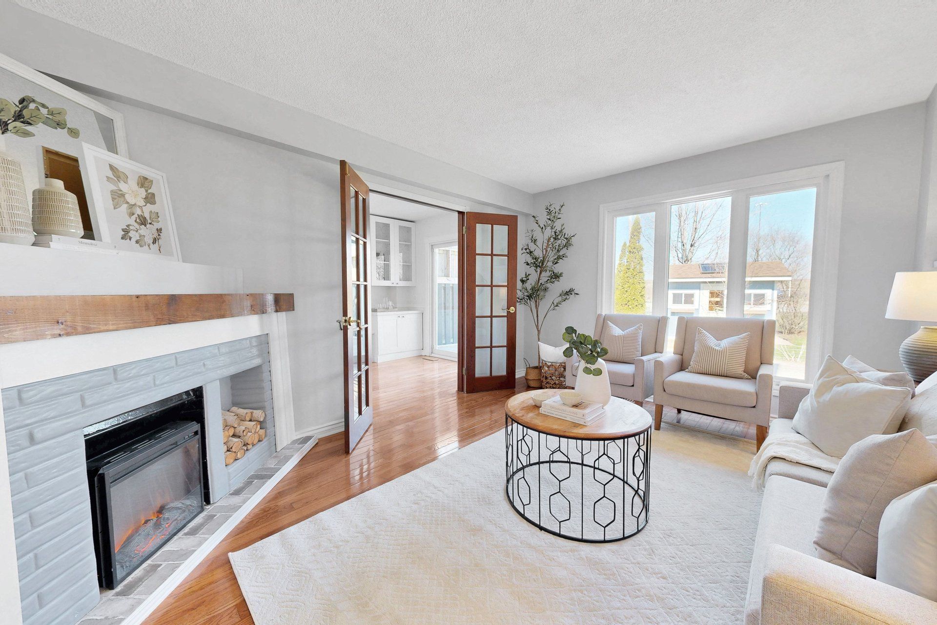 • Bright living room with a cozy fireplace for cooler evenings.