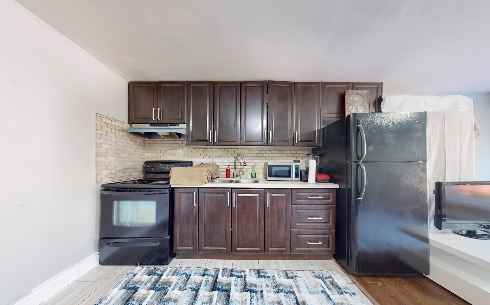 • Modern kitchen features granite countertops and stainless steel appliances.