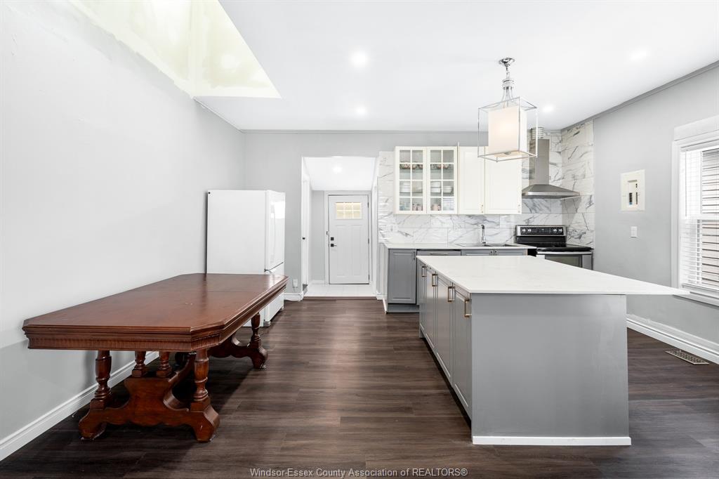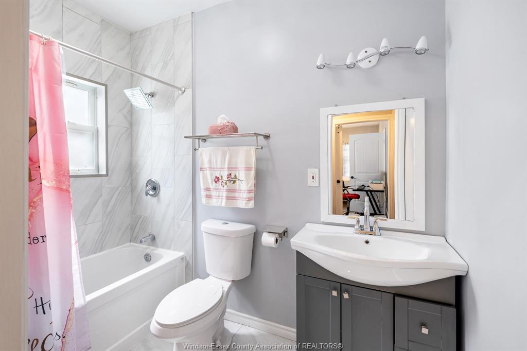 A stylishly renovated 2-bedroom, 2-bathroom bungalow on a quiet street. This home blends modern finishes with comfort, showcasing 9ft ceilings, new flooring, and an oversized eat-in kitchen with quartz countertops and a large island. The primary suite features a beautifully remodelled ensuite paired with a spacious walk-in closet. This house has a main floor laundry unit while upstairs, a partially finished attic offers a generous bonus room-perfect for a third bedroom, home office, or playroom. Step outside to a private backyard with no rear neighbours, ideal for relaxing or entertaining. Exterior siding is asbestos. Close to restaurants, shopping, and all amenities.