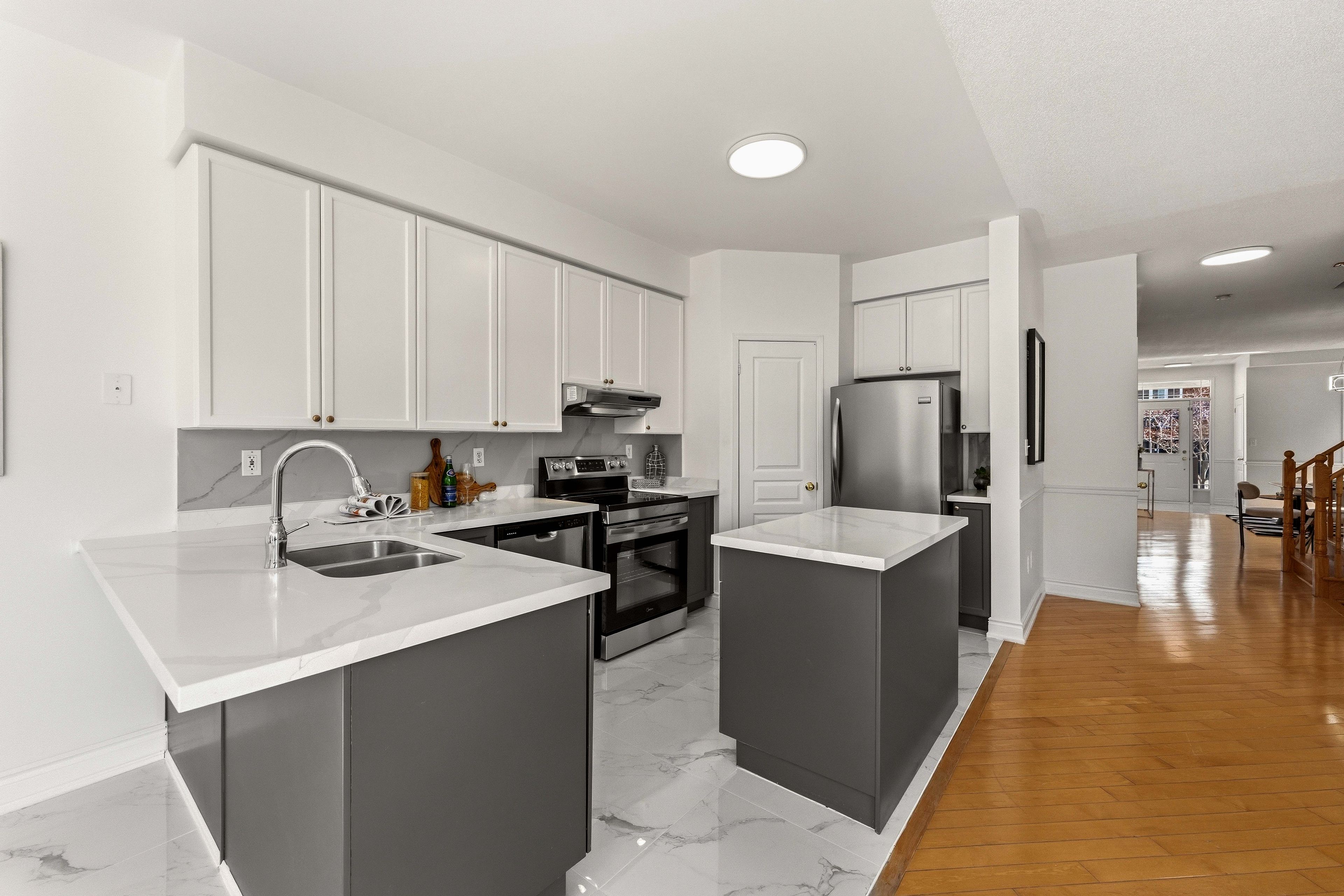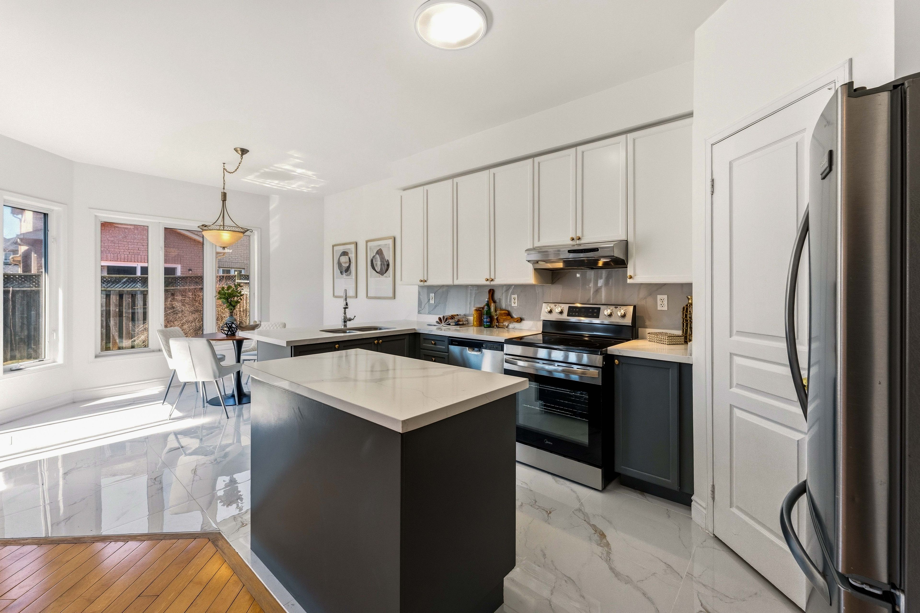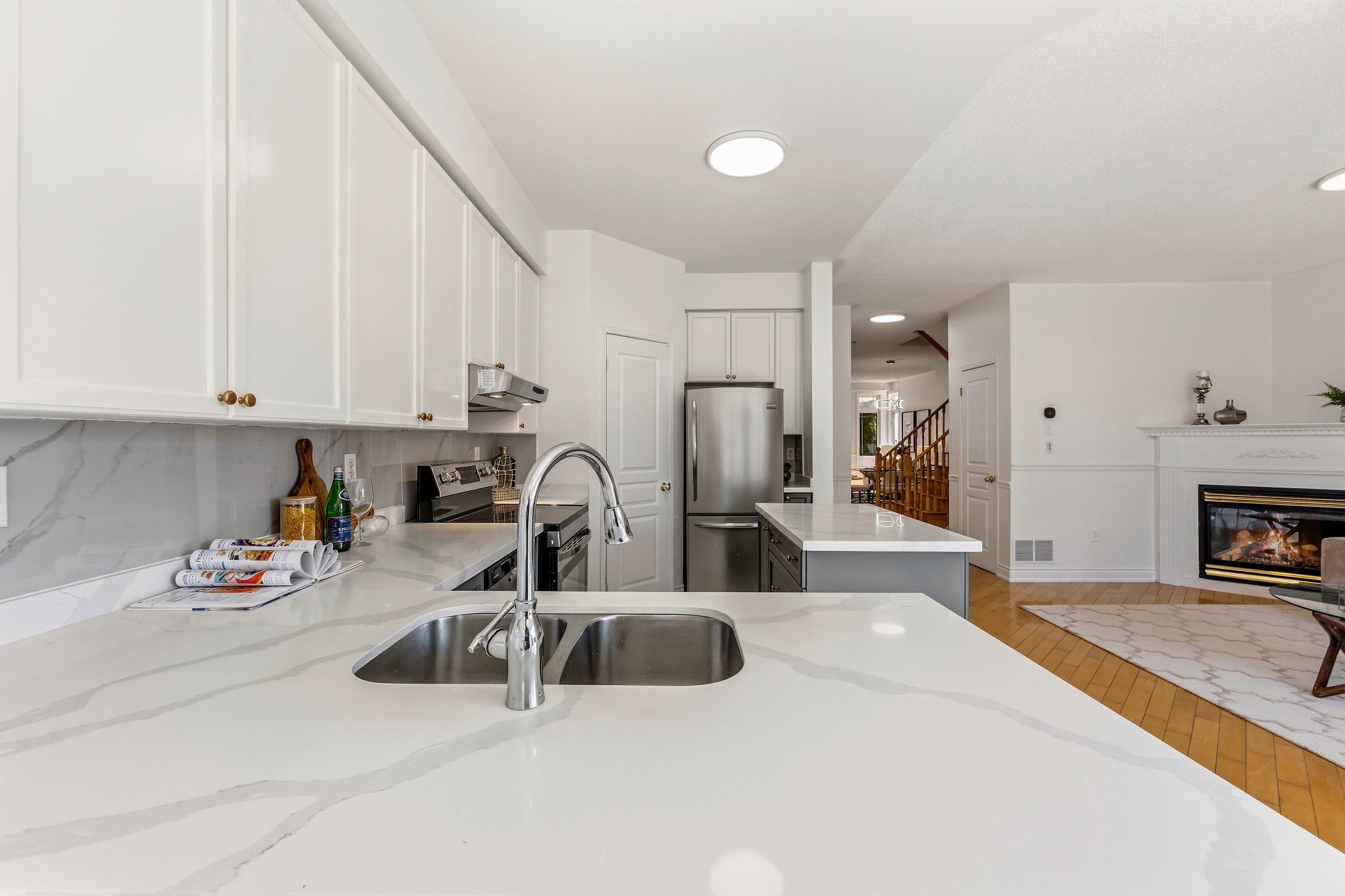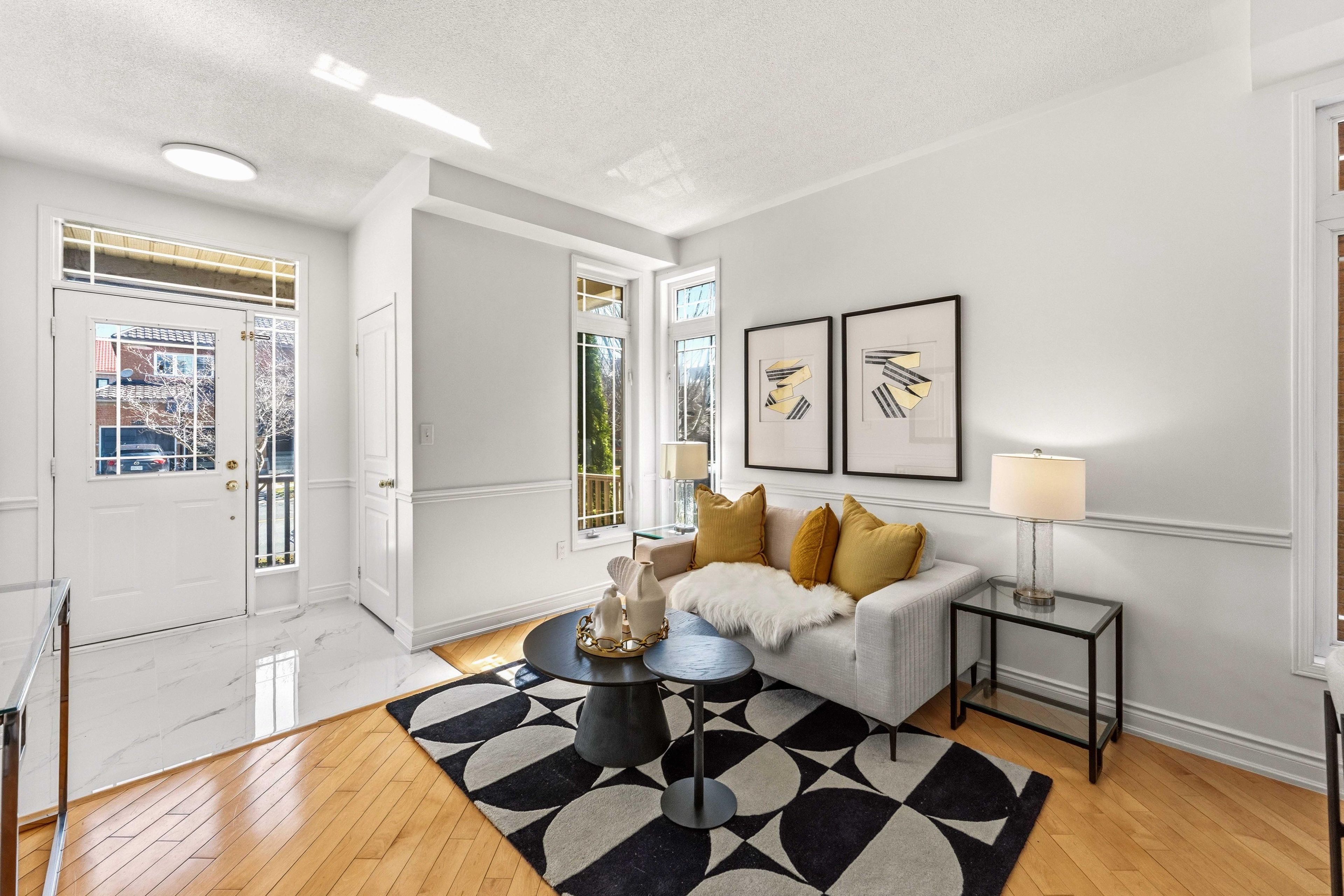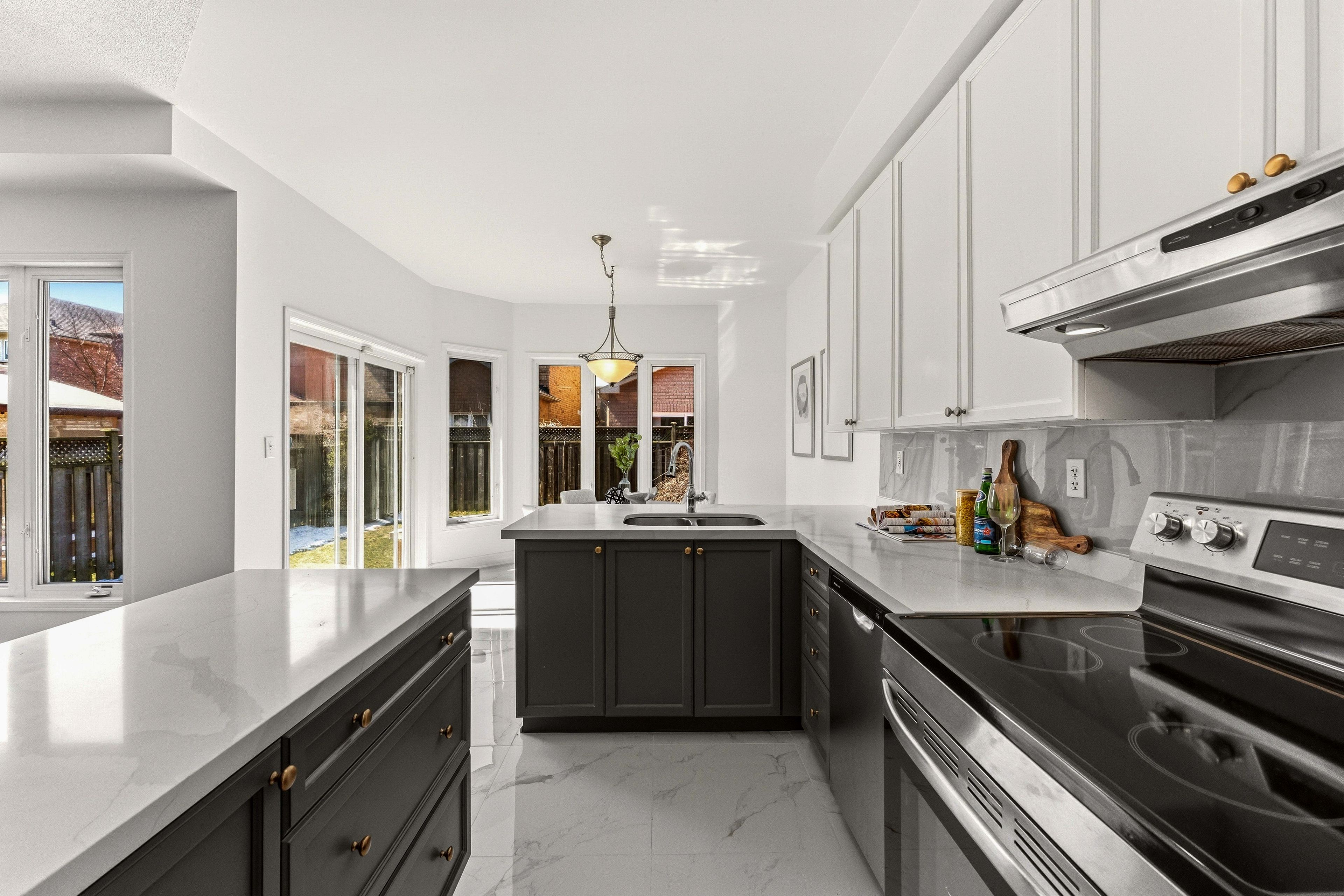 • Bright open-concept main floor with 9-ft ceilings and large windows.