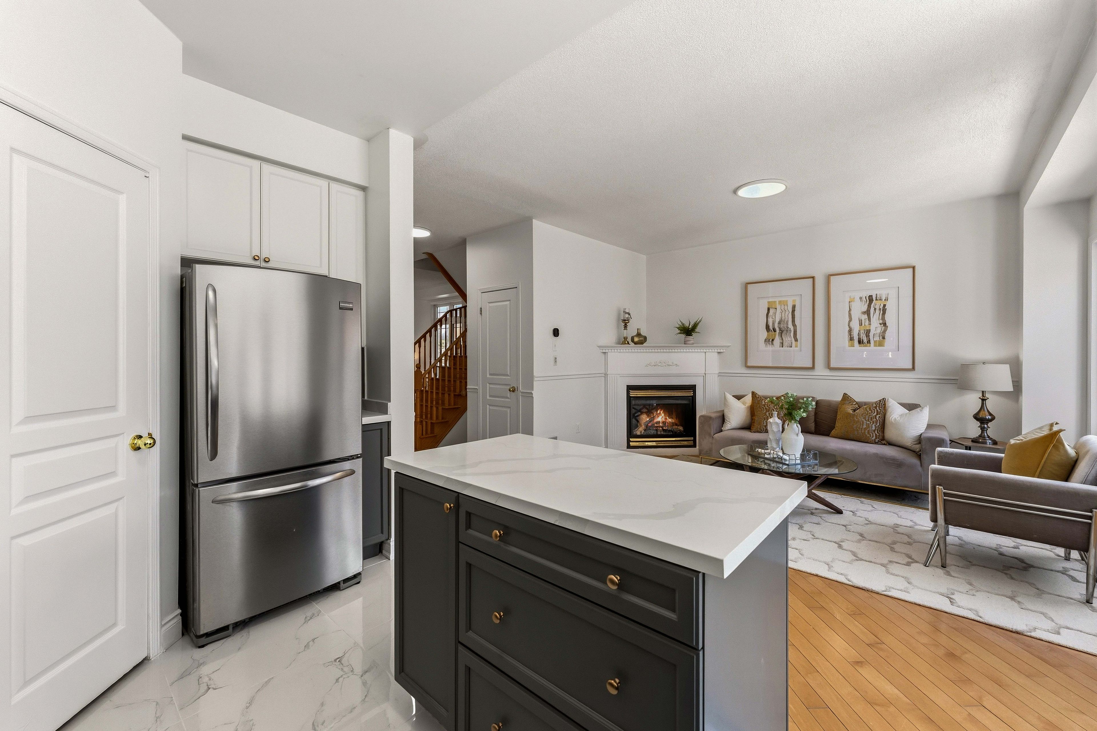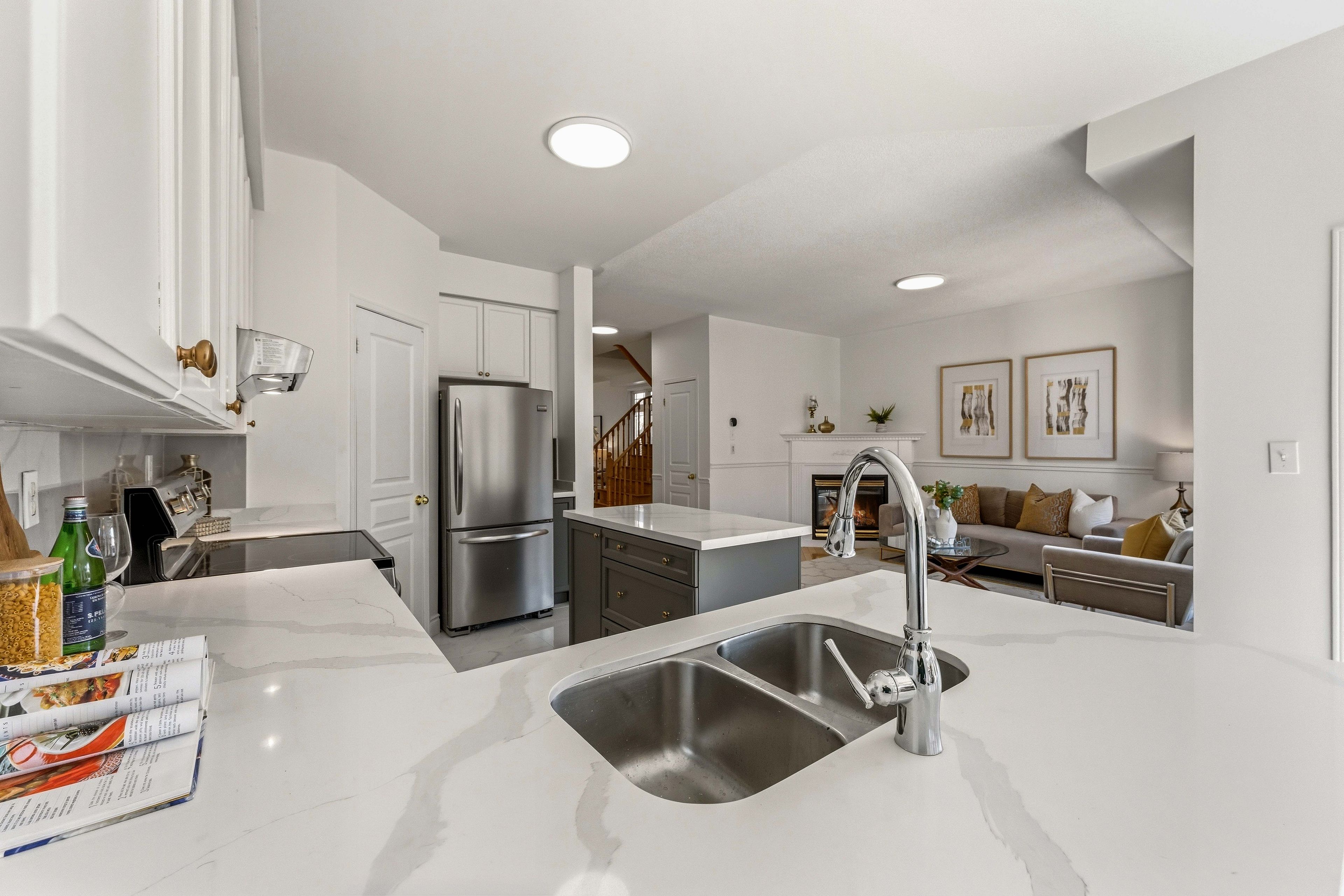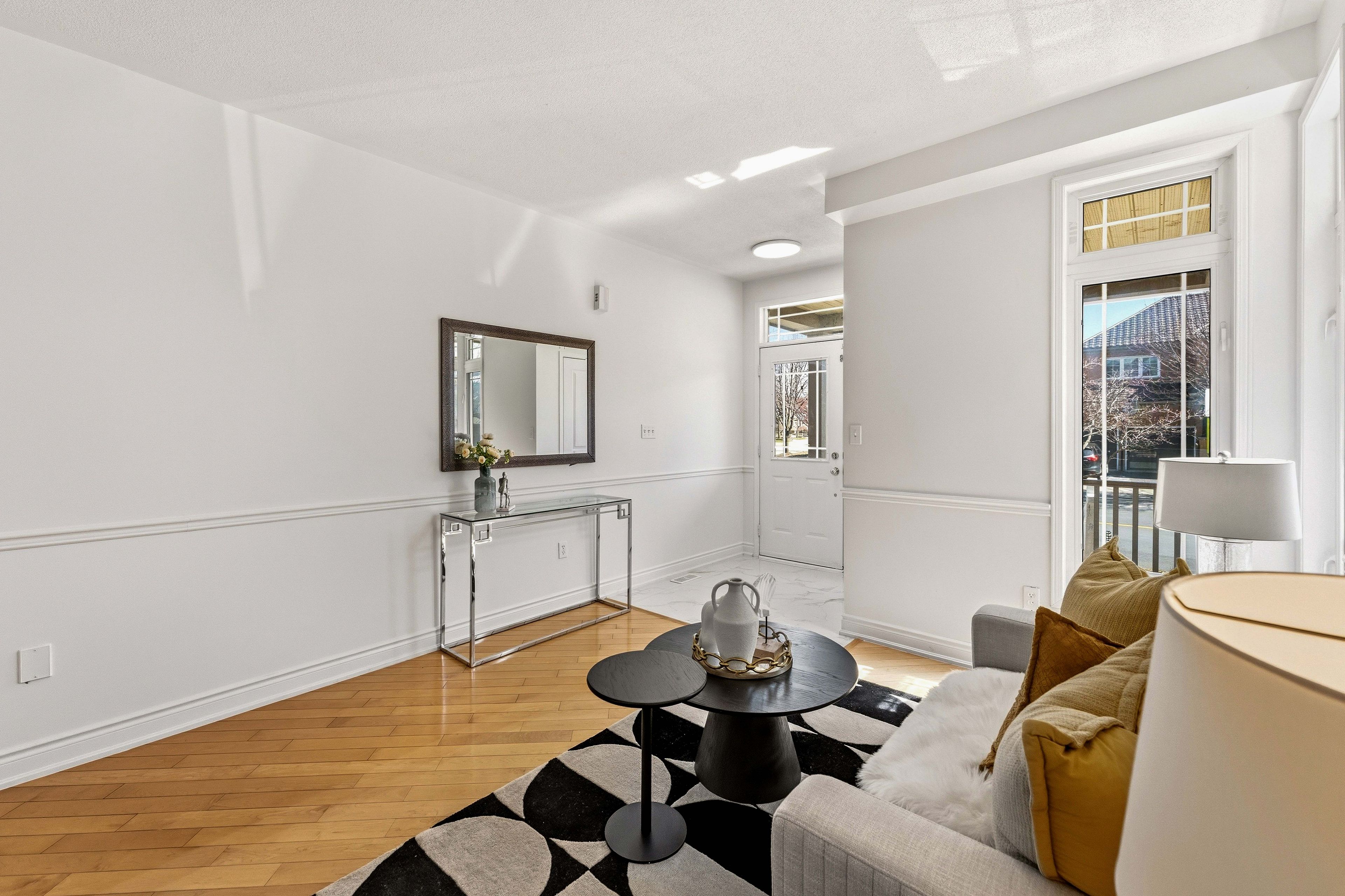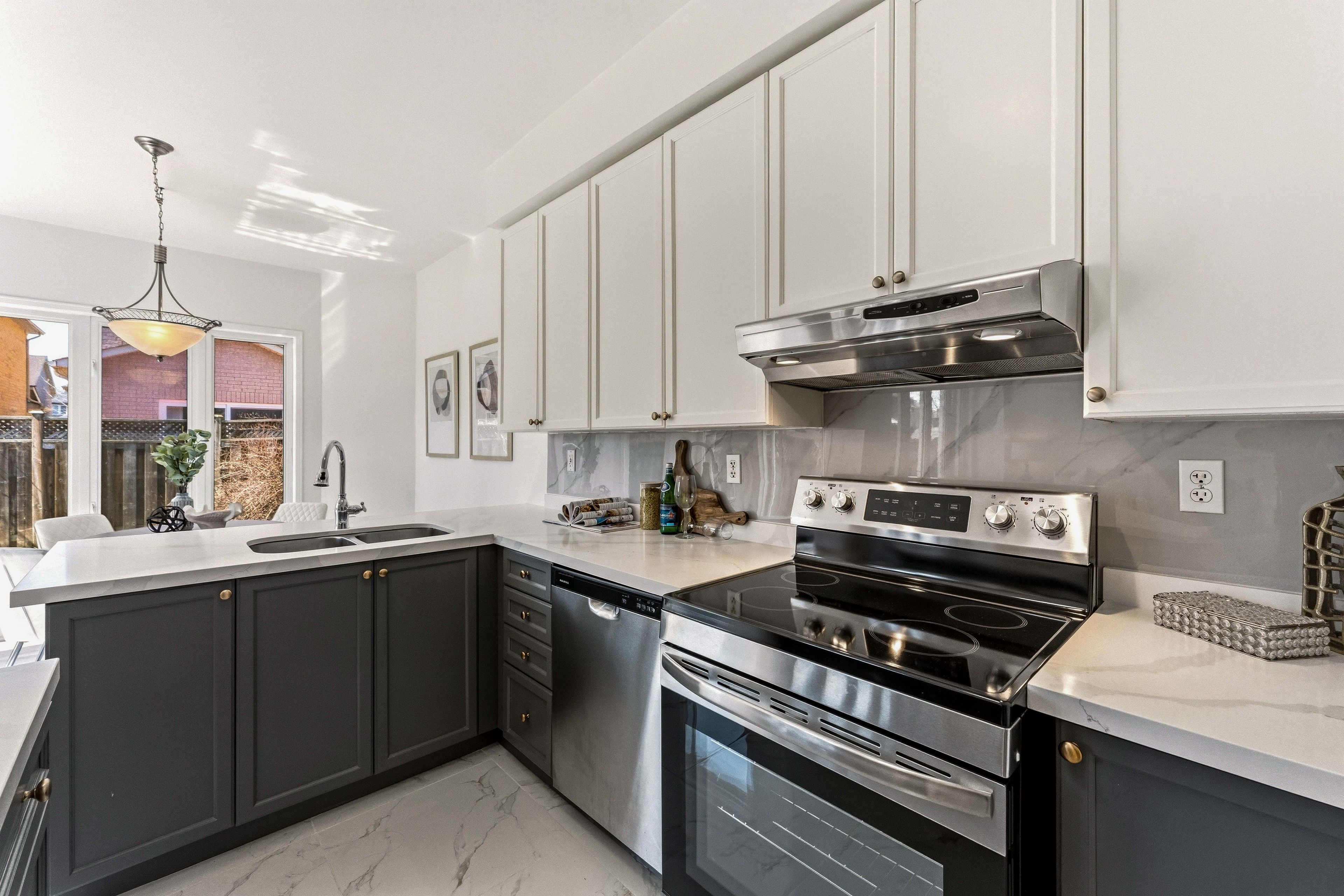 • Bright open-concept main floor with 9-ft ceilings and large windows.