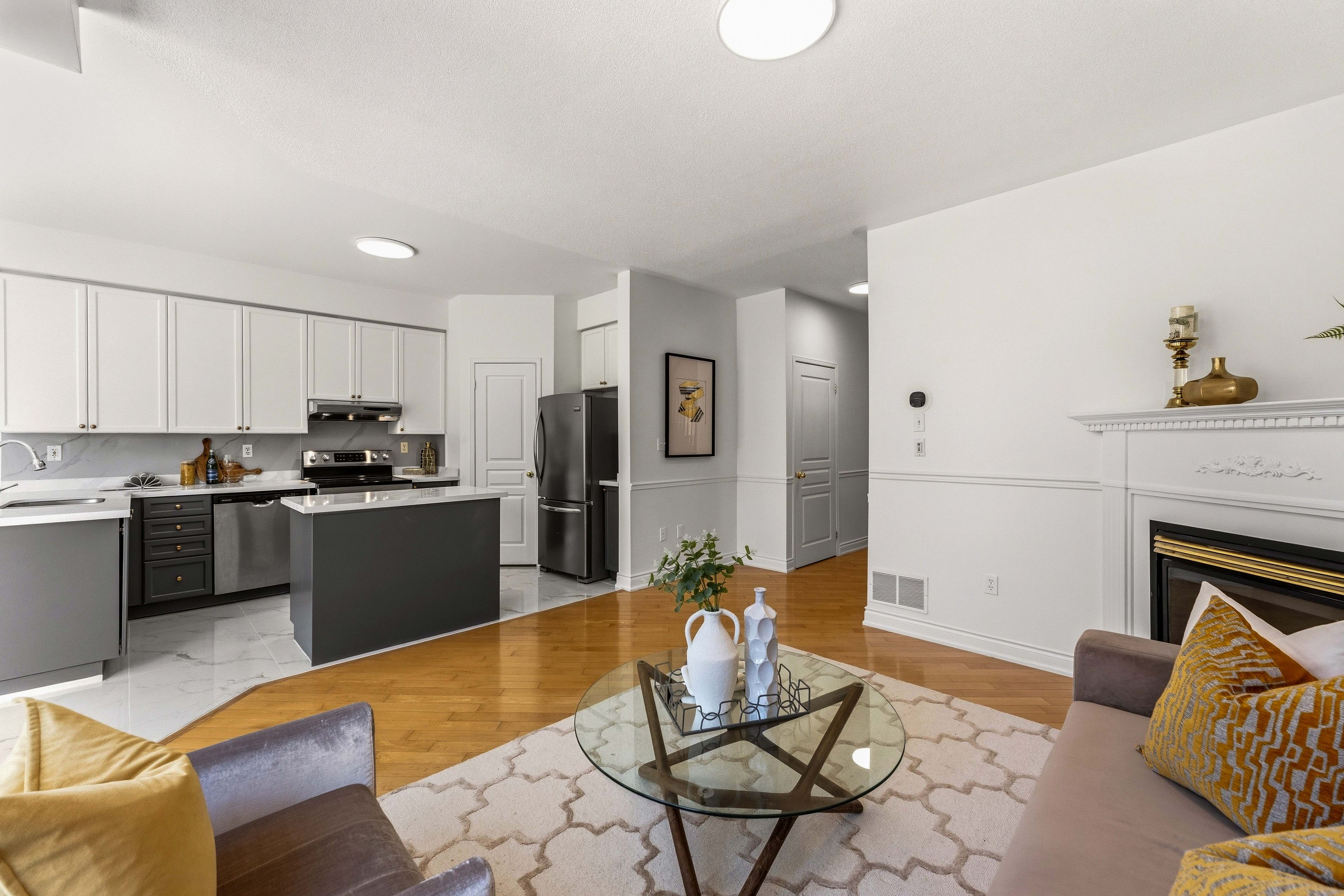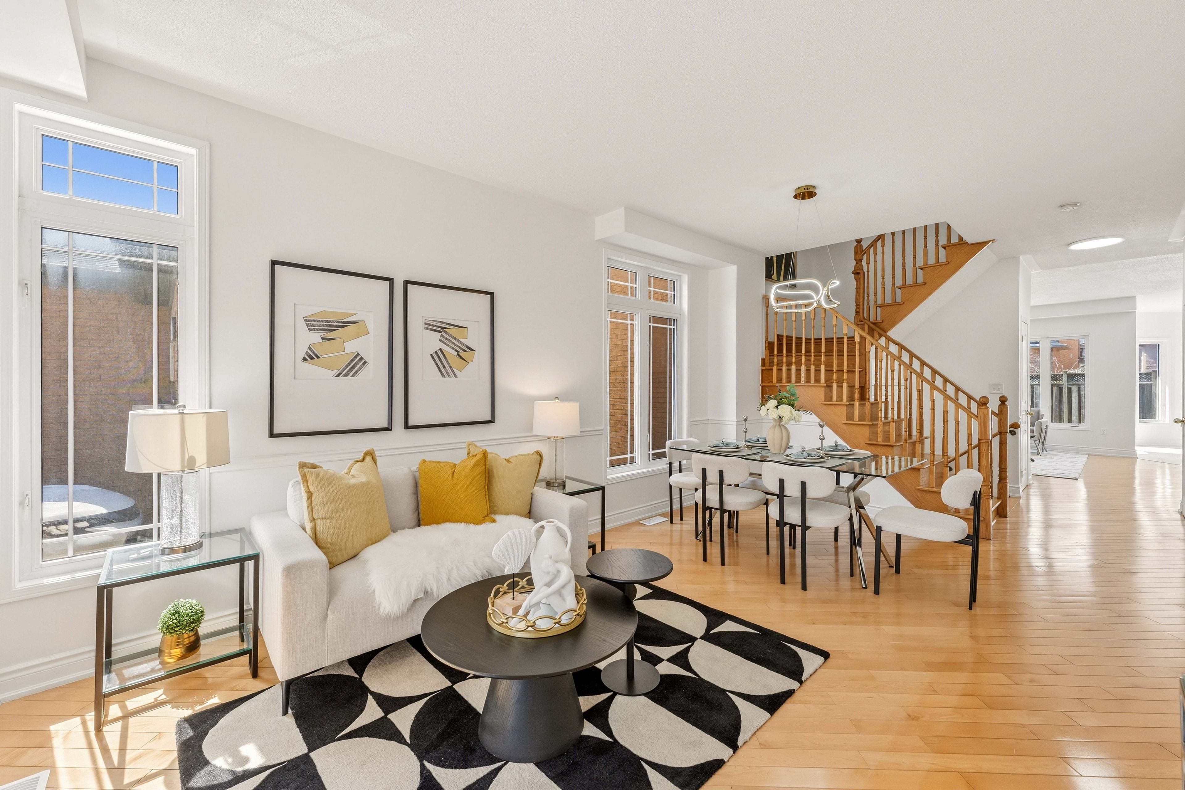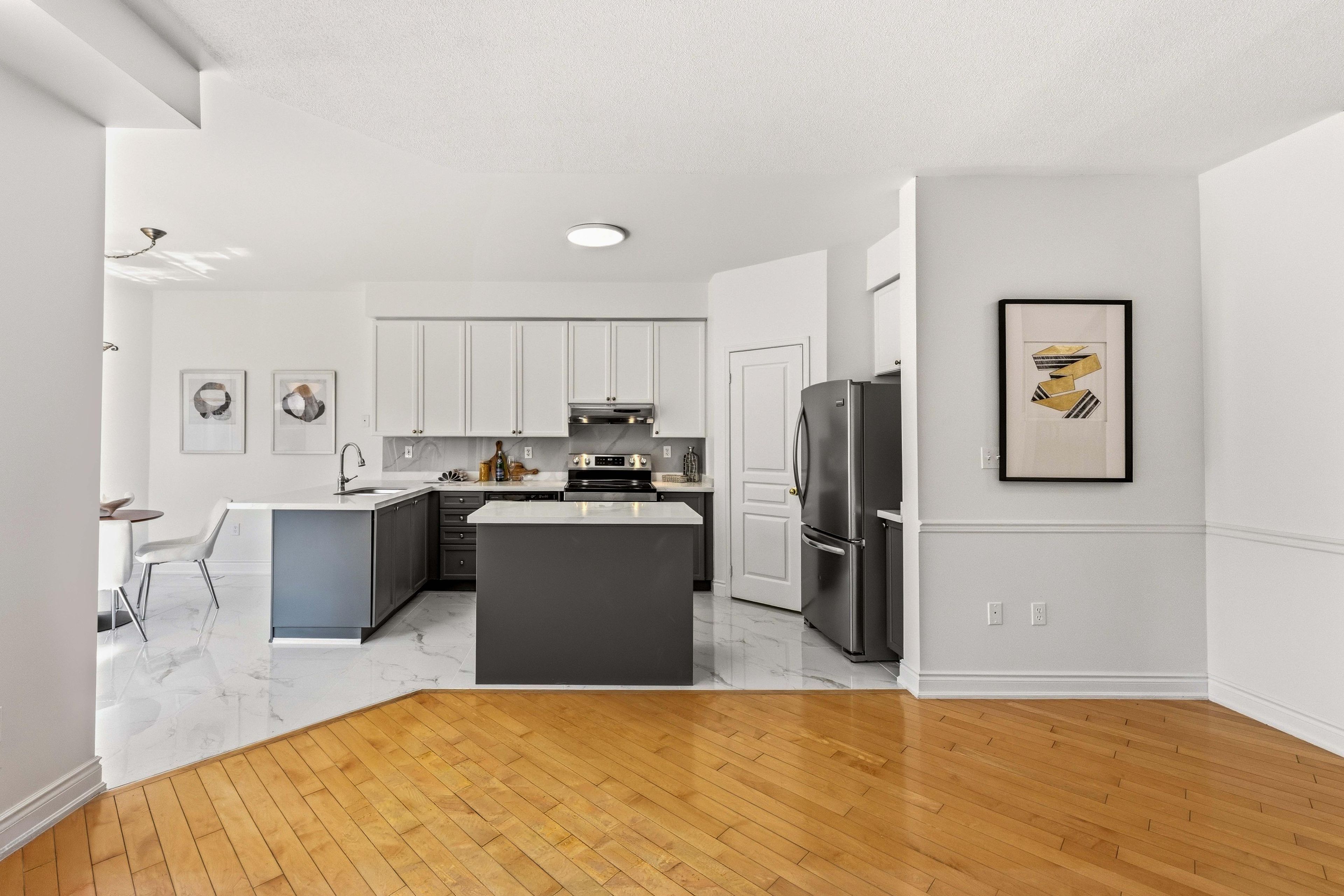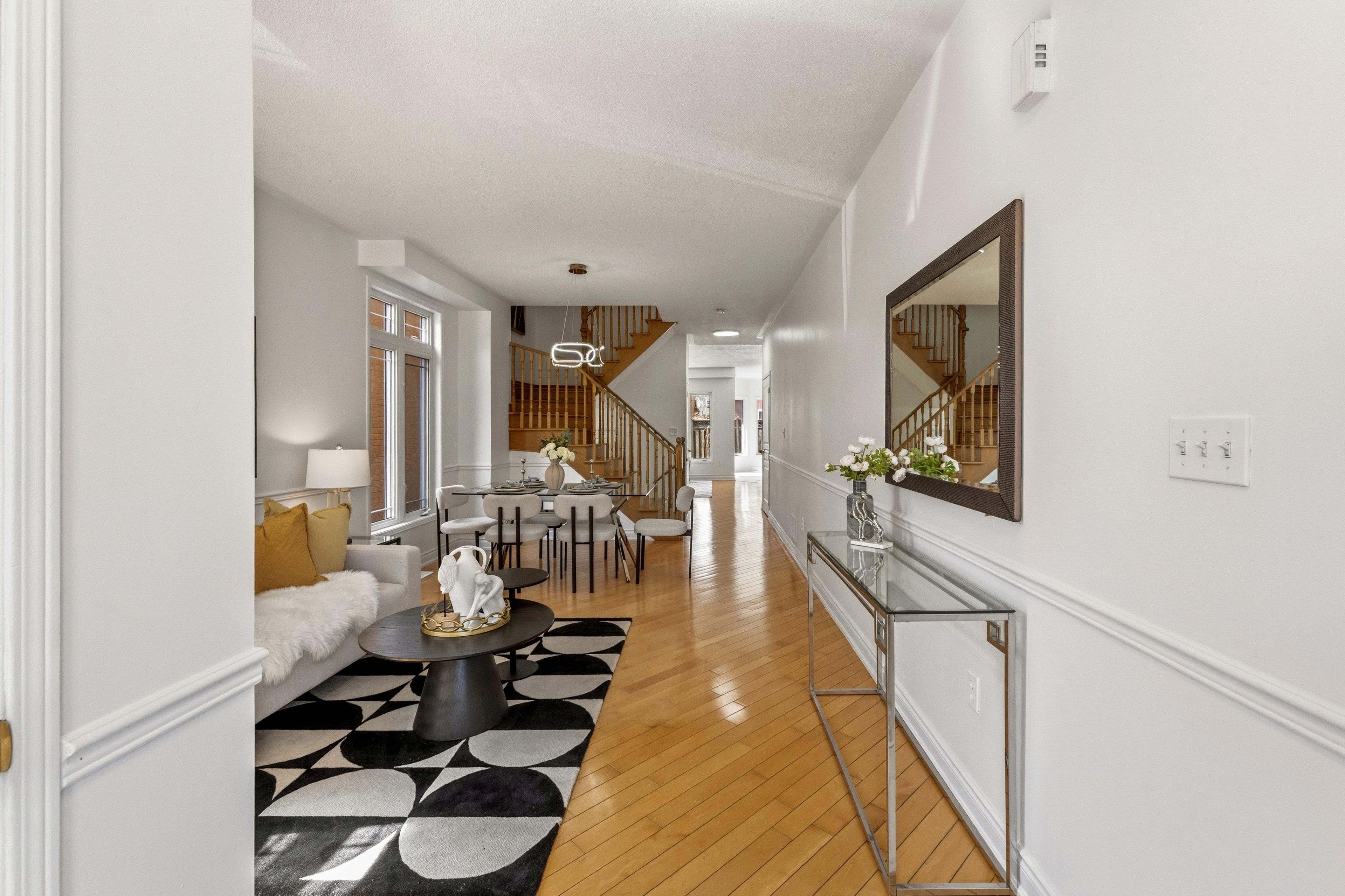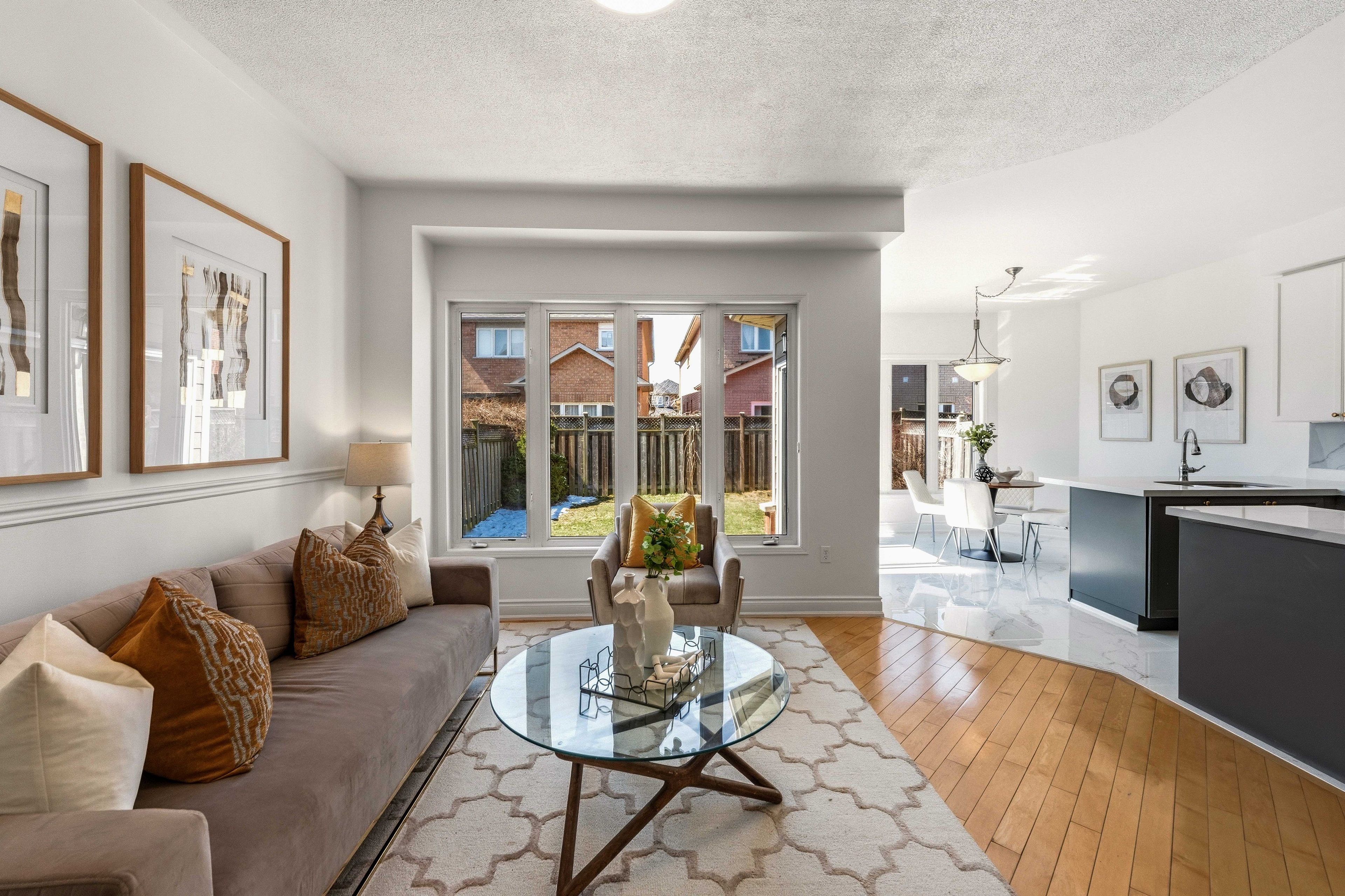 • Bright open-concept main floor with 9-ft ceilings and large windows.