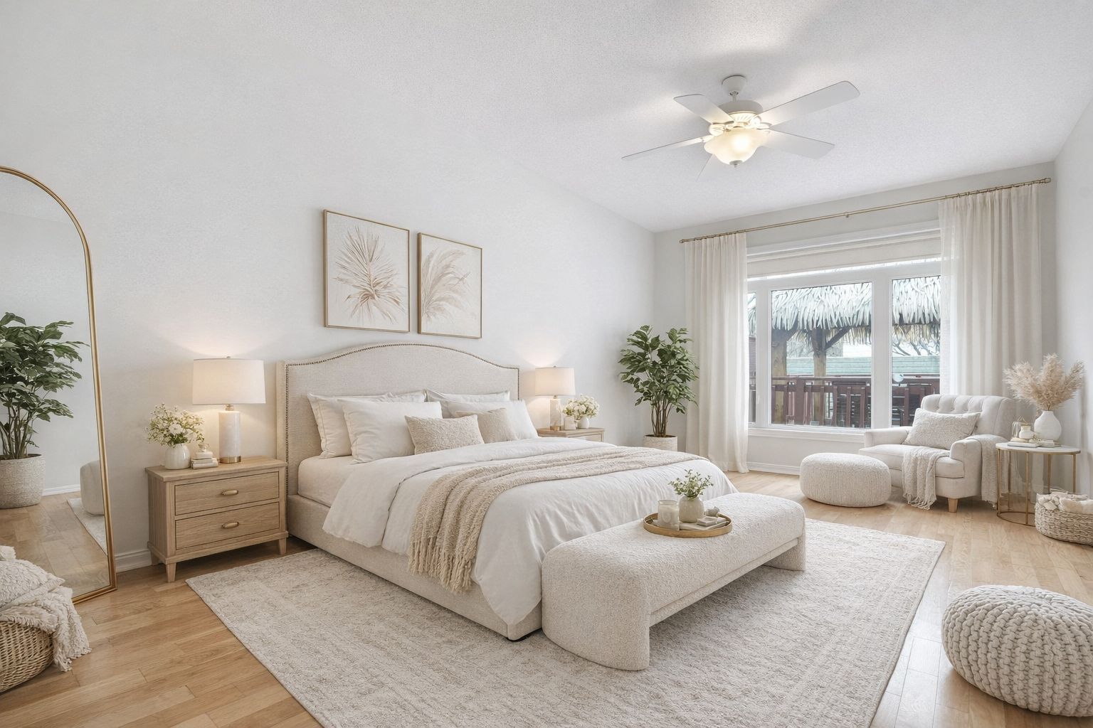 • Spacious primary retreat with renovated ensuite and walk-in closet.