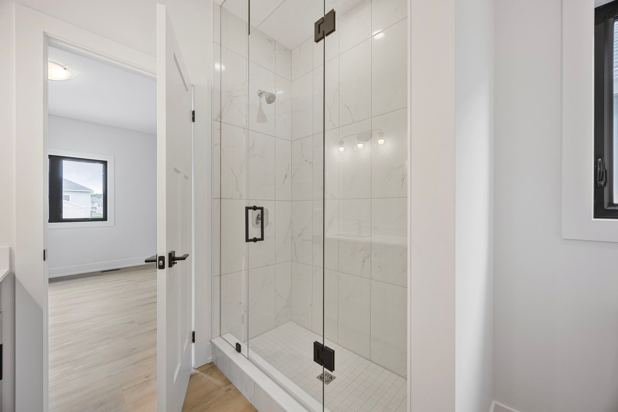 • Modern kitchen with quartz countertops and soft-close cabinetry.