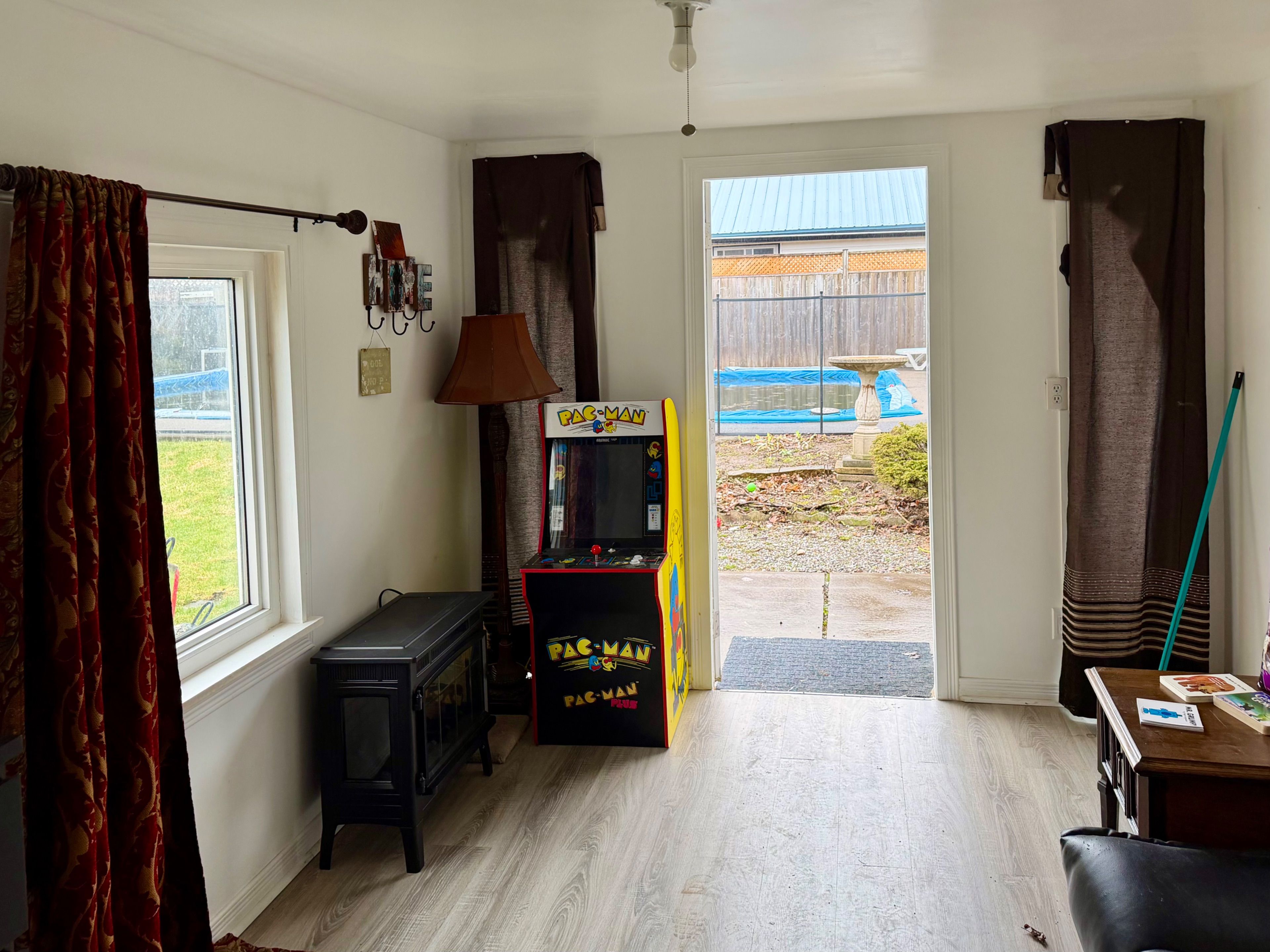Welcome to this well-maintained 2-storey home offering a blend of character, space, and modern updates in a convenient lindsay location. Featuring 3 bedrooms and 2 bathrooms, this home has seen approximately $150,000 in improvements, providing move-in-ready comfort with added peace of mind. Step inside to a spacious great room with cathedral ceilings, freshly painted using bin primer for a clean, stain and odour-free finish. This bright and inviting space serves as the heart of the home and features a walkout to the backyard, patio, and pool-ideal for both everyday living and entertaining. The main floor also includes an updated kitchen and a separate dining room with an electric fireplace. A versatile third bedroom on the main floor offers flexibility for use as a home office, studio, or guest space. Upstairs, the primary bedroom is complemented by an additional bedroom and a second bathroom, providing a practical and comfortable layout for families or guests. Step outside to a fenced backyard designed for enjoyment, featuring a 32' x 16' saltwater in-ground pool with updated pump, filter, and heater, along with patio space and an insulated bunkie with power, perfect for guests, a studio, or workspace. Additional highlights include a newer roof, furnace (2023, rental), hardwood flooring, and a professionally waterproofed basement complete with a sump pump and drainage system. Located in an established neighbourhood close to schools, parks, shopping, and all amenities, this home offers excellent value for those seeking flexible living space in the heart of lindsay.