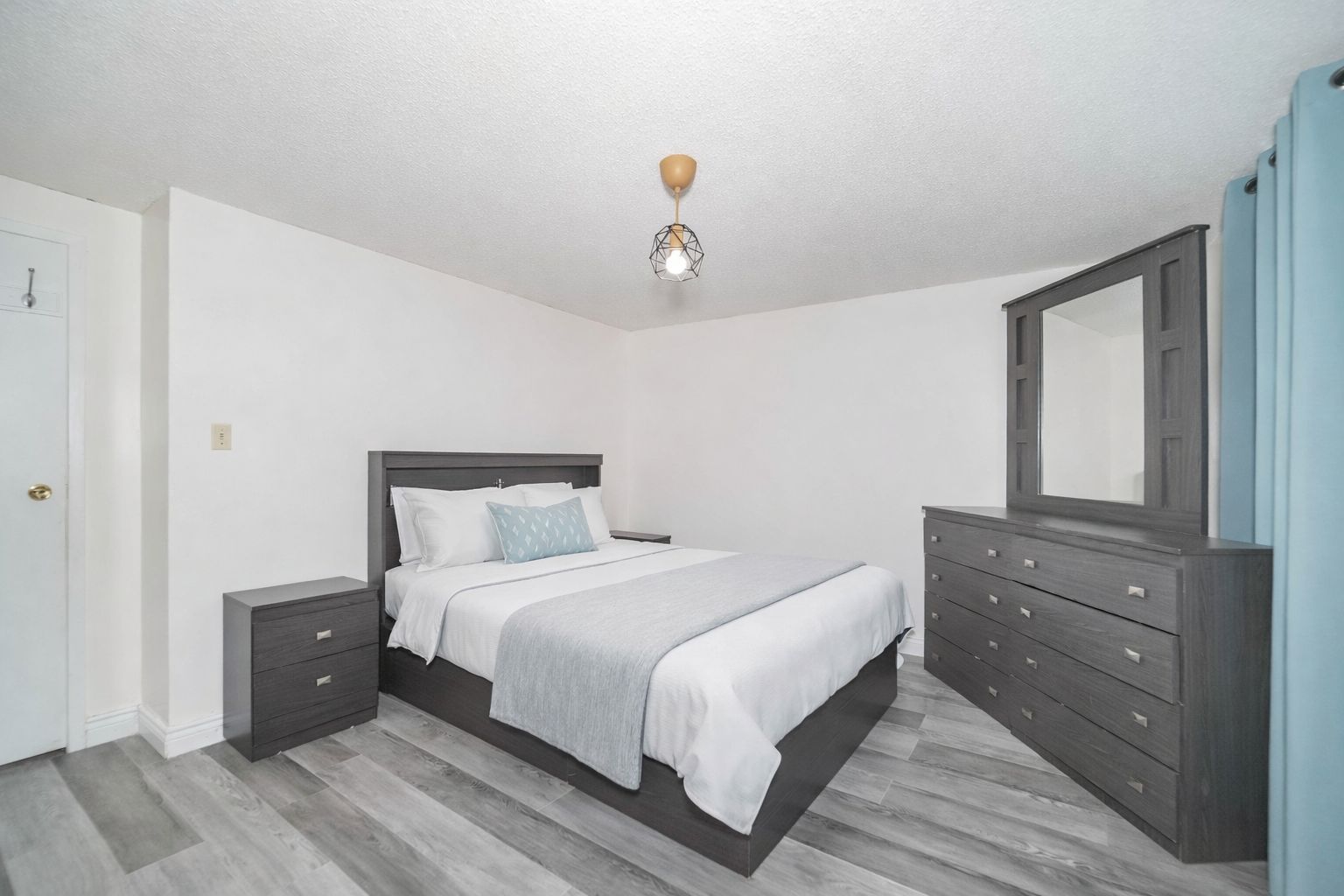 Immaculate townhouse with $$$ in upgrades. Large open concept. Bright, large main floorplan. Porcelain tile thru main area & kitchen. Renovated kitchen & baths. Recent updates: shingles, furnace, cac. Eat-int kitchen, separate dining area, spacious living room. Upper floor has large bedrooms. Primary suite has w/i closet & 2pc ensuite. Basement has kitchen, bedroom, 4pc bath & living area. Lots of parking on long private driveway.