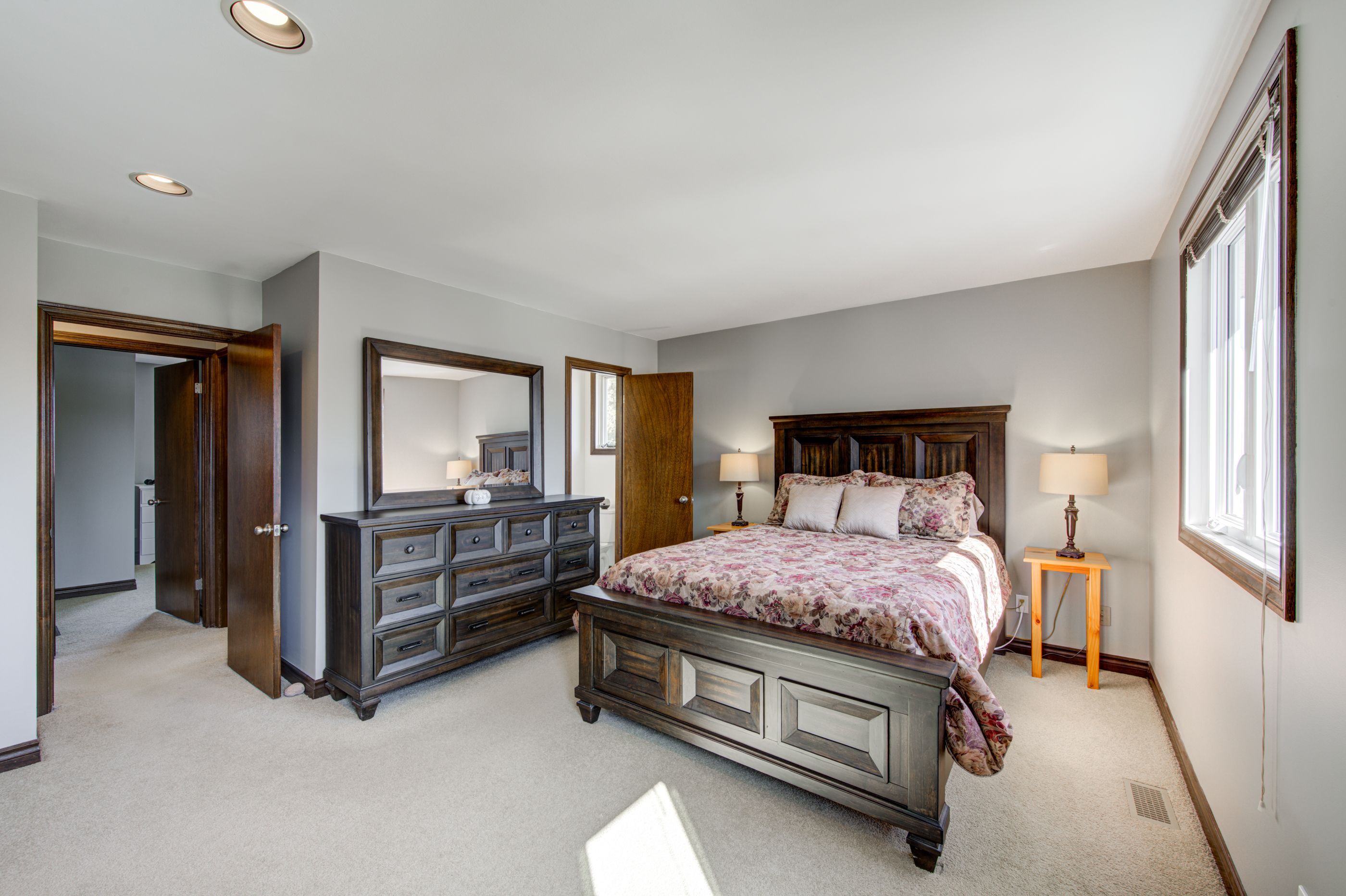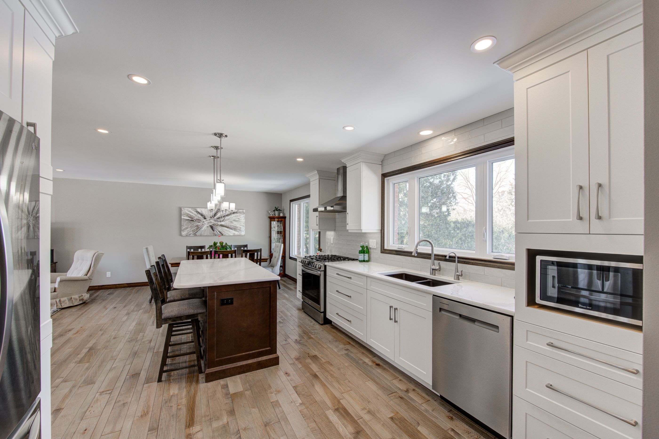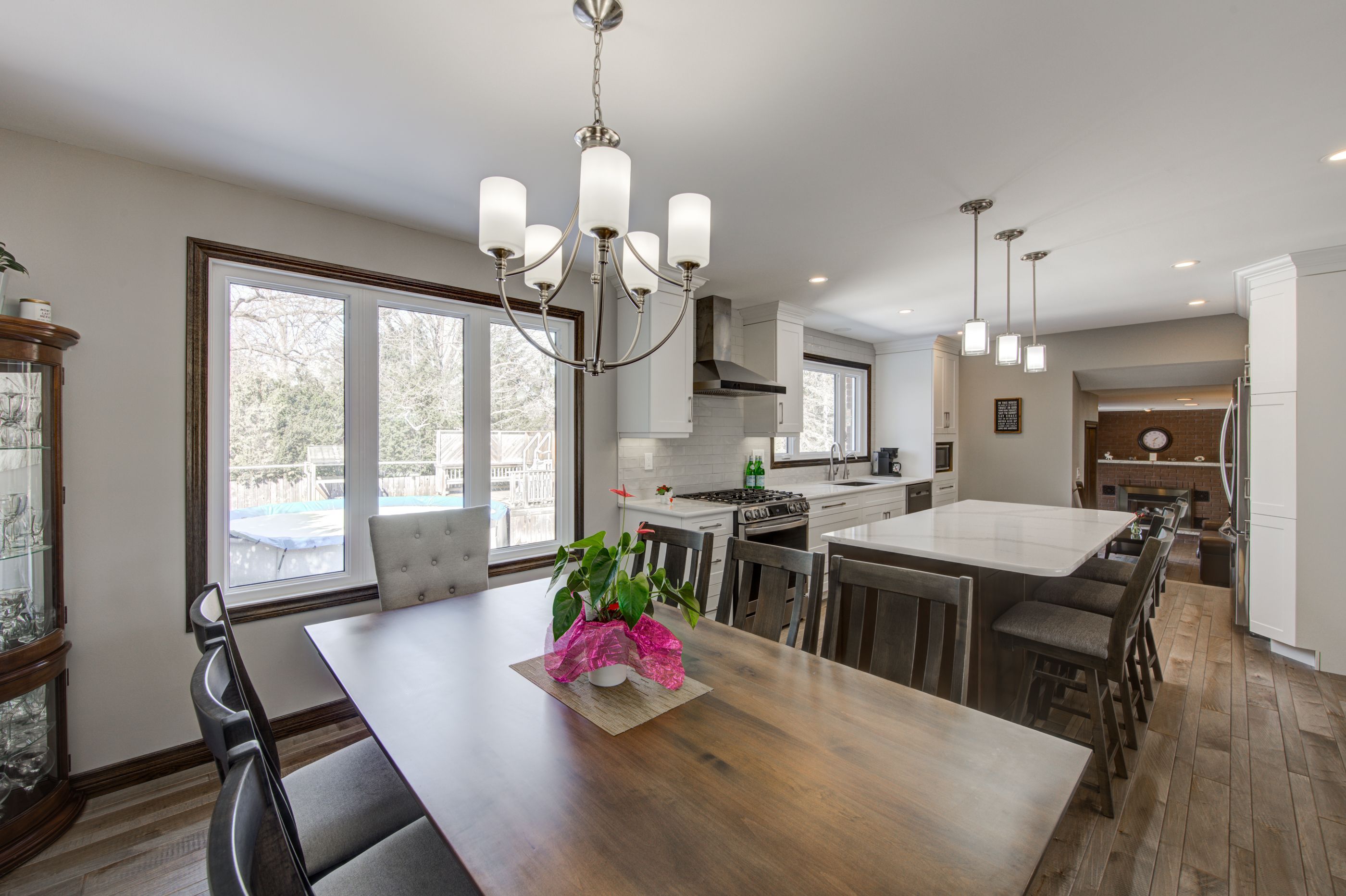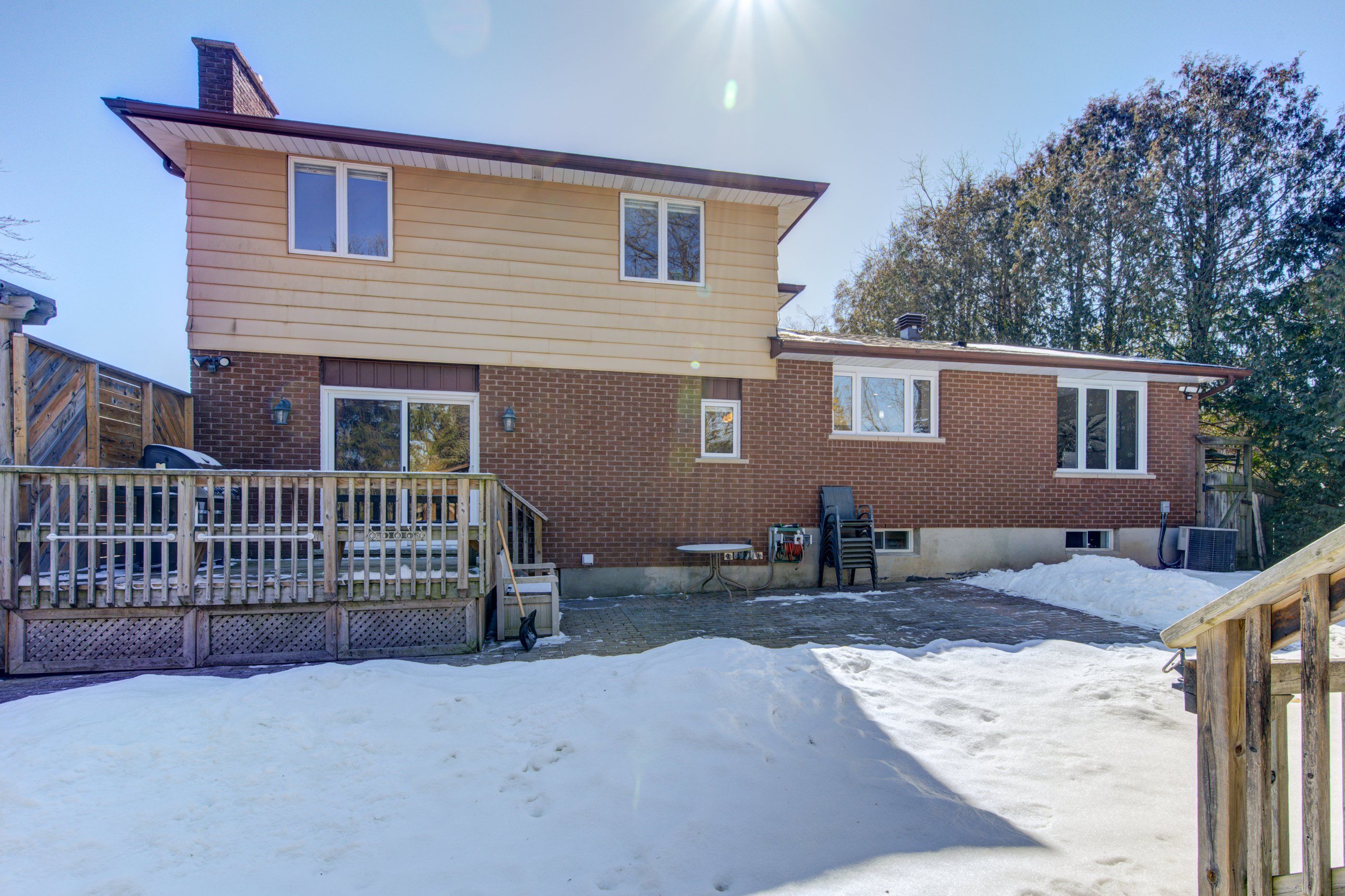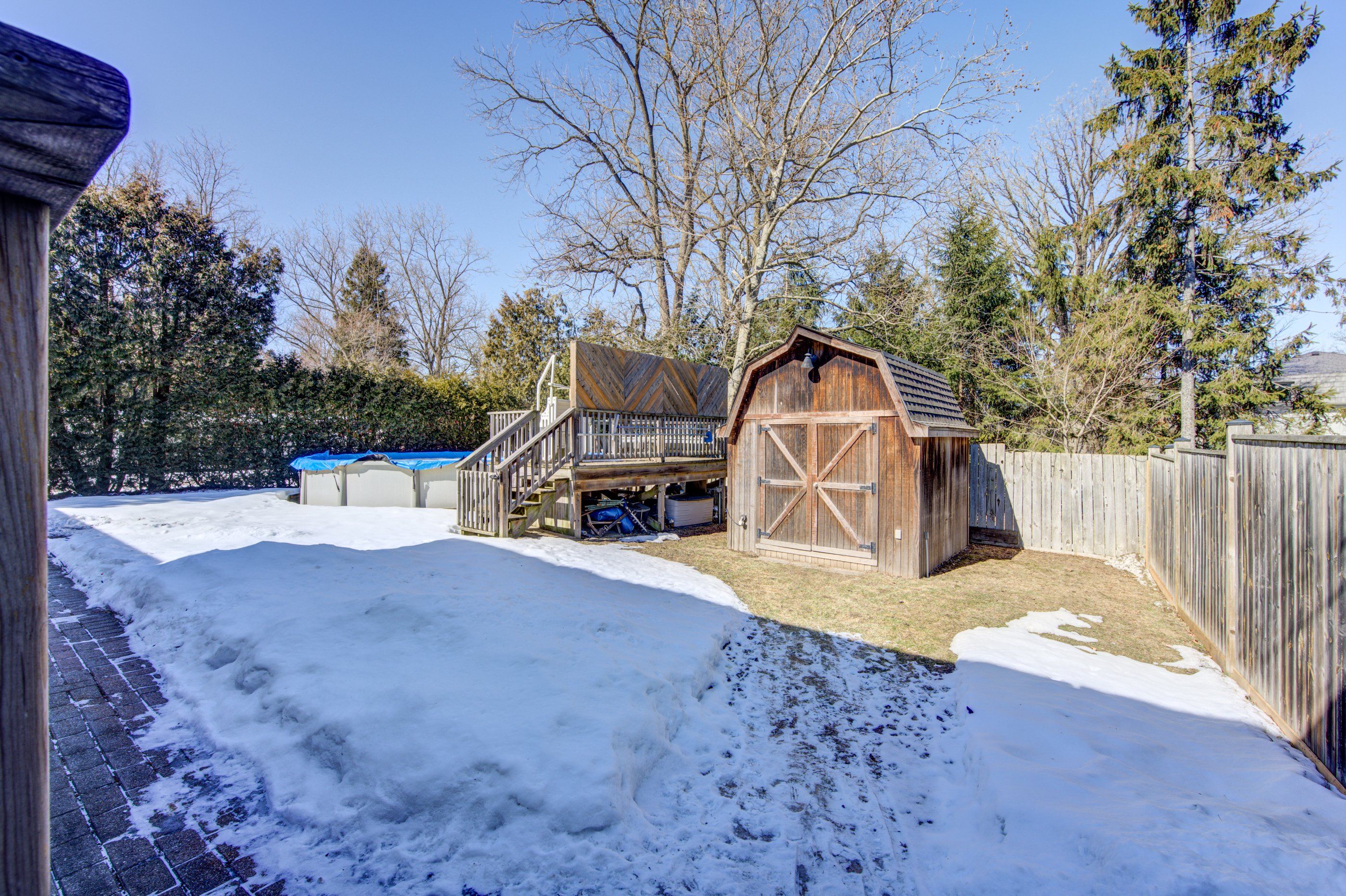 Nestled on a quiet, child-friendly cul-de-sac in the highly desirable lockwood park, this beautifully updated four-bedroom family home offers the perfect blend of comfort, style, and functionality. Set on a mature, treed lot with a concrete laneway and inviting covered front porch, the property delivers exceptional curb appeal and family-friendly living. The private backyard is an entertainer's dream, featuring an above-ground pool with solar heating, interlock patio, spacious decking with bbq gas hookup, and a shed complete with 15-amp electrical service. Inside, thoughtful updates and quality finishes impress. In 2022, the home underwent significant renovations including a stunning new kitchen with quartz countertops, high-end cabinetry with dovetailed drawers, and updated appliances. That same year, most windows, the back sliding door, and the roof were replaced (excluding the two rear bedrooms and basement windows). Both the main bathroom and ensuite have been renovated this year, offering modern finishes and stylish design. The bright, open-concept main level showcases hardwood flooring and an inviting layout ideal for entertaining and everyday living. The family room features a gas fireplace with brick surround, hardwood flooring, and a walkout to the rear deck. A two-piece powder room and interior access to the oversized double garage add functionality. The garage offers 100-amp electrical service, making future ev charger installation easy. Upstairs you will find four generously sized bedrooms, including a primary suite with a two-piece ensuite. The finished lower level provides versatility with two separate rec rooms-perfect for children, hobbies, crafts, or additional living space-along with built-in cabinetry. The basement also offers a spacious laundry area with cabinetry, abundant storage, and access to a cold cellar. This exceptional home combines location, updates, and outdoor living in one of london's most sought-after neighbourhoods.