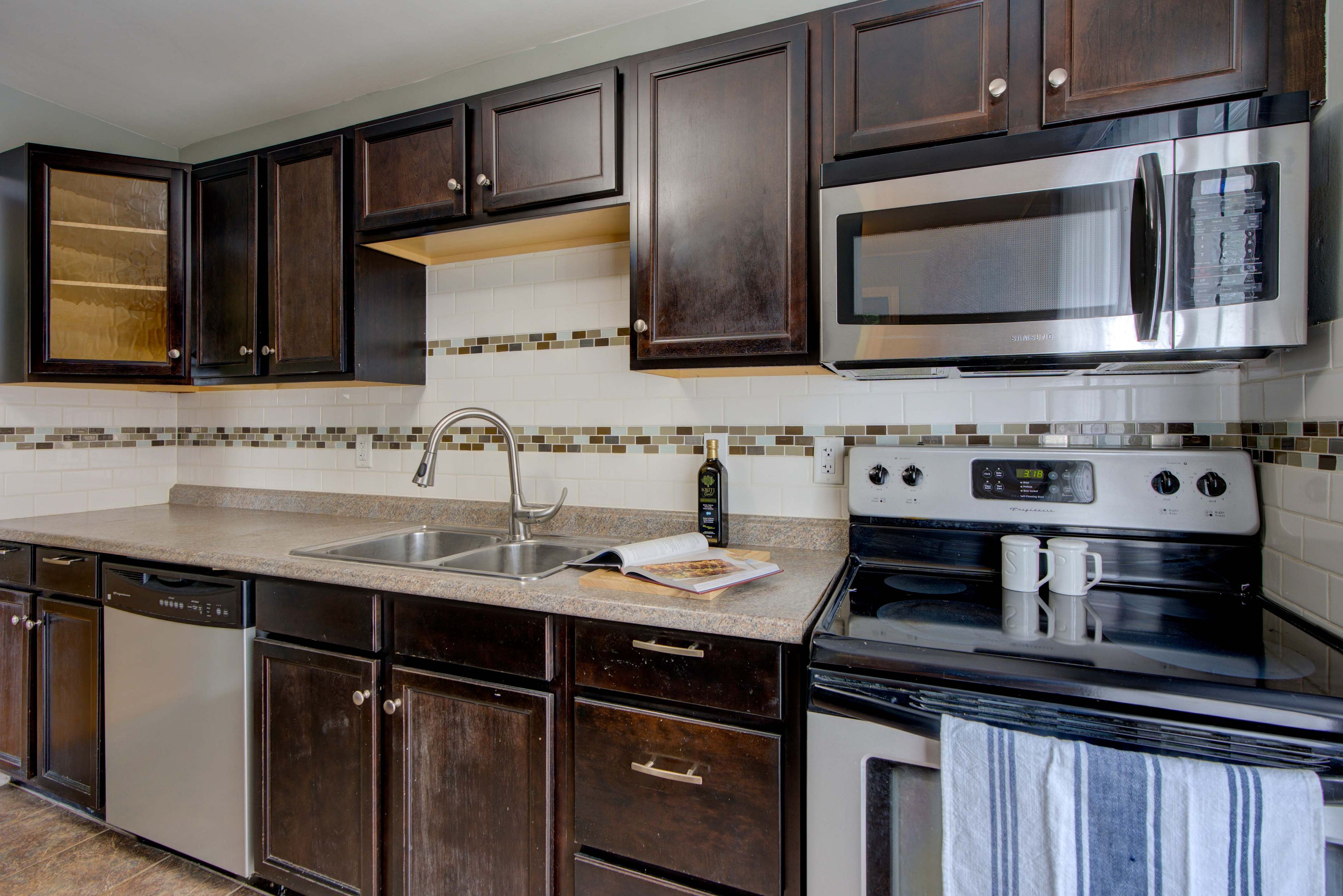 • Lower unit includes modern kitchen and open concept living, great for guests.