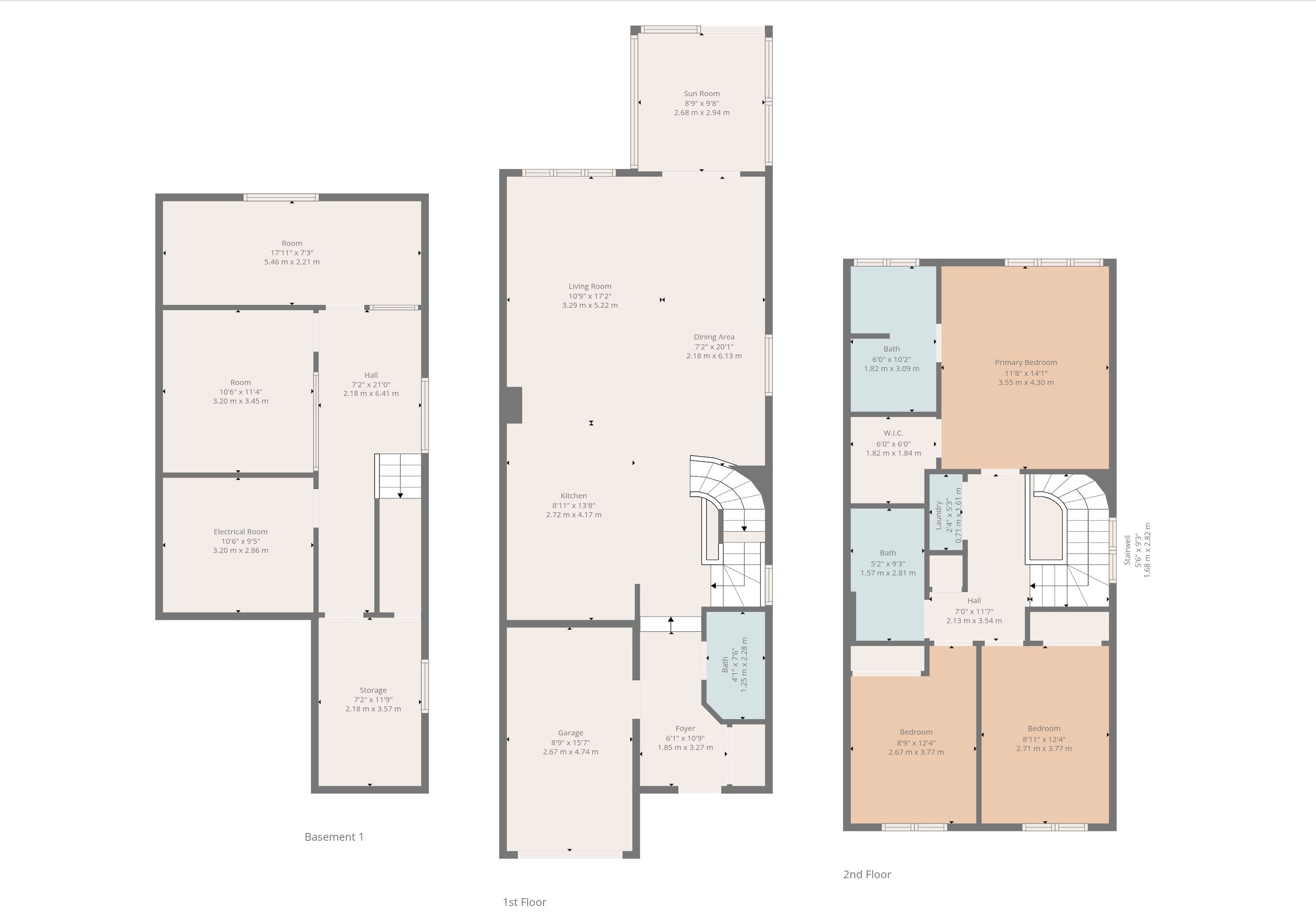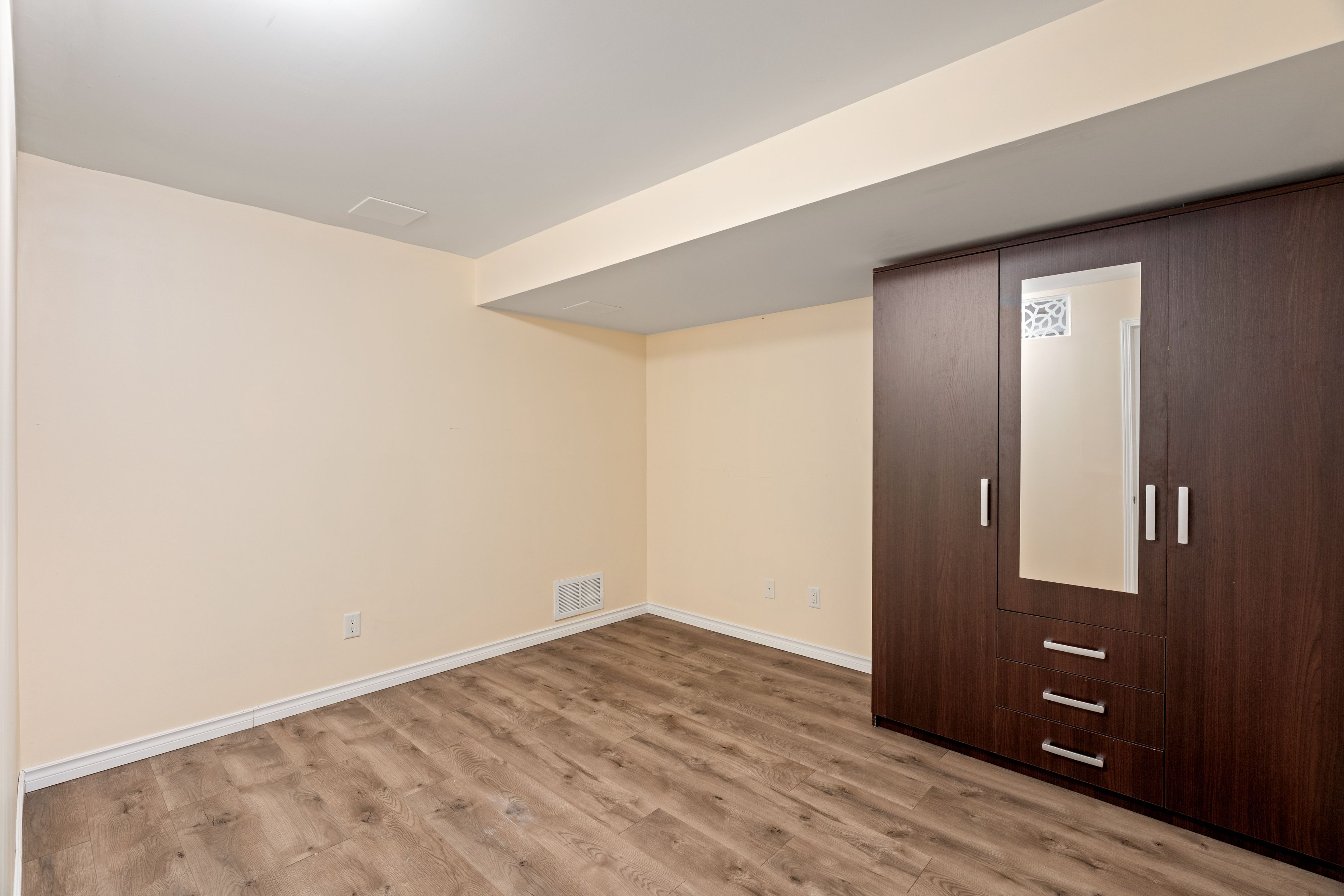 • Finished basement with flexible rooms for various uses like office or gym.