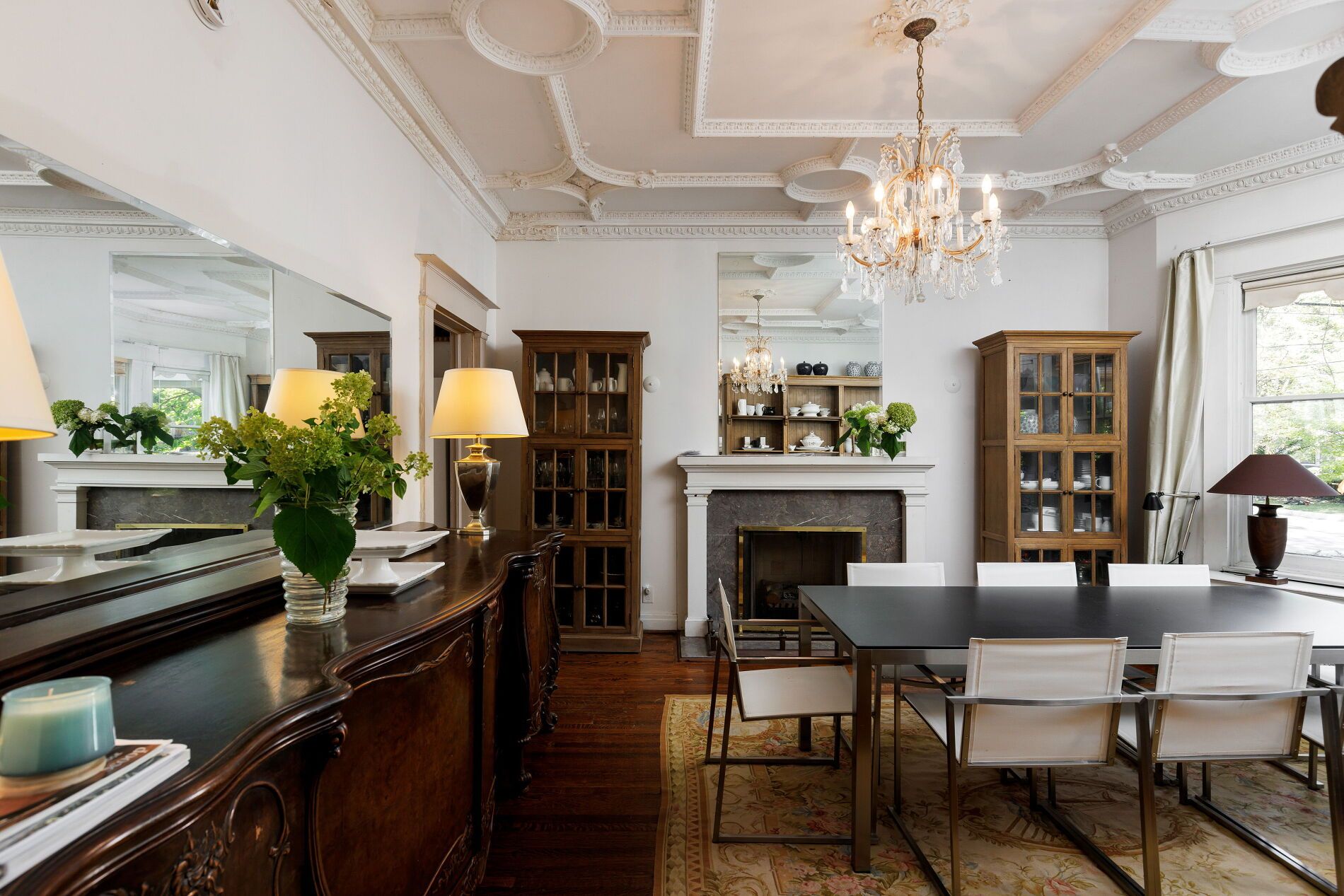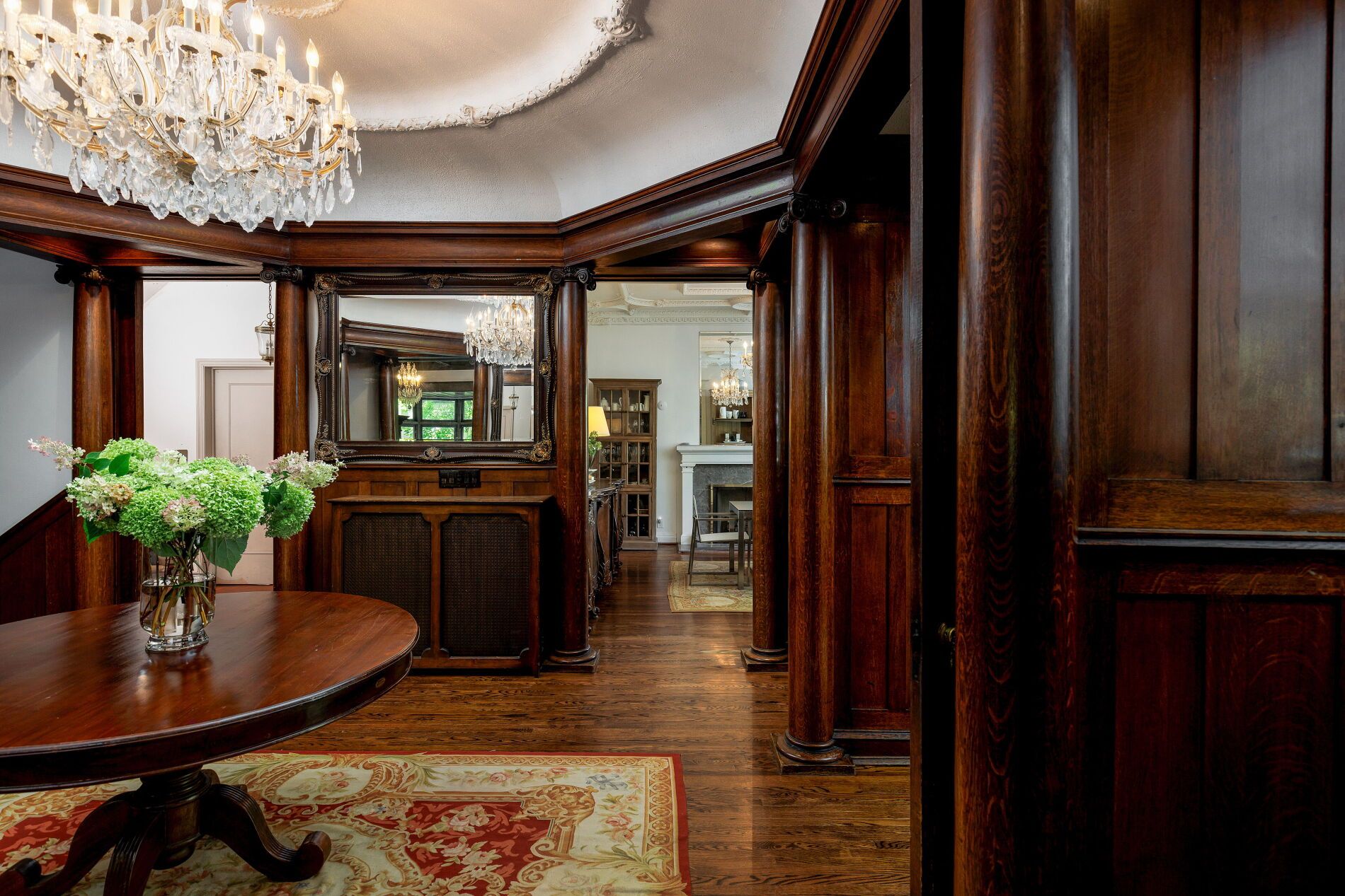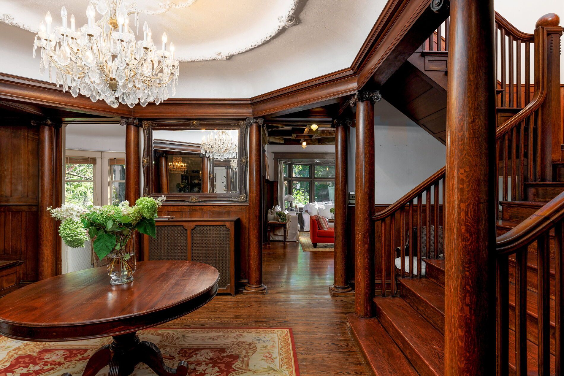 Nestled in toronto's prestigious rosedale neighbourhood, this landmark mansion occupies an expansive 100' x 122' estate-sized lot and offers over 7,500 square feet of impeccably designed living spaces. With 7 + 1 generously proportioned bedrooms, 8 bathrooms, and an exceptional third-floor loft, this grand residence seamlessly blends historic architecture with the scale, elegance, and functionality. Originally built circa 1900 for the distinguished applegate family, the home has been meticulously restored and thoughtfully maintained to preserve it's architectural heritage including a self portrait stain glass window of mrs. Applegate herself. Drawing inspiration from the classical traditions of italian renaissance architect andrea palladiio - most notably his iconic villa rotunda in vicenza, italy - the home reflects timeless design and exceptional craftmanship. A majestic octagonal central hall, framed by twelve lonic columns, creates an unforgettable first impression and sets the tone for the rest of the residence. Throughout the home, rich period details abound: original oak hardwood floors, finely hand-craved oak mouldings and wainscoting, intricate millwork, and 6 fireplaces with decorative tile and brick hearths. The soaring 10-foot ceilings are adorned with ornate plaster crown mouldings, ceiling medallions, and oak-beamed details that speak to the home's historical significance. Expansive bow windows and beautifully preserved stained glass flood the interior with natural light and highlight the warm, elegant atmosphere. Outside, the property is a private oasis, surrounded by mature trees, lush landscaping, and tranquil gardens that offer rare serenity in the heart of the city. A detached two-car garage and additional parking for three vehicles provide added convenience. This is a once-in-a-generation opportunity to own a truly iconic rosedale residence - an architectural treasure steeped in history and timeless charm.