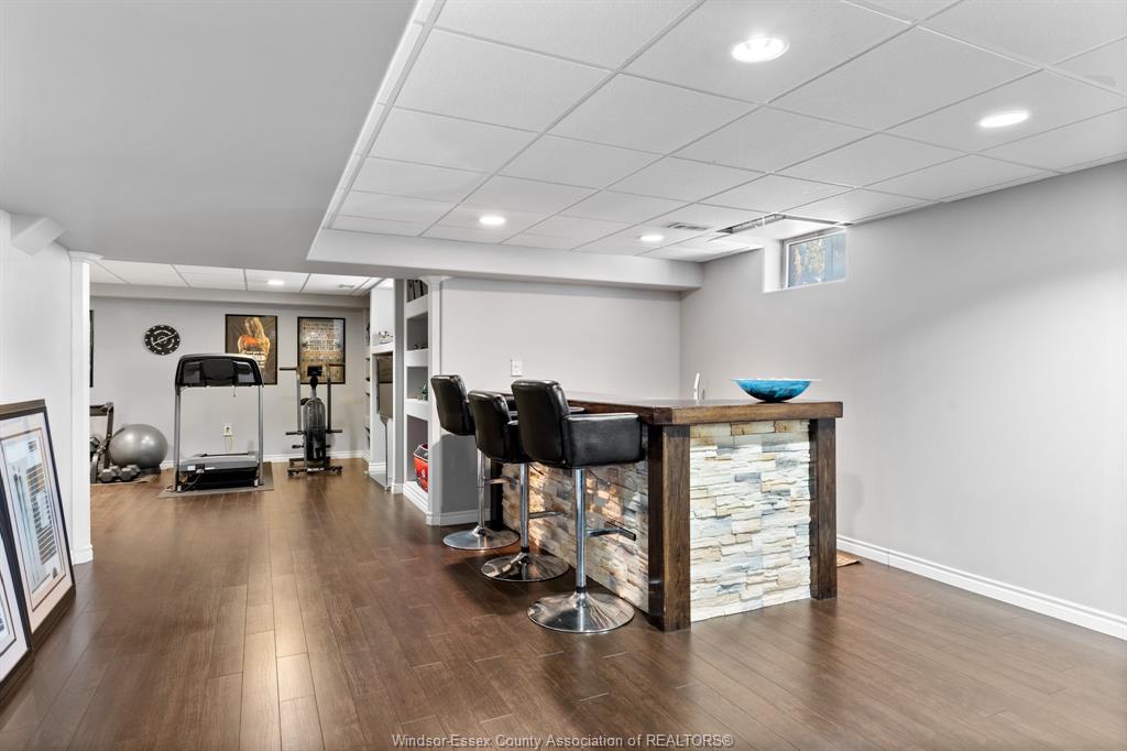 • Finished basement perfect for entertaining with bar and recreational space.