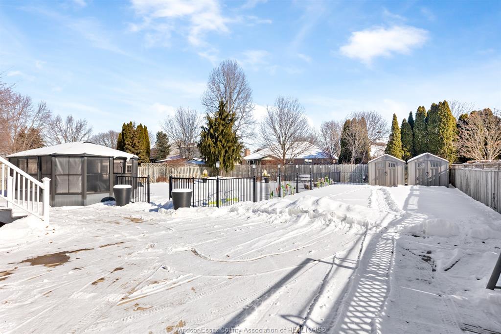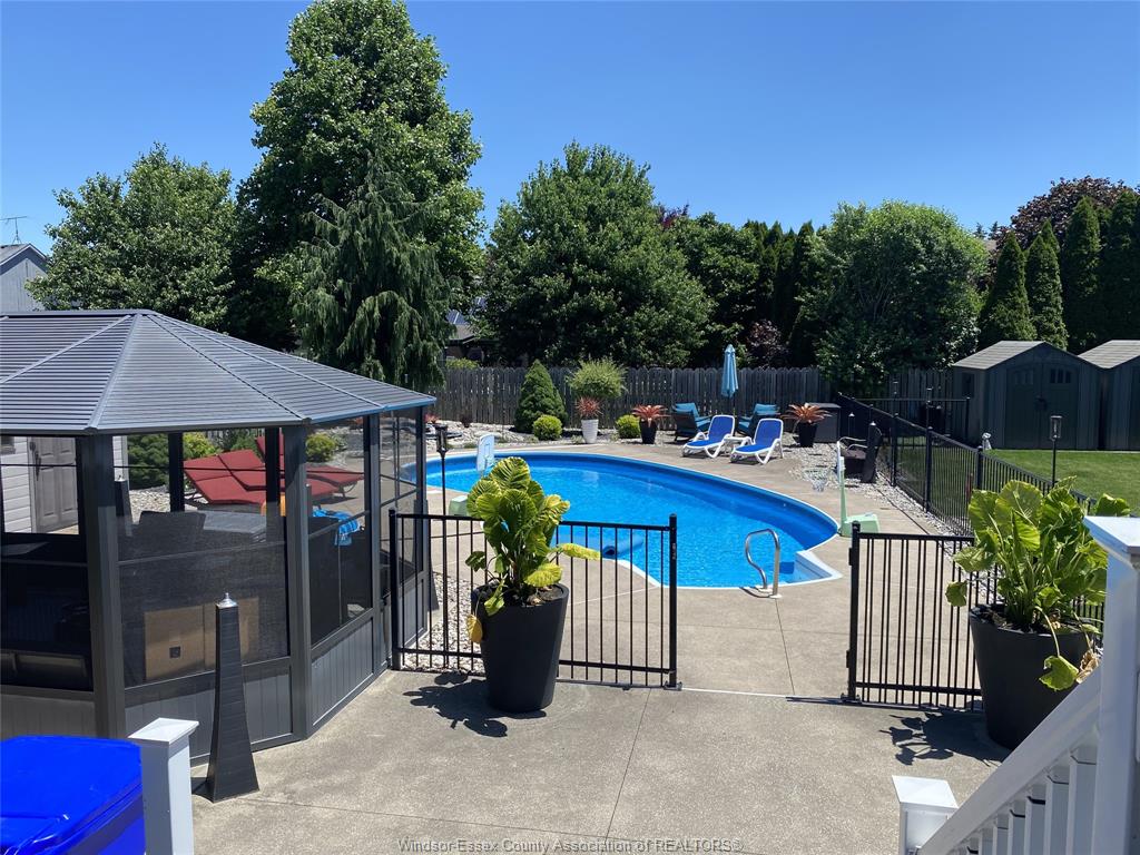 • Backyard features an inground pool and large sunroom for relaxation.