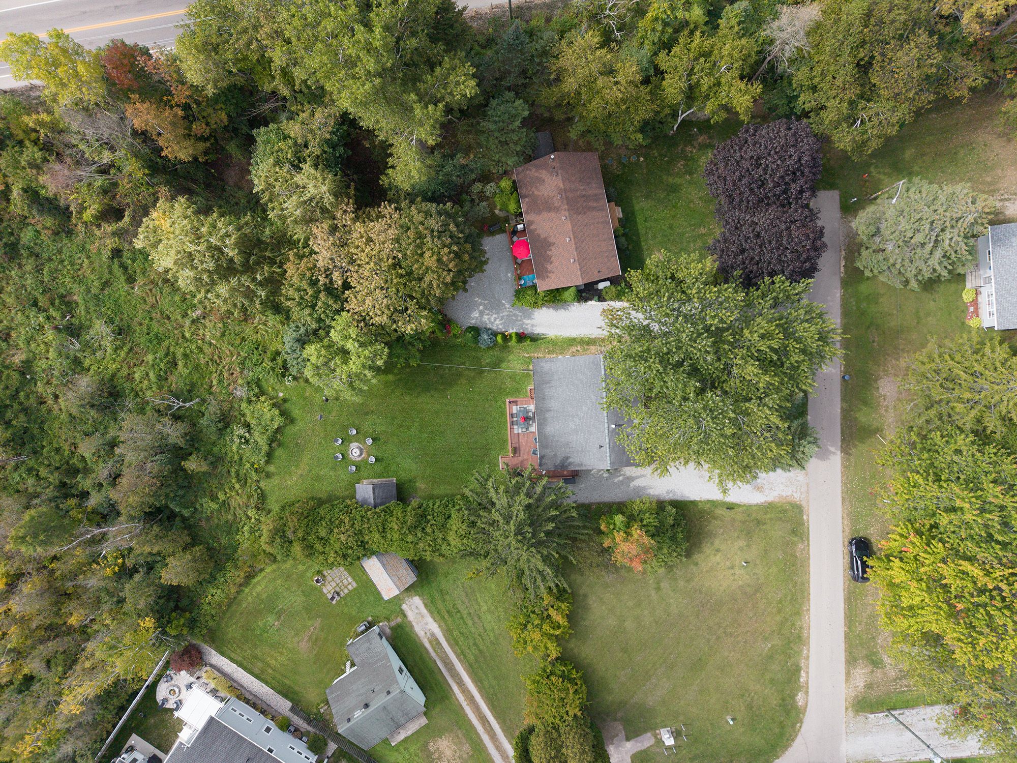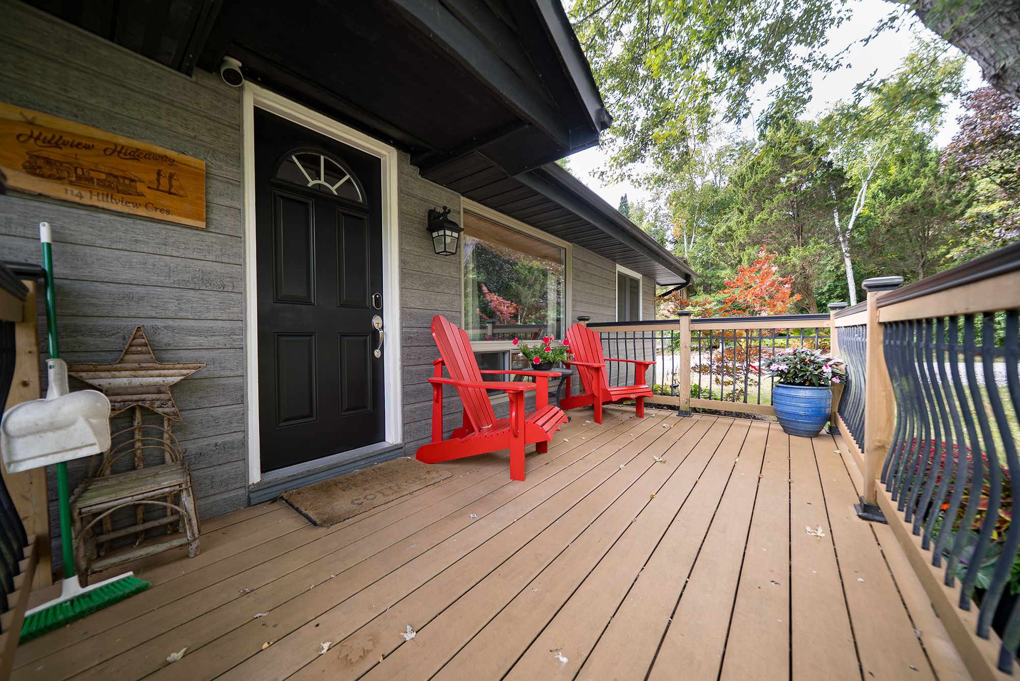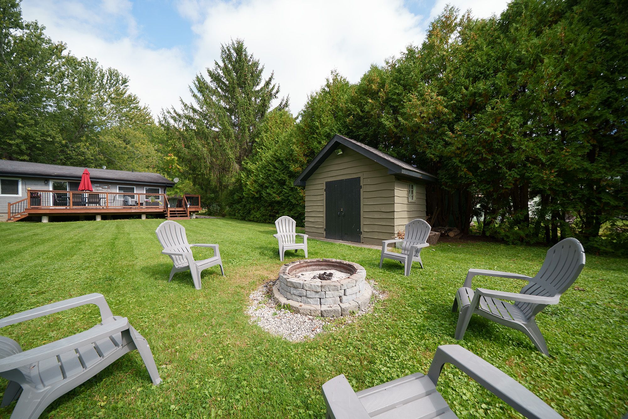 • Private outdoor space with a deck and firepit for gatherings.