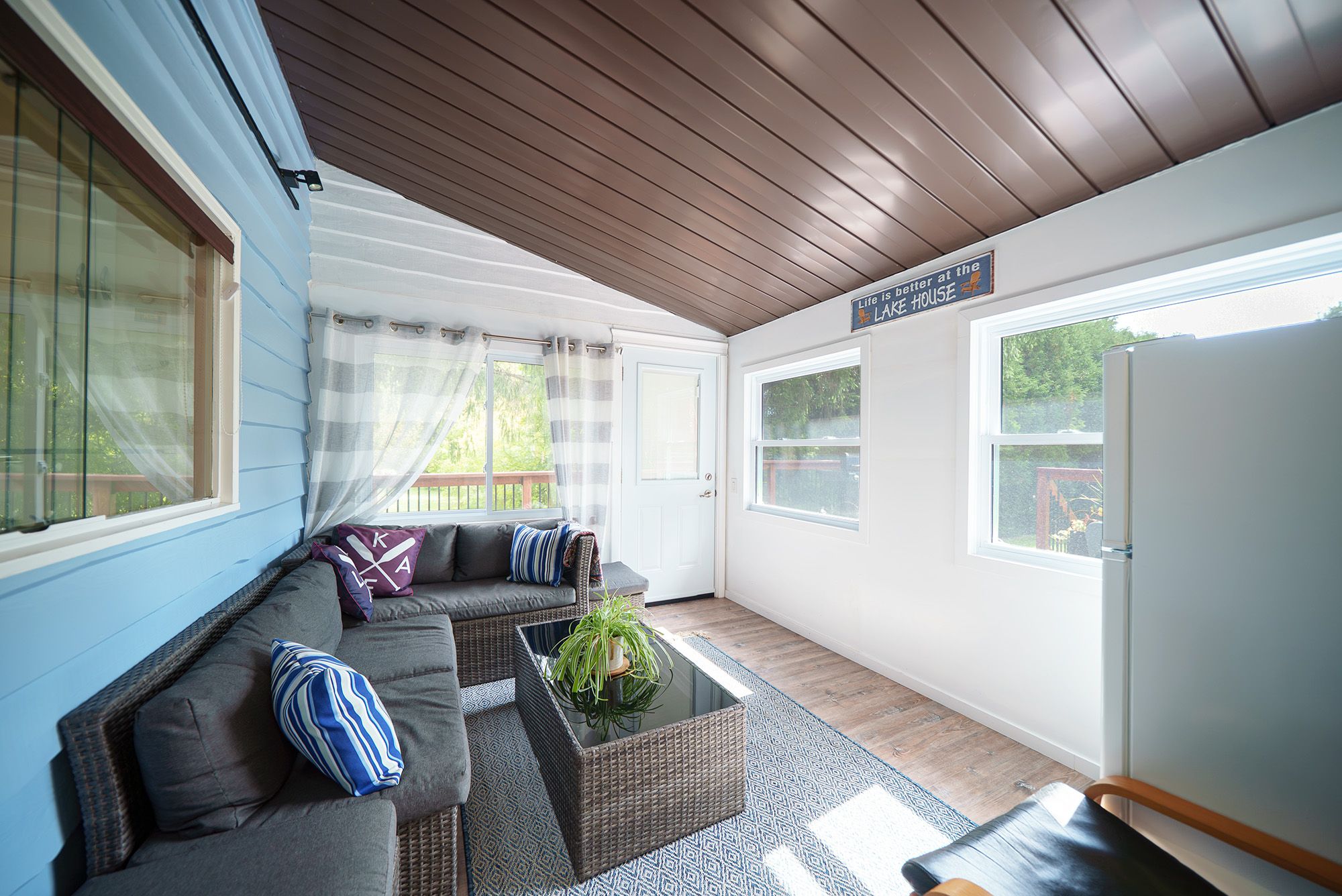 • Cozy propane fireplace and sunroom enhance year-round comfort.