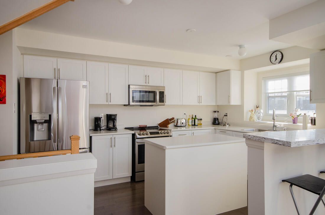 Beautiful 3-bedroom townhouse with balcony, offering modern living at it's finest. Located in a desirable neighbourhood, this spacious property is perfect for those seeking a convenient lifestyle. Spread out and enjoy the generous layout across three levels. The contemporary kitchen comes equipped with high-quality stainless steel appliances, plenty of cabinet space and a seperate island. The open-plan living and dining area is flooded with natural light. Step out on to a private balcony overlooking a playground parkette. Watch your children play in privacy and safety. Two full bathrooms and an additional half bath. Main floor laundry, plenty of storage. Single attached garage with access door into house. Close to schools, parks, shopping and public transportation. Make this stunning townhouse your new home!