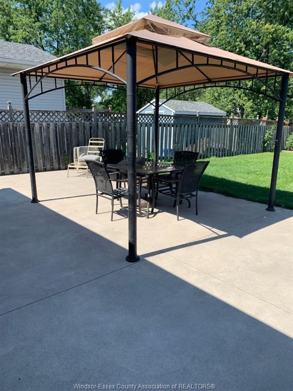 • Backyard features a patio, gazebo, shed, and above-ground pool.
